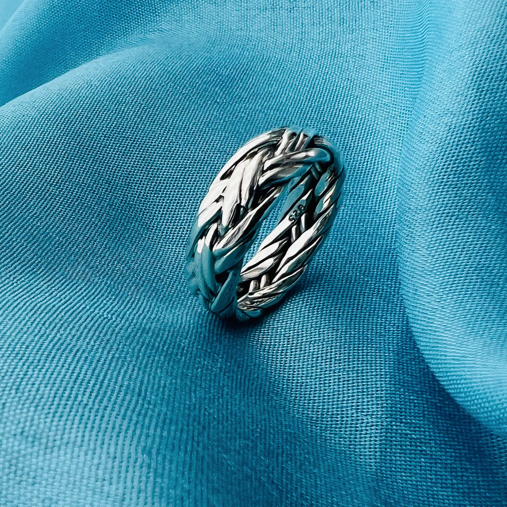 This ring is handmade with 925 sterling silver. The simple braid design gives it a stylish and classic look. The ring is polished to a high shine, making it perfect for everyday wear. Its timeless design and luxurious feel ensure that you'll never go out of style, making it the perfect accessory for any occasion.