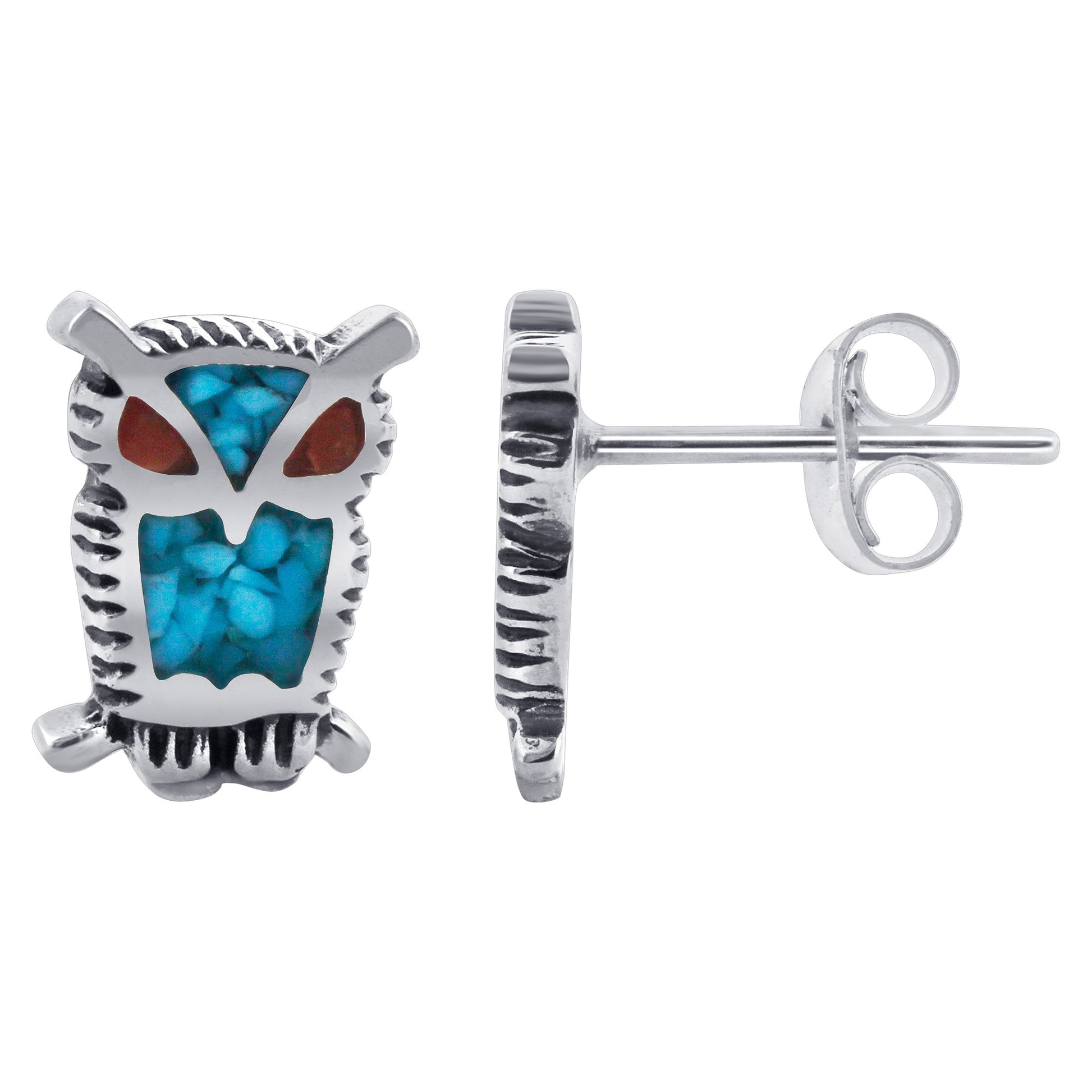 These Southwestern-style stud earrings are expertly crafted from 925 sterling silver and adorned with beautiful gemstones. The added benefit of a secure post finder ensures that your earrings will stay in place all day long.