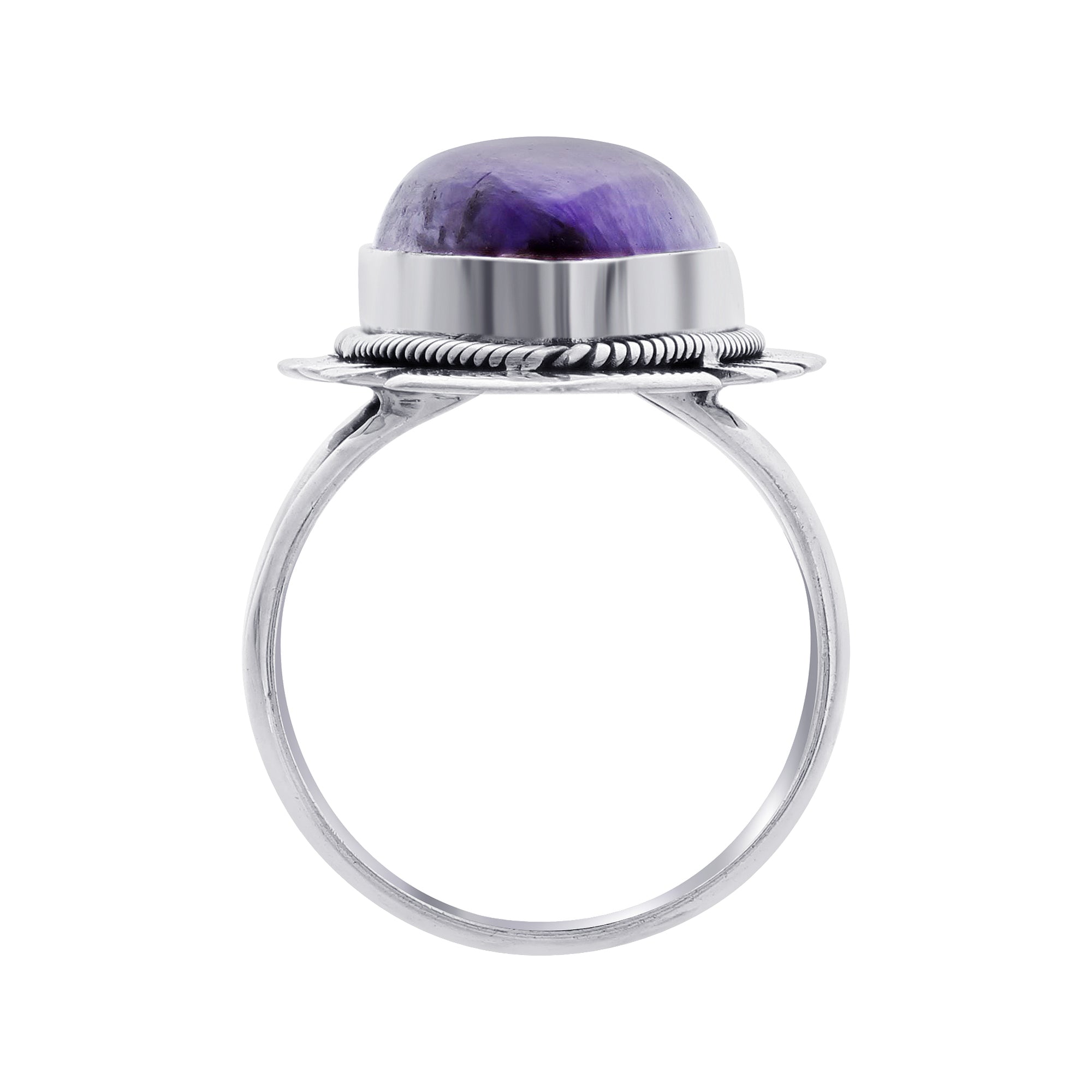 This handmade boho vintage ring is designed to make a statement. The unique teardrop charoite gemstone adds a pop of color and mystique, while the sterling silver setting provides a timeless, elegant finish. It's perfect for those who appreciate unique, eye-catching jewelry that reflects their personal style.