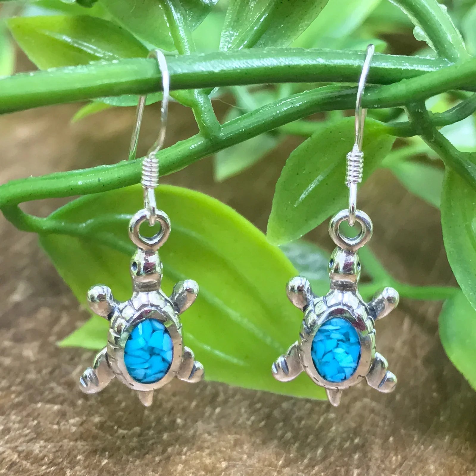 • title_tag : .925 Silver Turquoise Inlay Southwestern Style Turtle Earrings TBES067