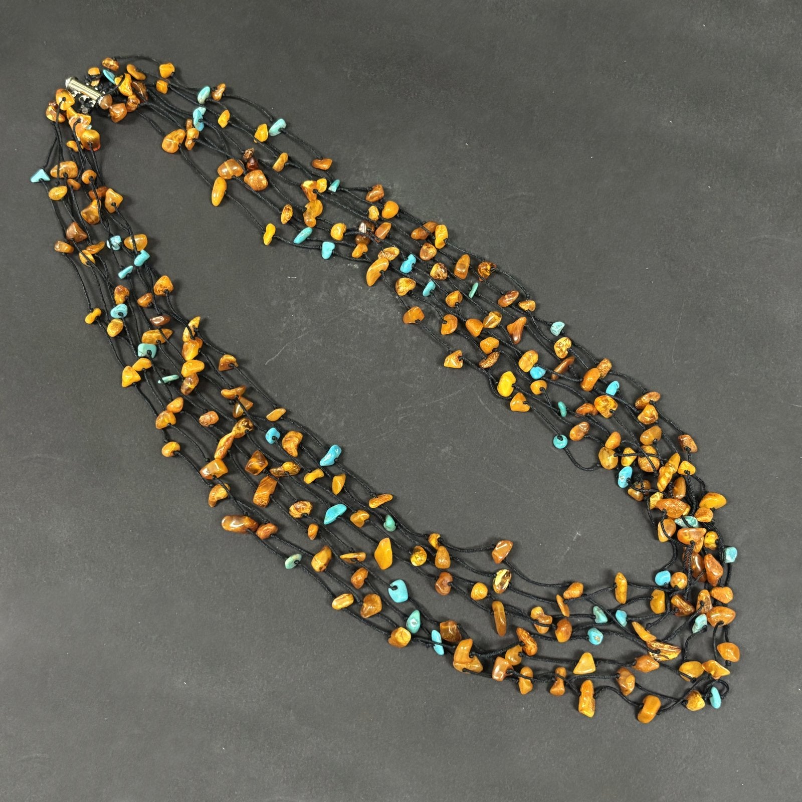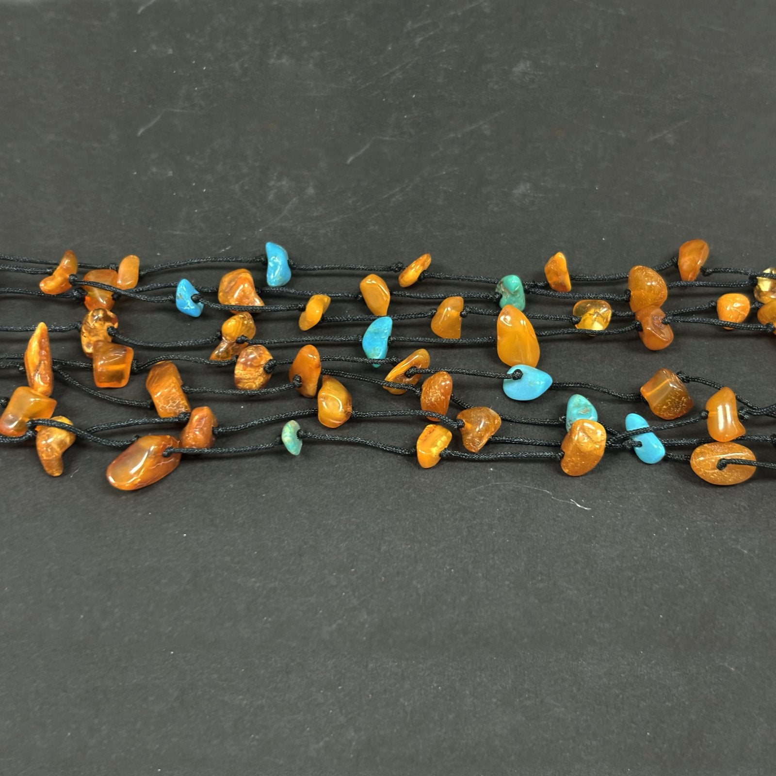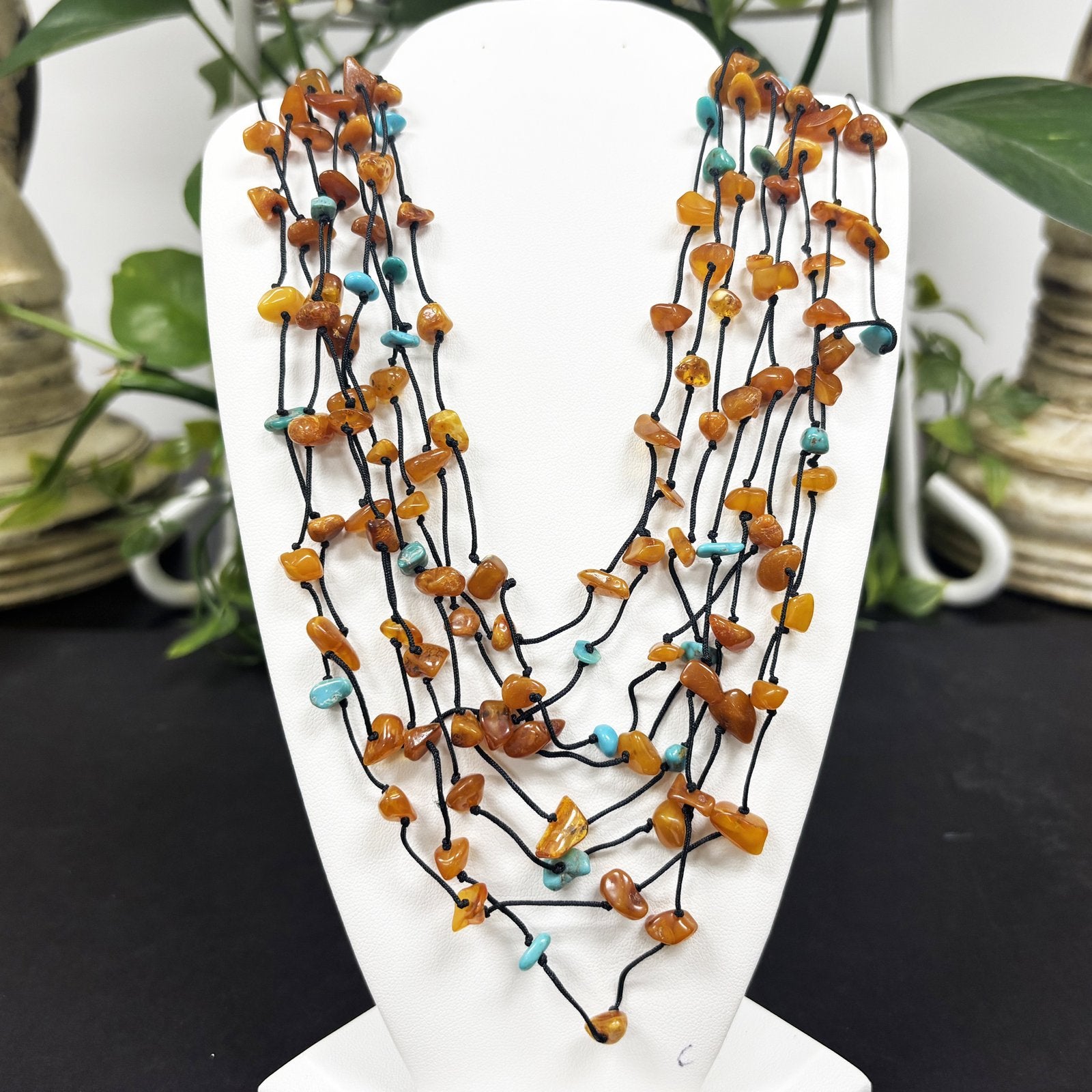 Drape your neck in beauty with this gorgeous Amber necklace! Composed of Amber chips this necklace contains a variety of necklace strings which together create a beautiful quick and simple layered look!