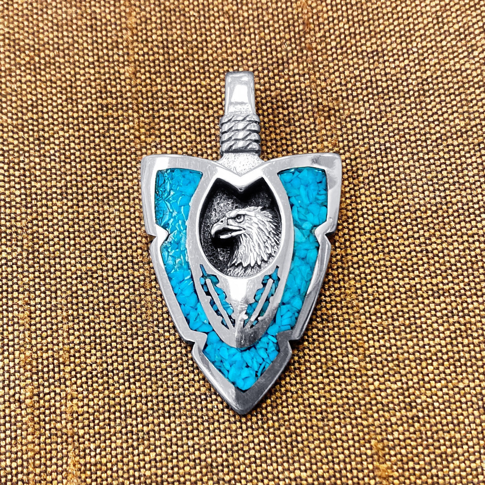 - title_tag : Arrowhead Turquoise Eagle Pendant in Sterling Silver - TBPS004