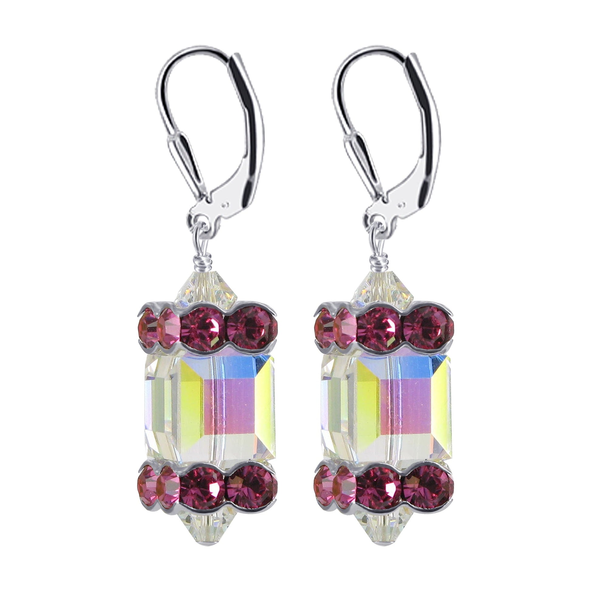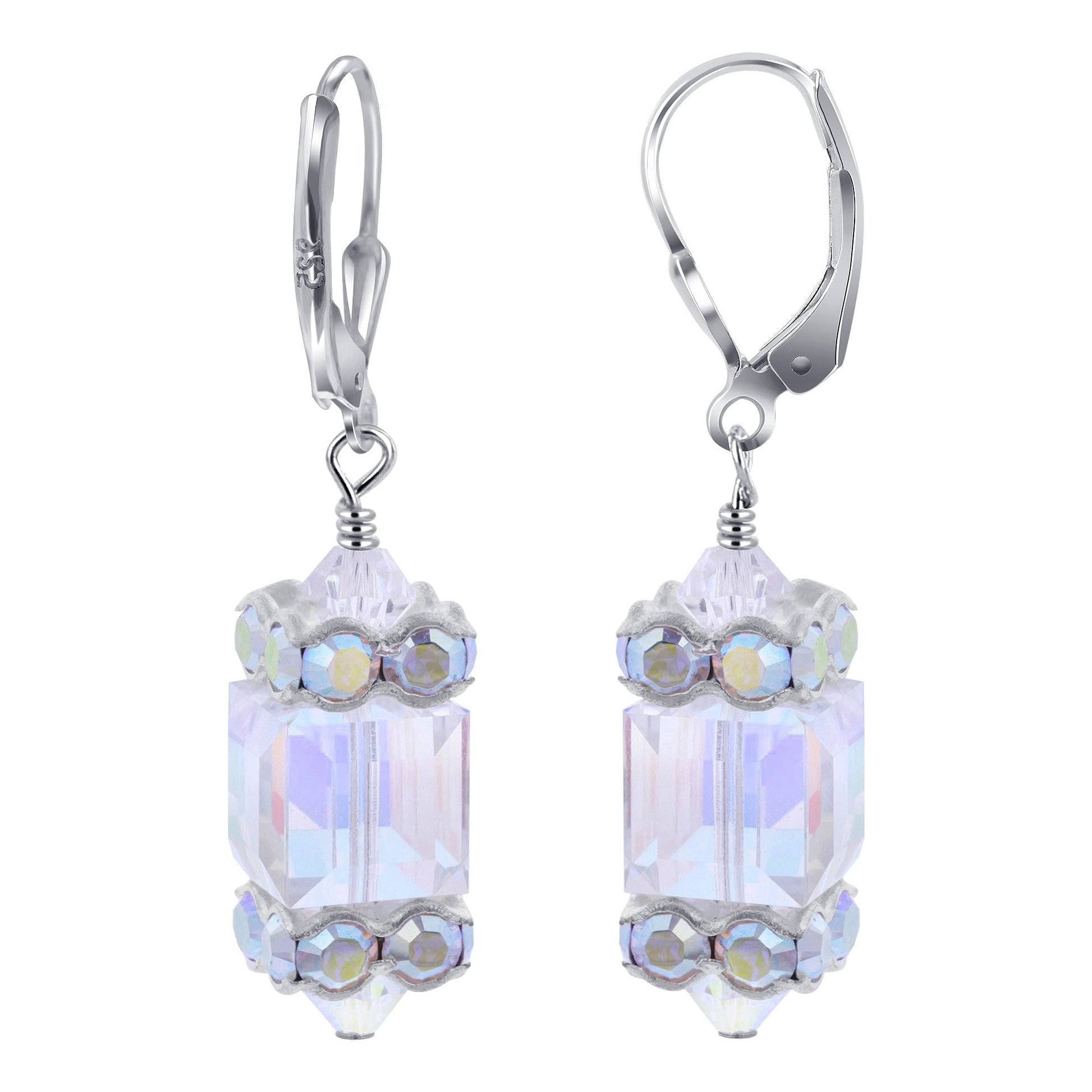 - description_tag : Discover this lovely pair of Sterling Silver dangle earrings featuring cube-shaped Austrian Crystals accented with rondelle details. These elegant earrings come with secure .925 Sterling Silver leverback findings and measure 1.5 inches in length. Perfect for adding a touch of sophistication to any look.