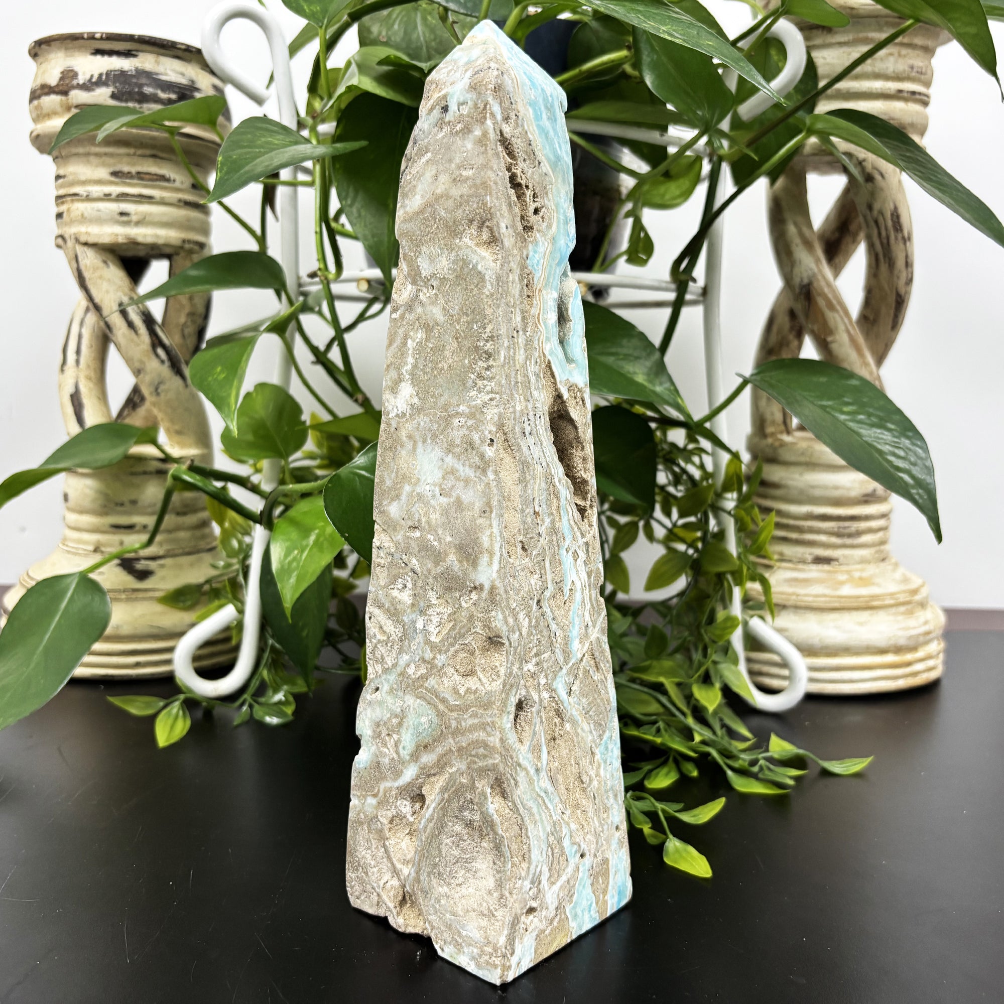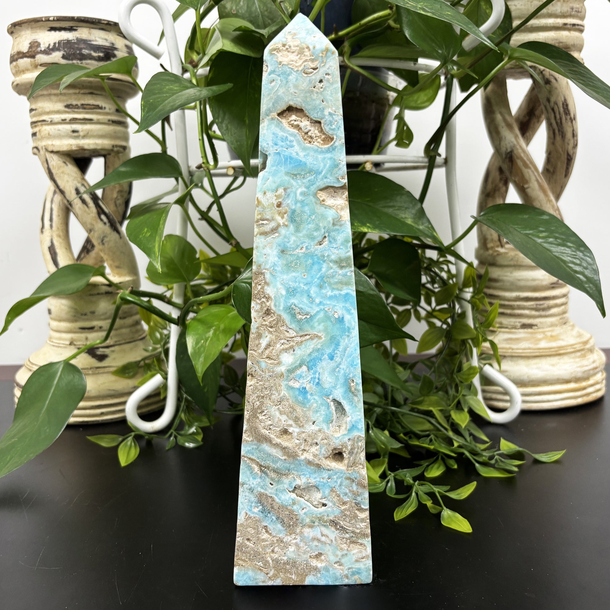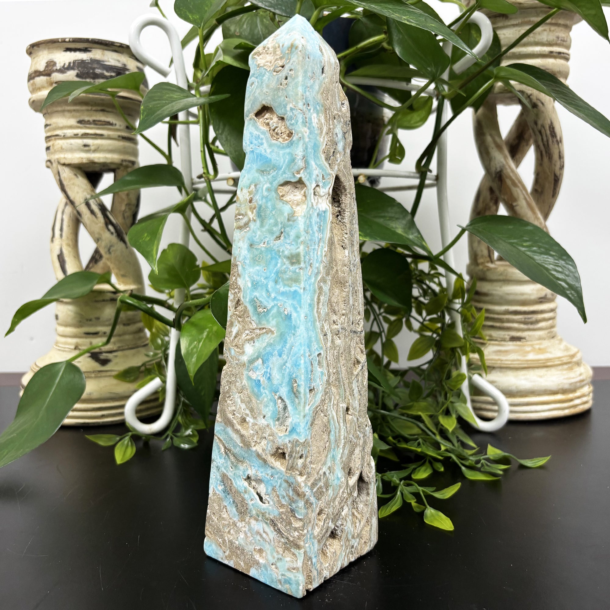 Experience the soothing benefits of our Natural Blue Aragonite Crystal Obelisk Tower. This polished healing stone promotes a sense of calm and balance, while also increasing energy levels. Made from 100% natural blue aragonite, each obelisk tower is unique and contains healing properties to benefit your mind, body, and spirit.