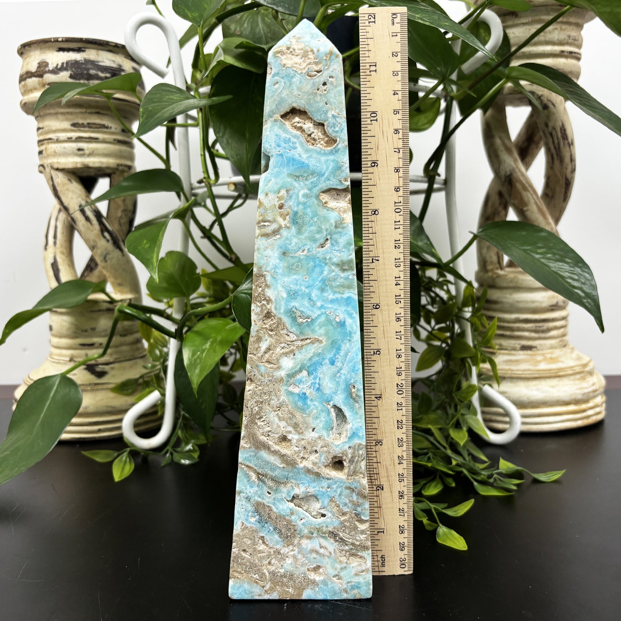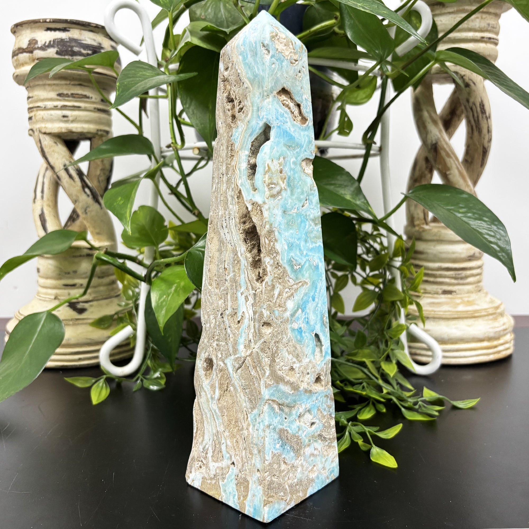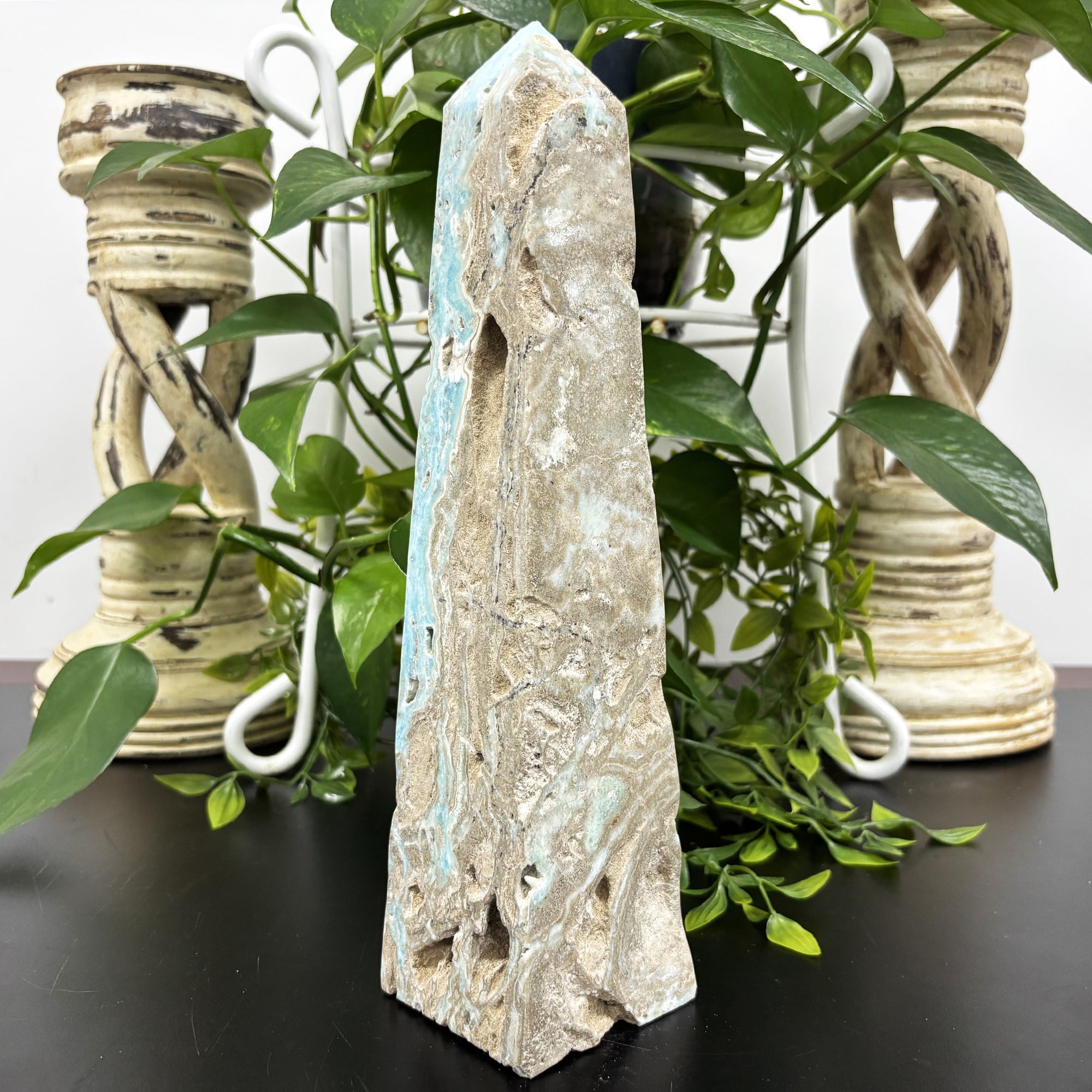 Experience the soothing benefits of our Natural Blue Aragonite Crystal Obelisk Tower. This polished healing stone promotes a sense of calm and balance, while also increasing energy levels. Made from 100% natural blue aragonite, each obelisk tower is unique and contains healing properties to benefit your mind, body, and spirit.