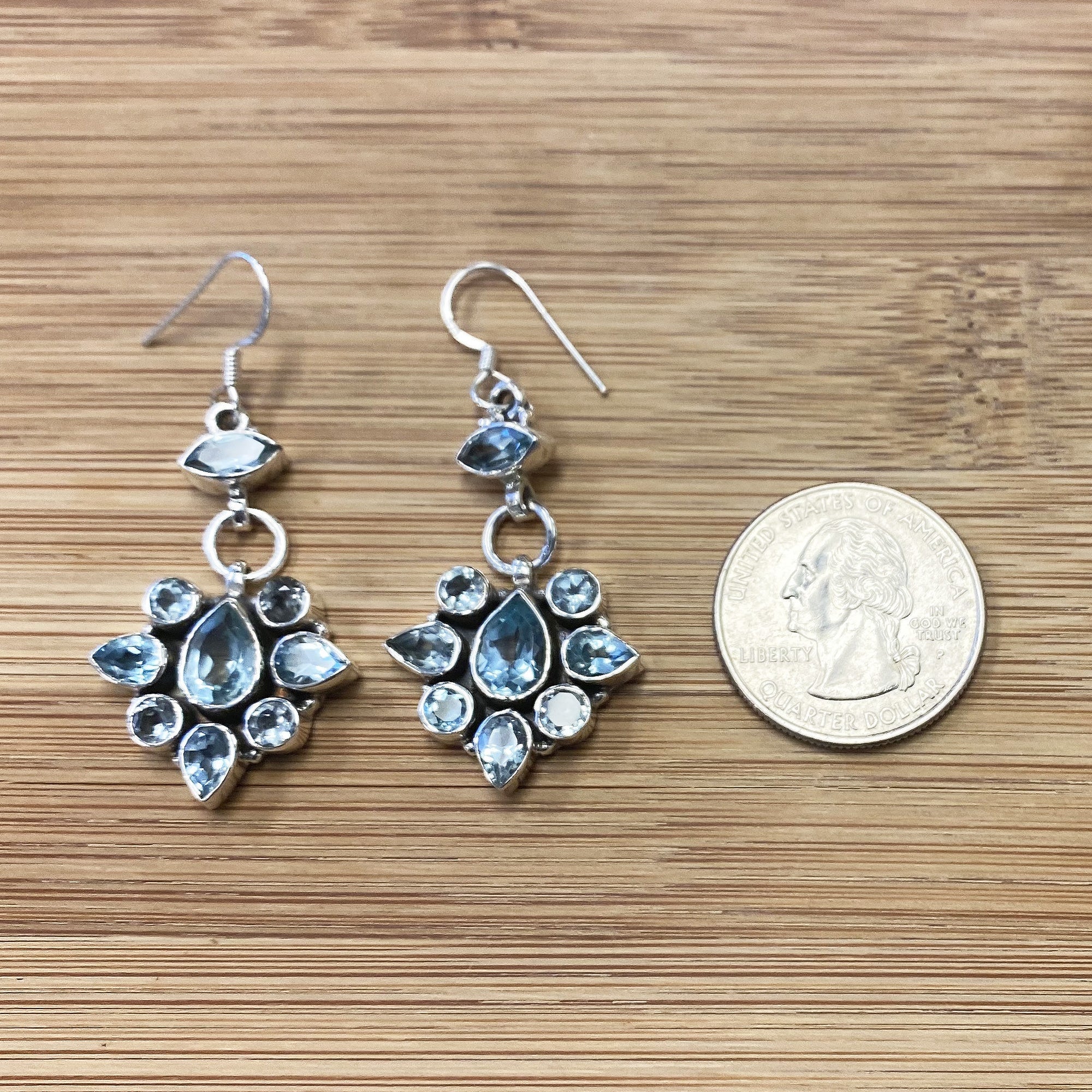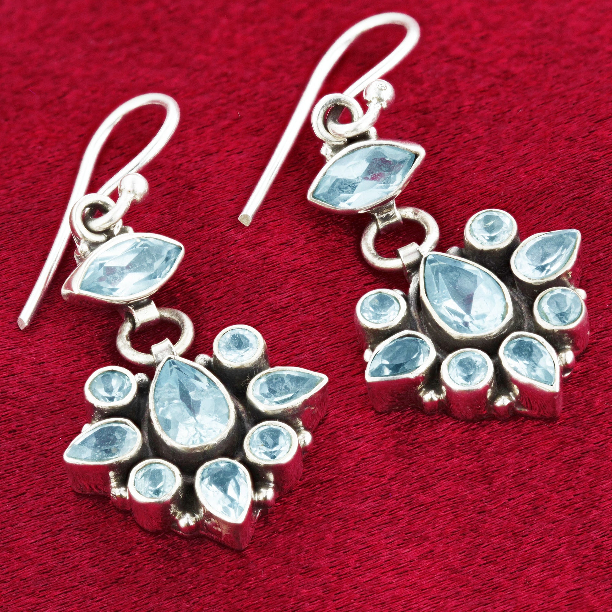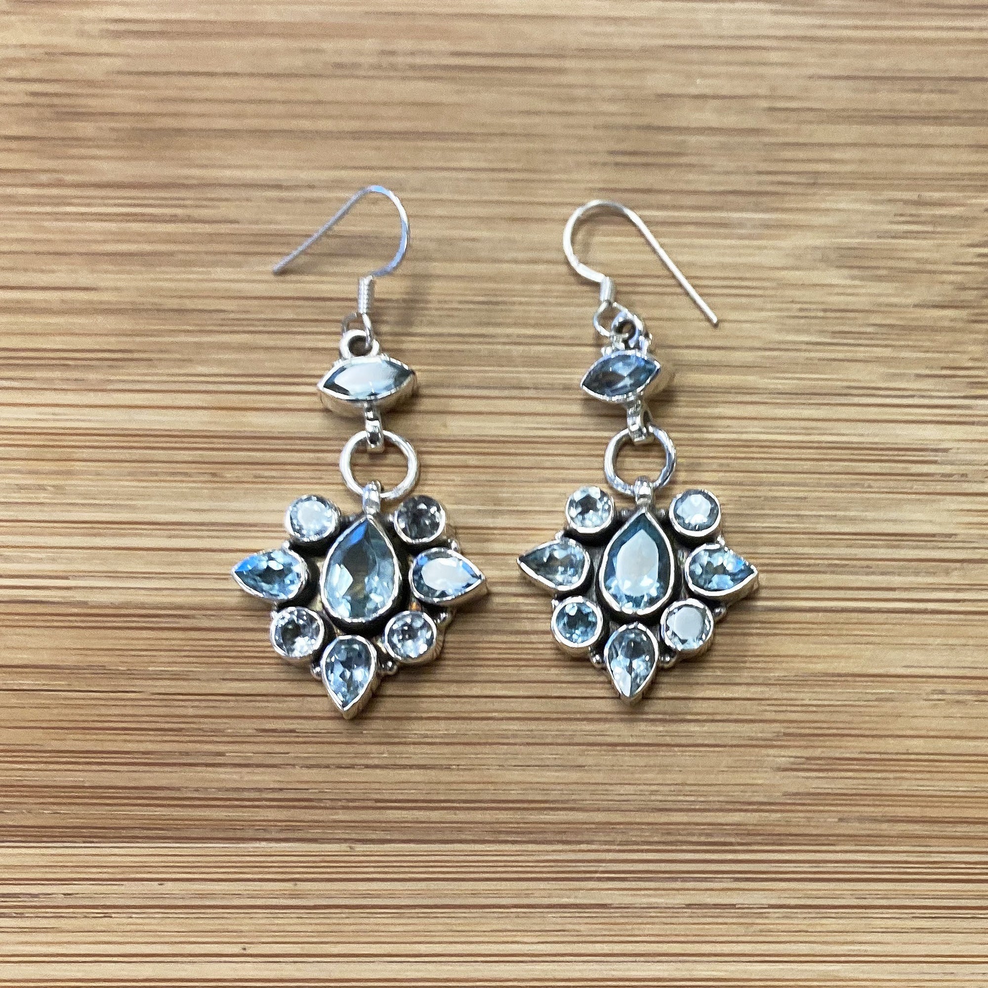 The beautiful Bali-designed pear- and round-cut blue topaz gemstone earring is absolutely stunning! Gift this beautiful ring to yourself or someone you love.