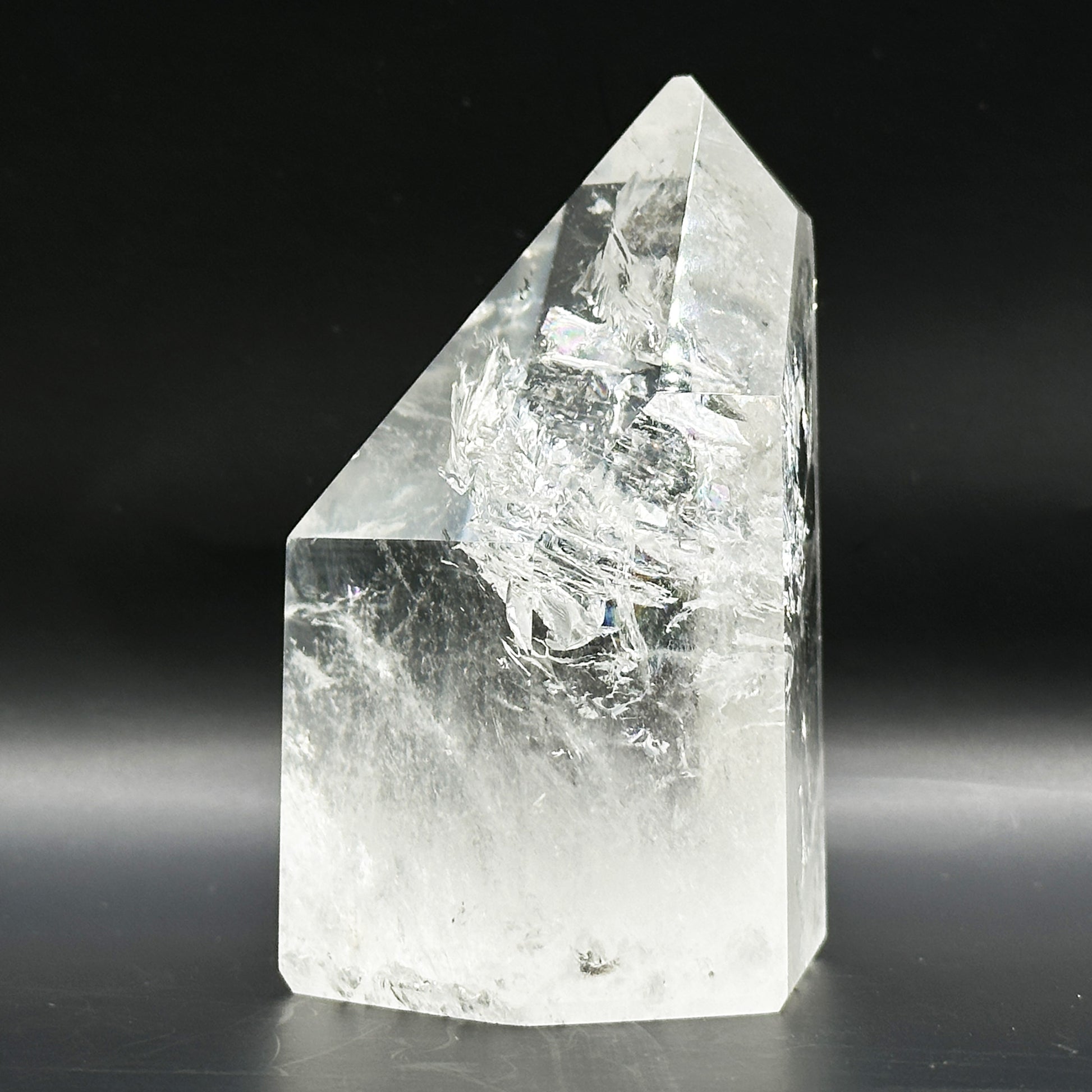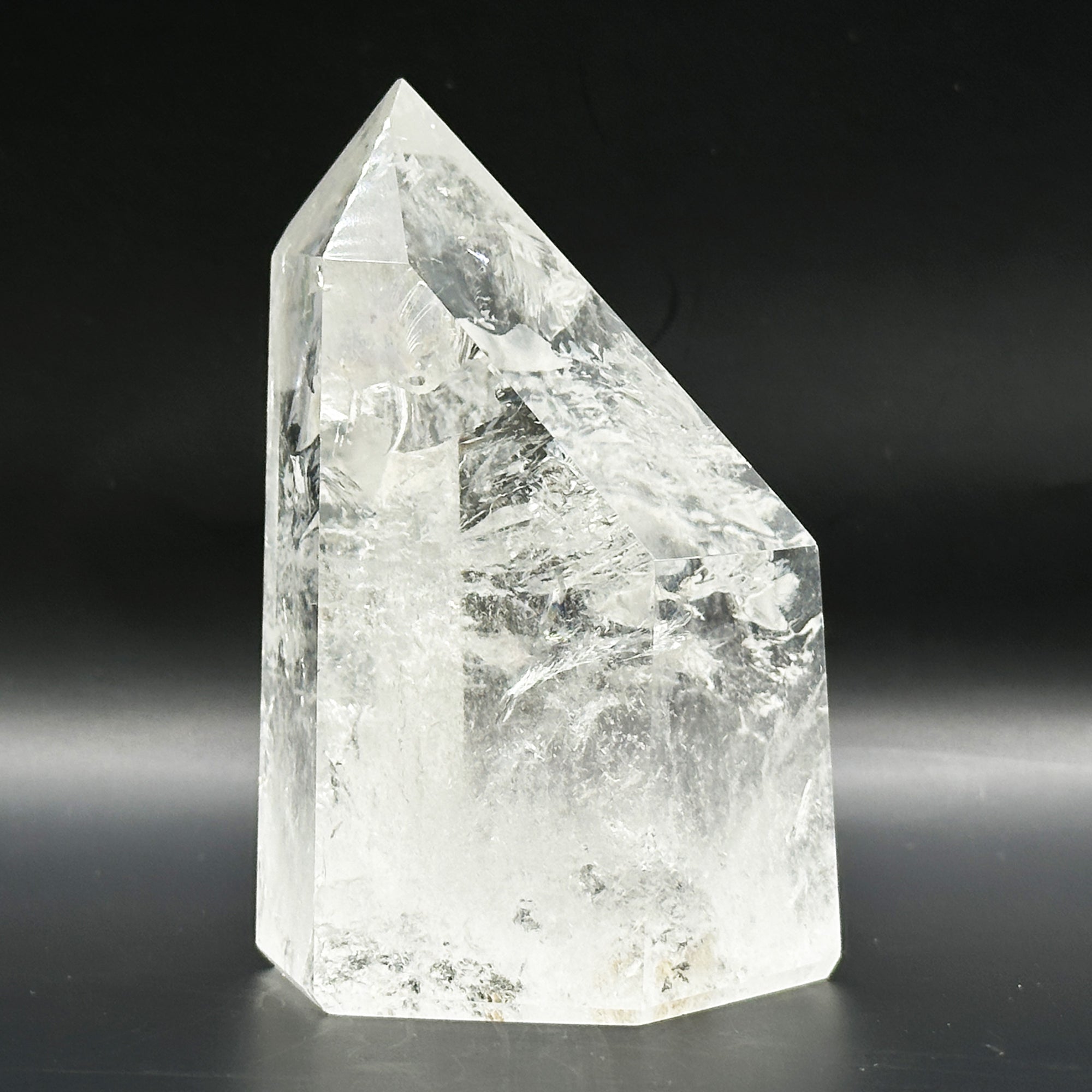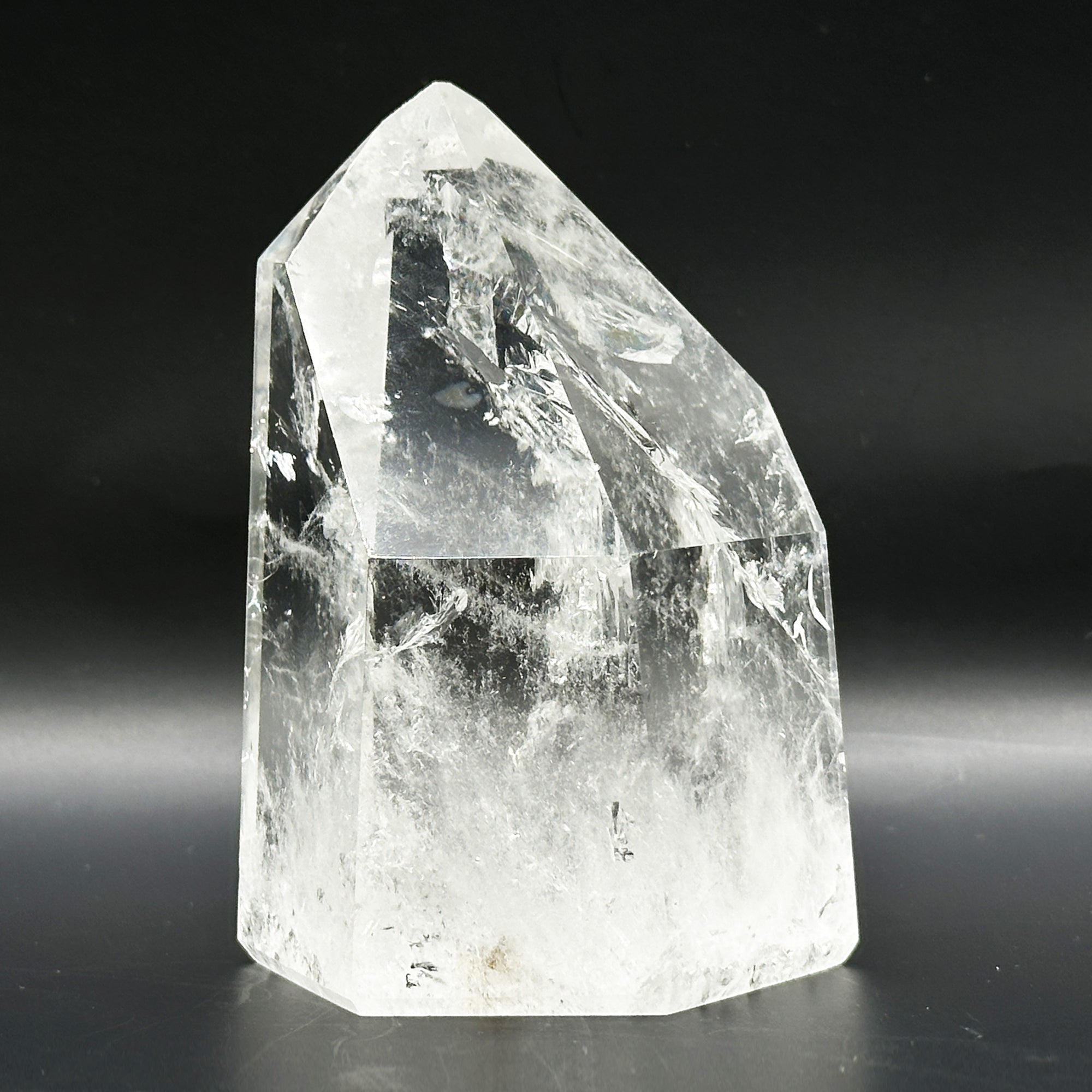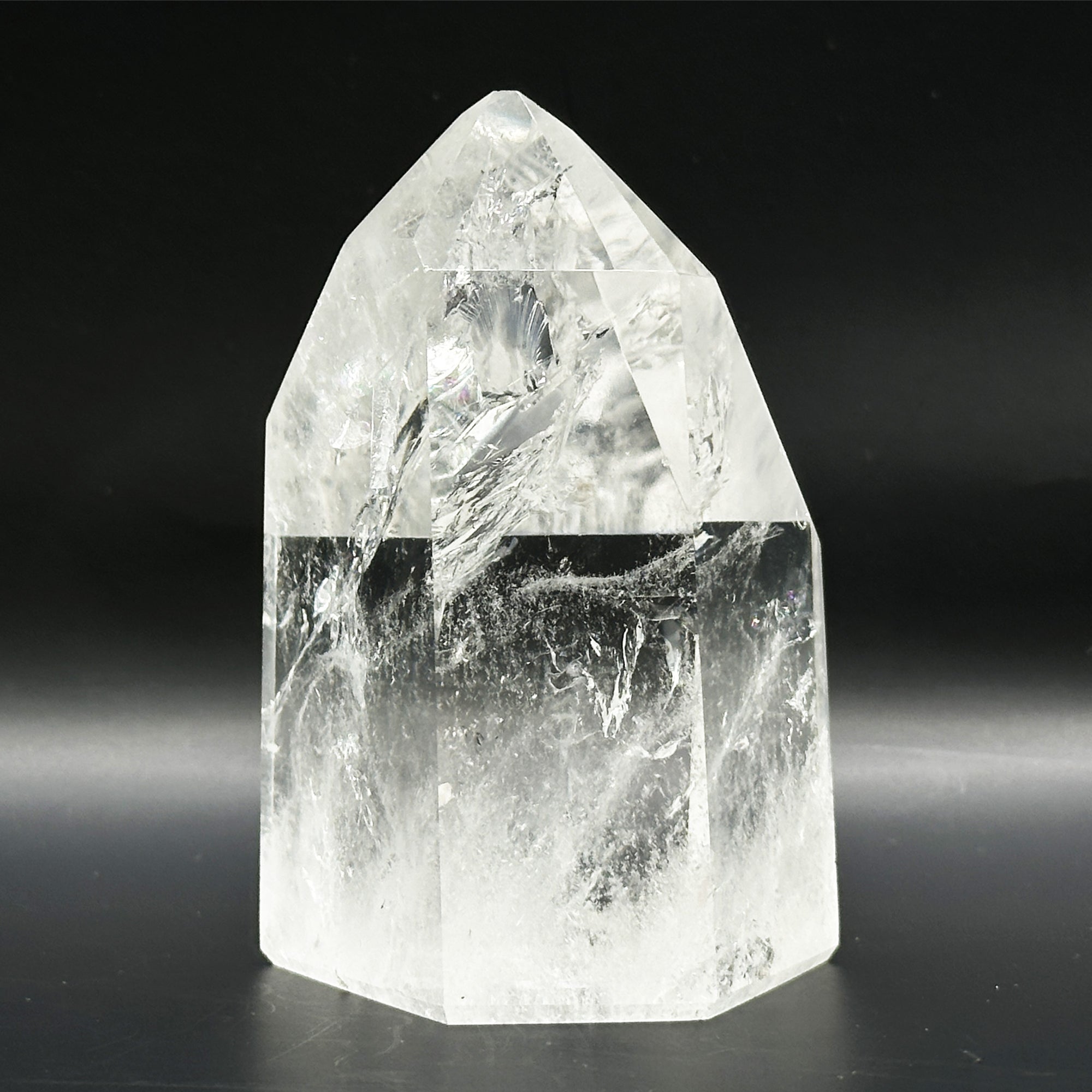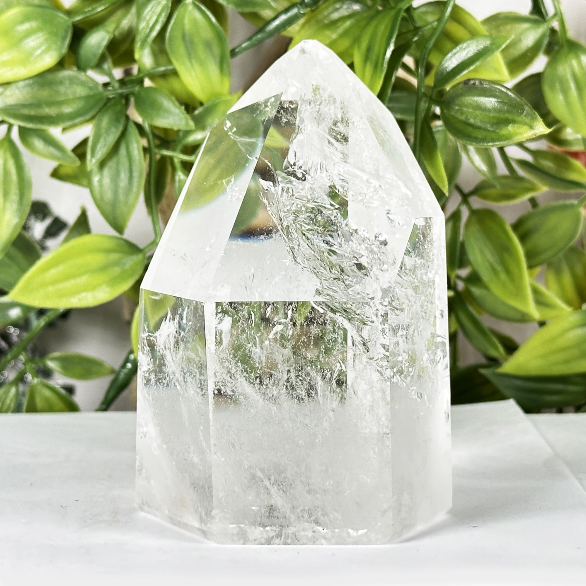 - description_tag : Natural polished quartz crystal tower from Brazil for energy healing and decor. Enhances clarity, positivity, and spiritual growth. Gem Avenue in Charlotte.