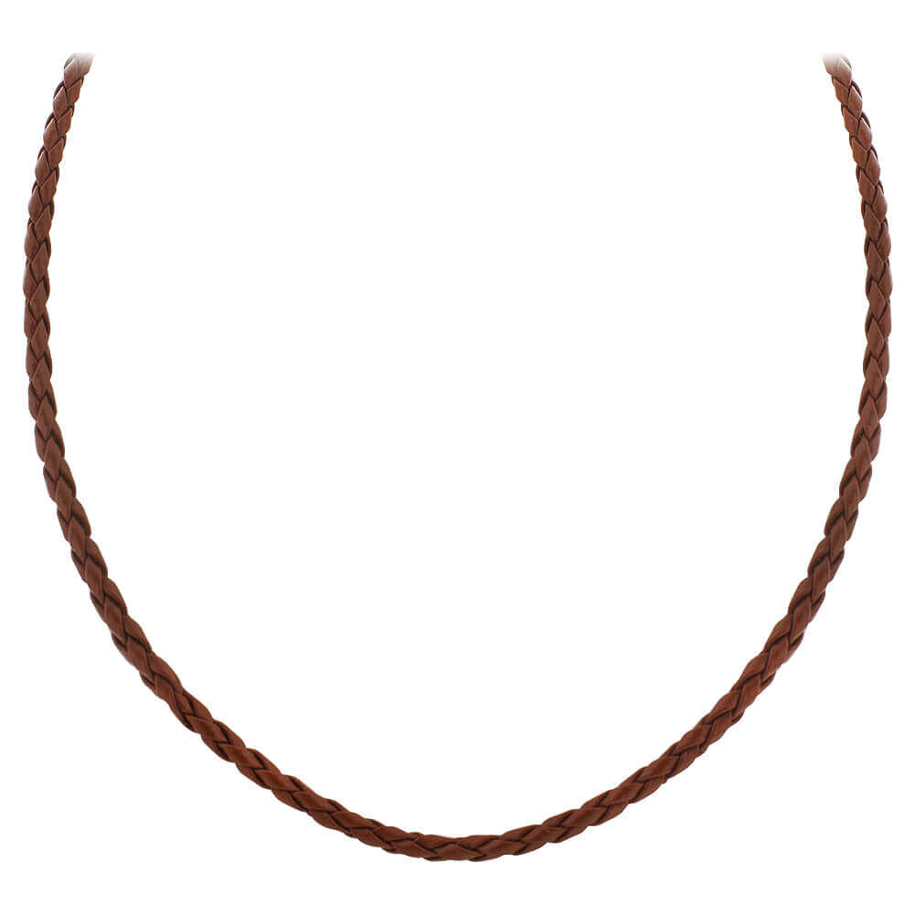 Enhance your style with this versatile brown braided leather cord necklace. Measuring 3 mm in thickness and 16 inches in length, it features a 925 sterling silver clasp for a secure and comfortable fit. Whether worn solo for a refined, understated appearance or adorned with a pendant from our diverse selection, this necklace is perfect for any occasion.
