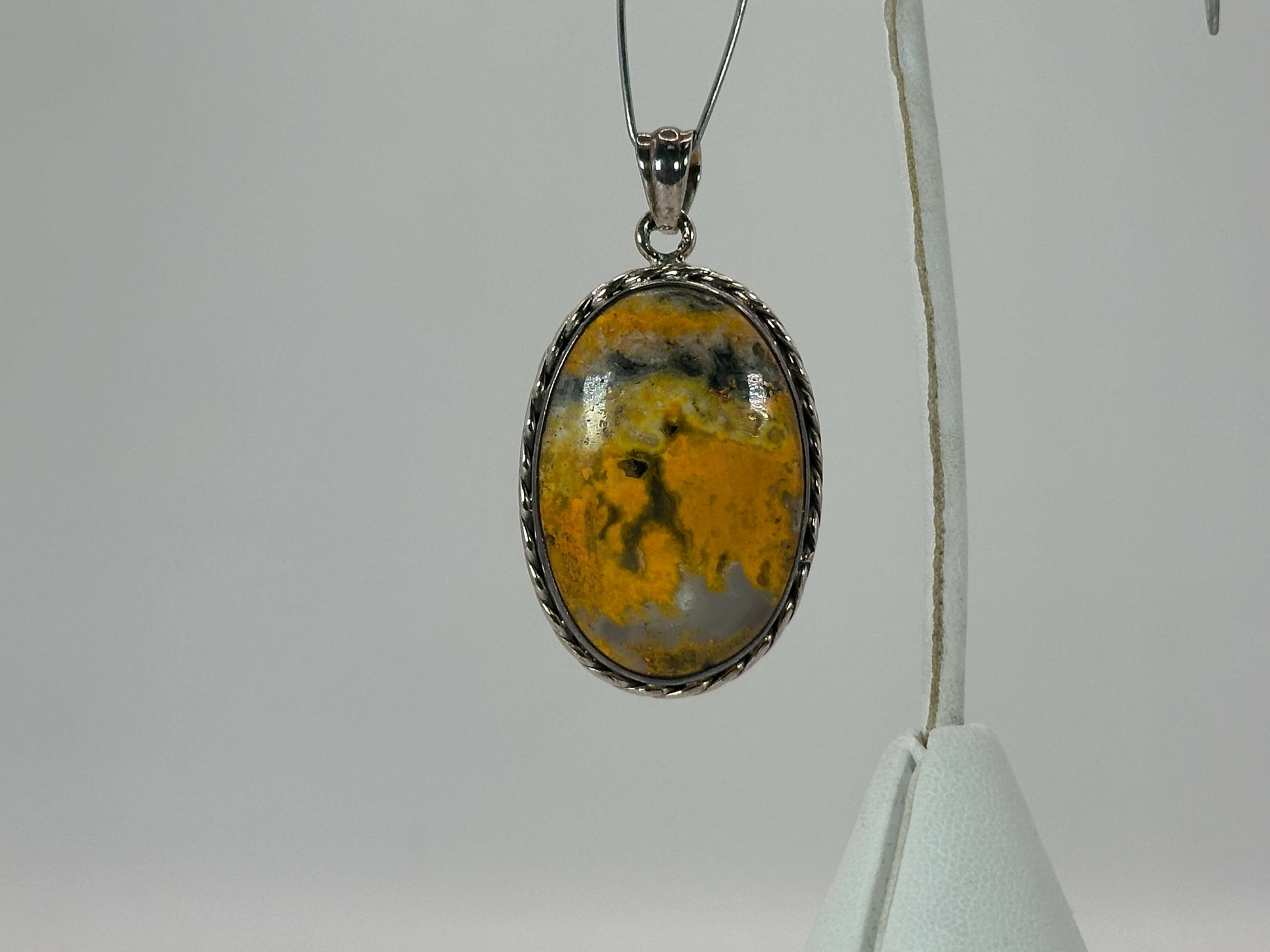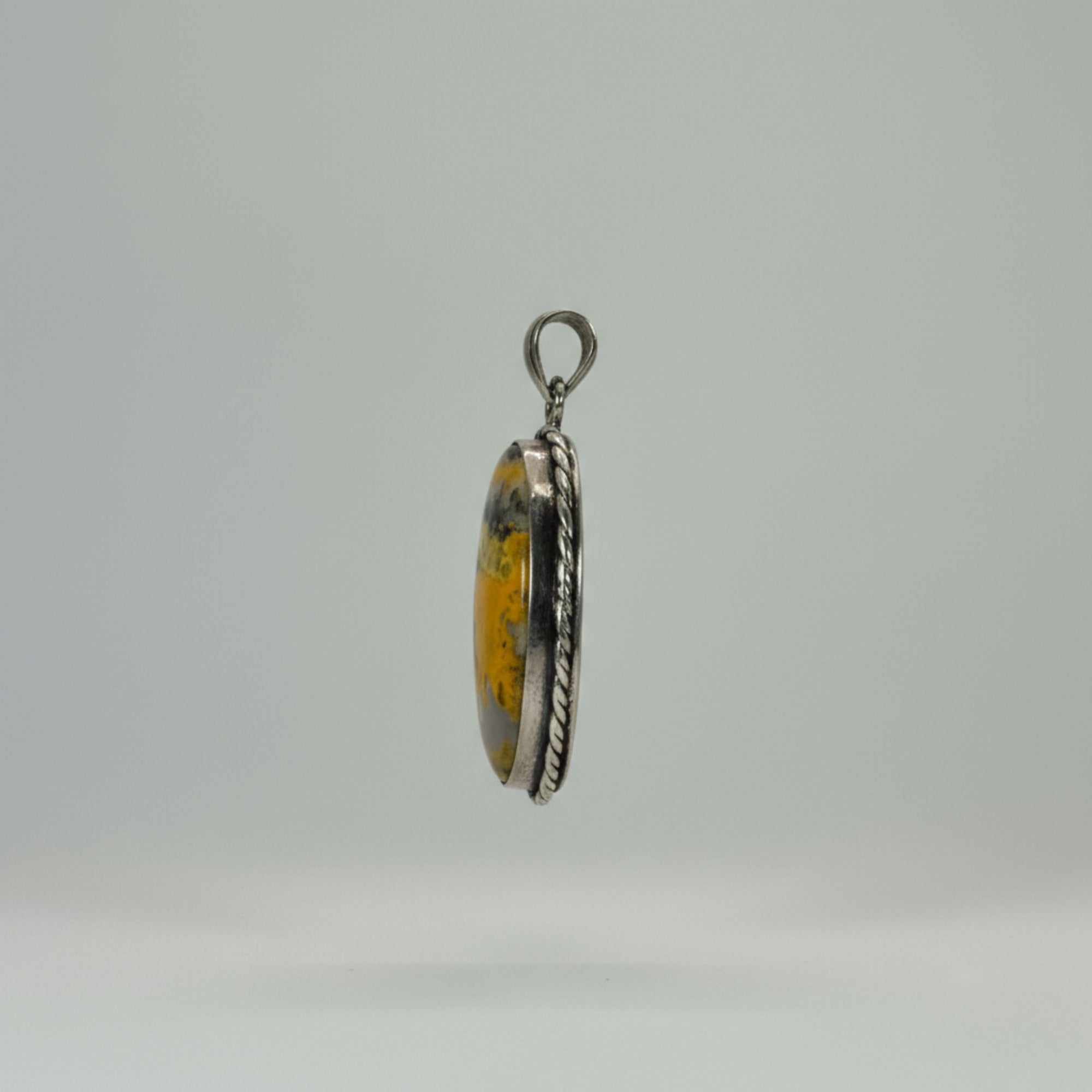 Crafted from genuine 925 sterling silver, this oval pendant showcases a natural yellow black jasper gemstone. The piece weighs 11 gram and offers a timeless look.