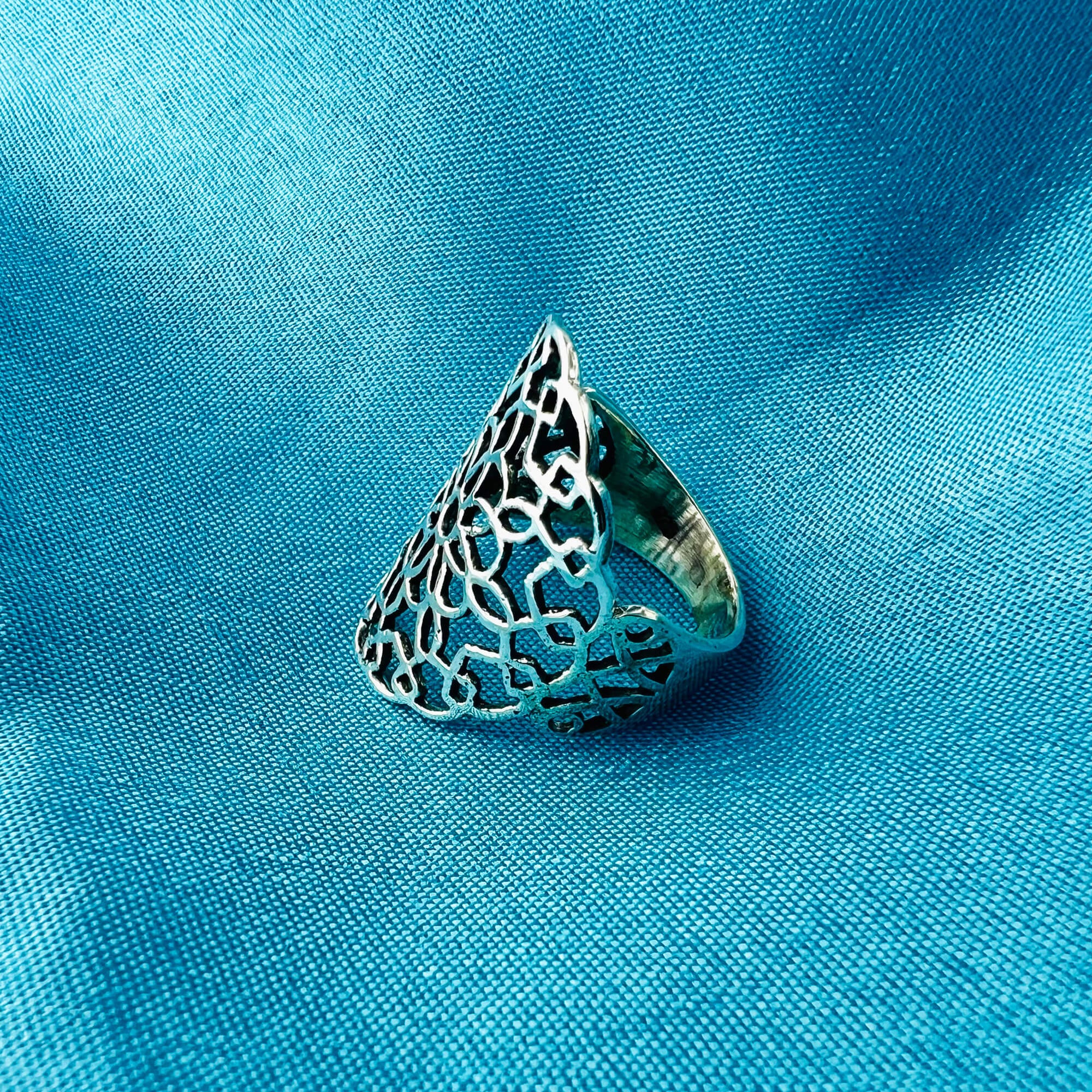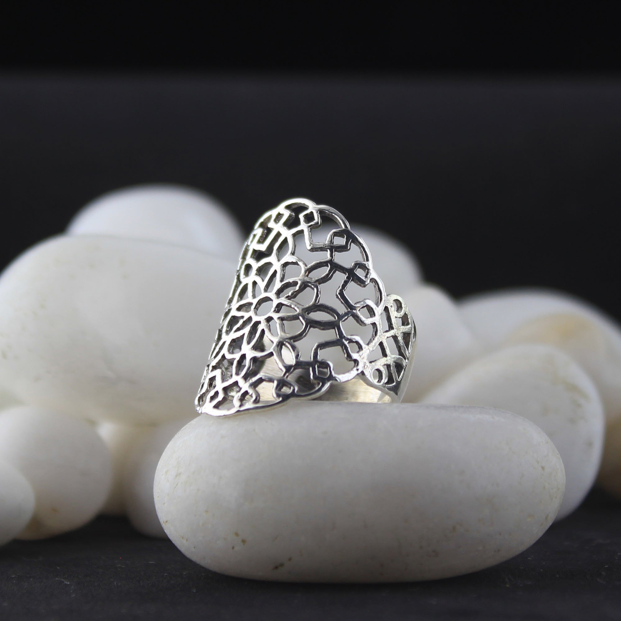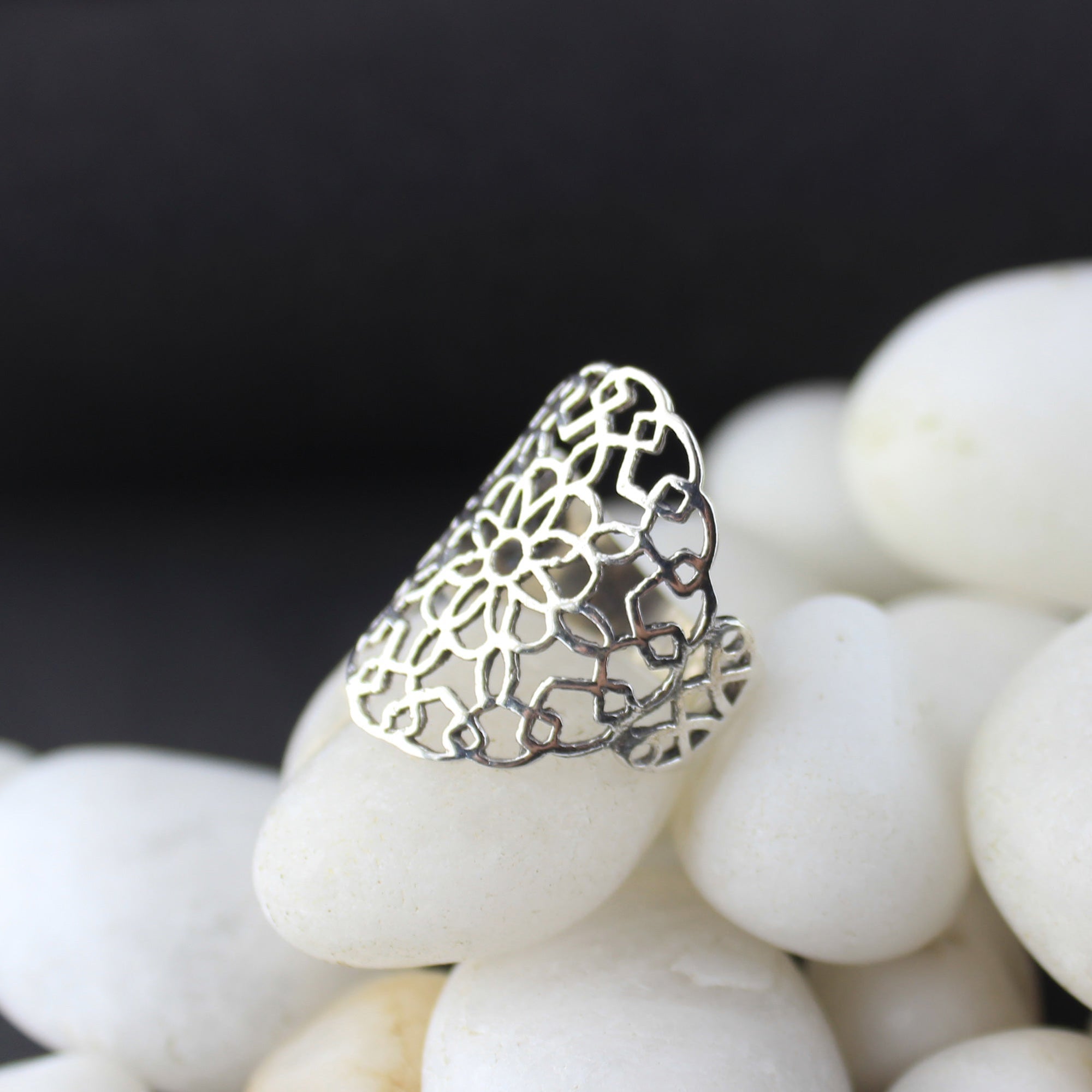This sterling silver ring is beautiful and delicate. The filigree design is intricate and elegant, with a floral motif. The ring is made of high-quality 925 sterling silver and is durable and scratch-resistant. It makes a great gift for any occasion.