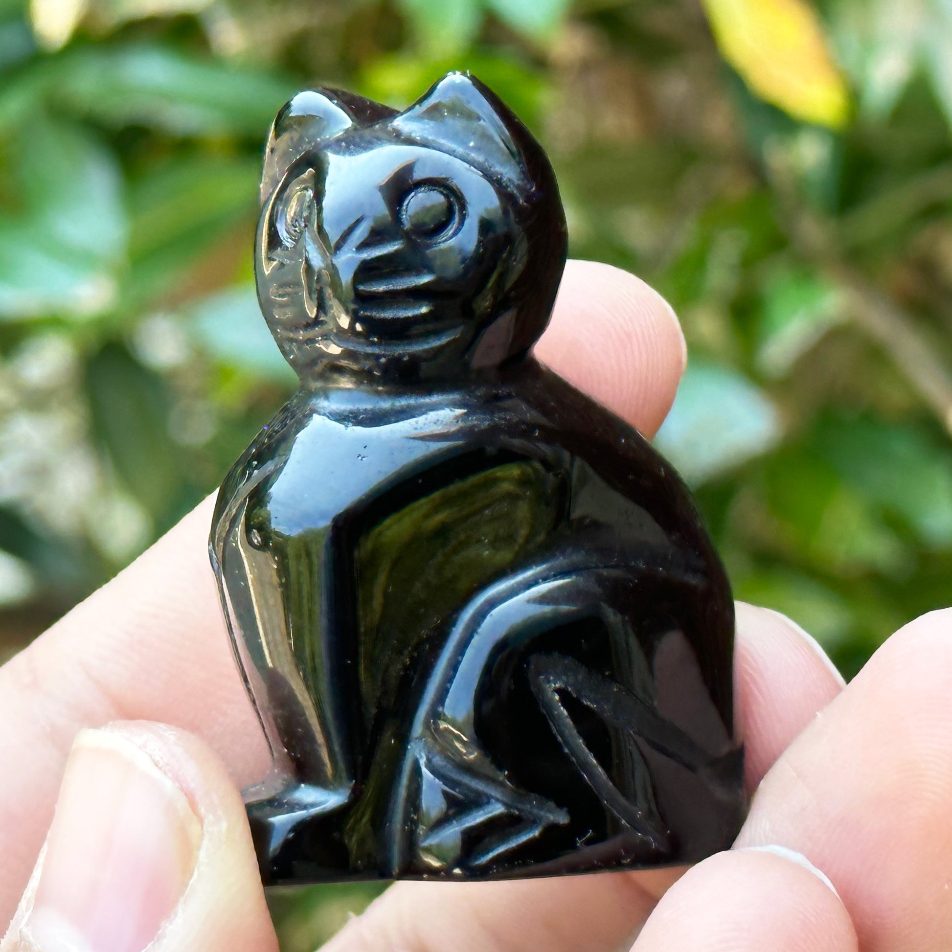 • title_tag : Hand Carved Cat Black Obsidian Gemstone Figurine - RAN319-BlackObsidian