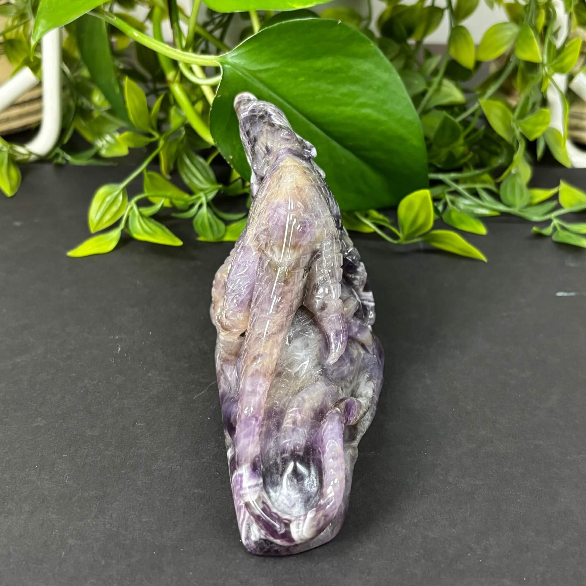 This hand-carved lizard sculpture crafted from chevron amethyst originates from China and offers a distinctive highlight for any crystal enthusiast. Featuring the stone’s characteristic purple and white banding, this piece exemplifies the natural beauty of high-grade chevron amethyst. The lizard form represents themes of transformation, renewal, and adaptability, adding symbolic depth beyond its decorative appeal. Its modest dimensions and striking coloration make it perfect for display settings or collections centered on animal symbolism and crystal healing practices.