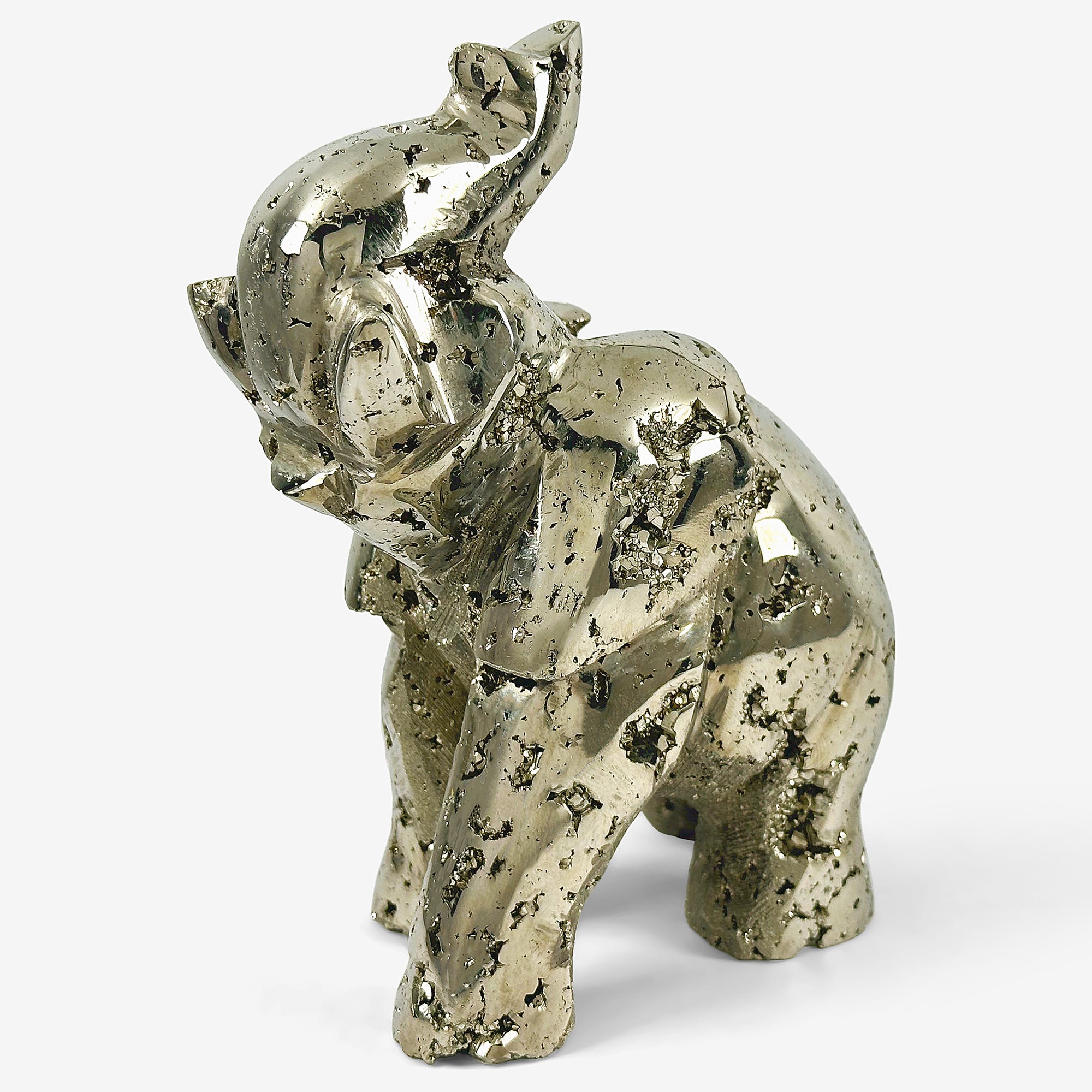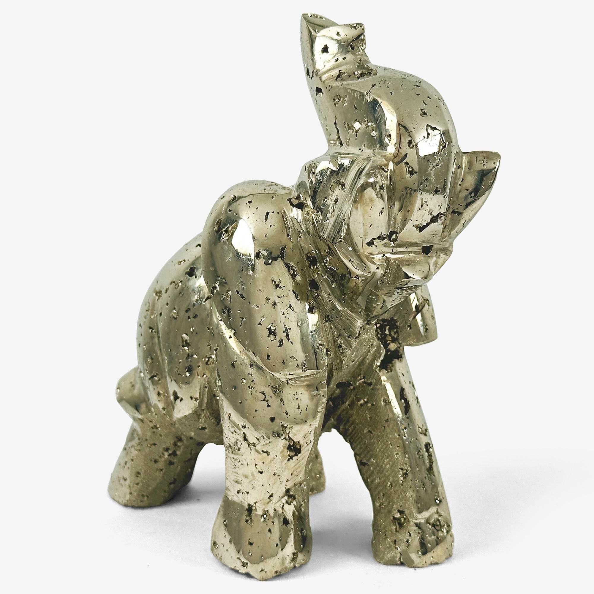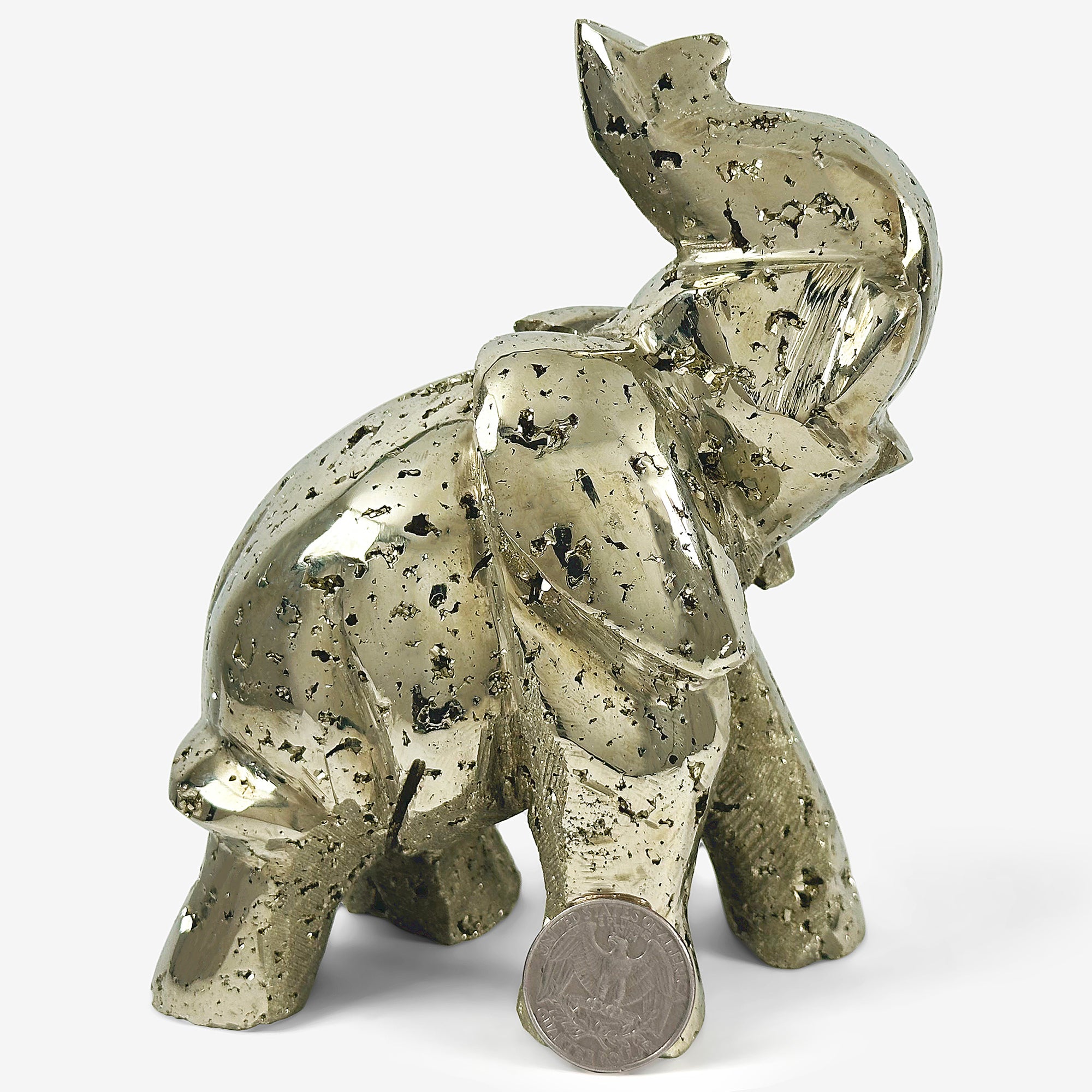 This stunning carving comes to us all the way from Peru and features a metallic, brassy luster accompanied by a stunning attention to detail from trunk to tail. With amazing quality paired with eye-catching beauty, this pyrite elephant carving from Peru will make a perfect addition to any home or collection!