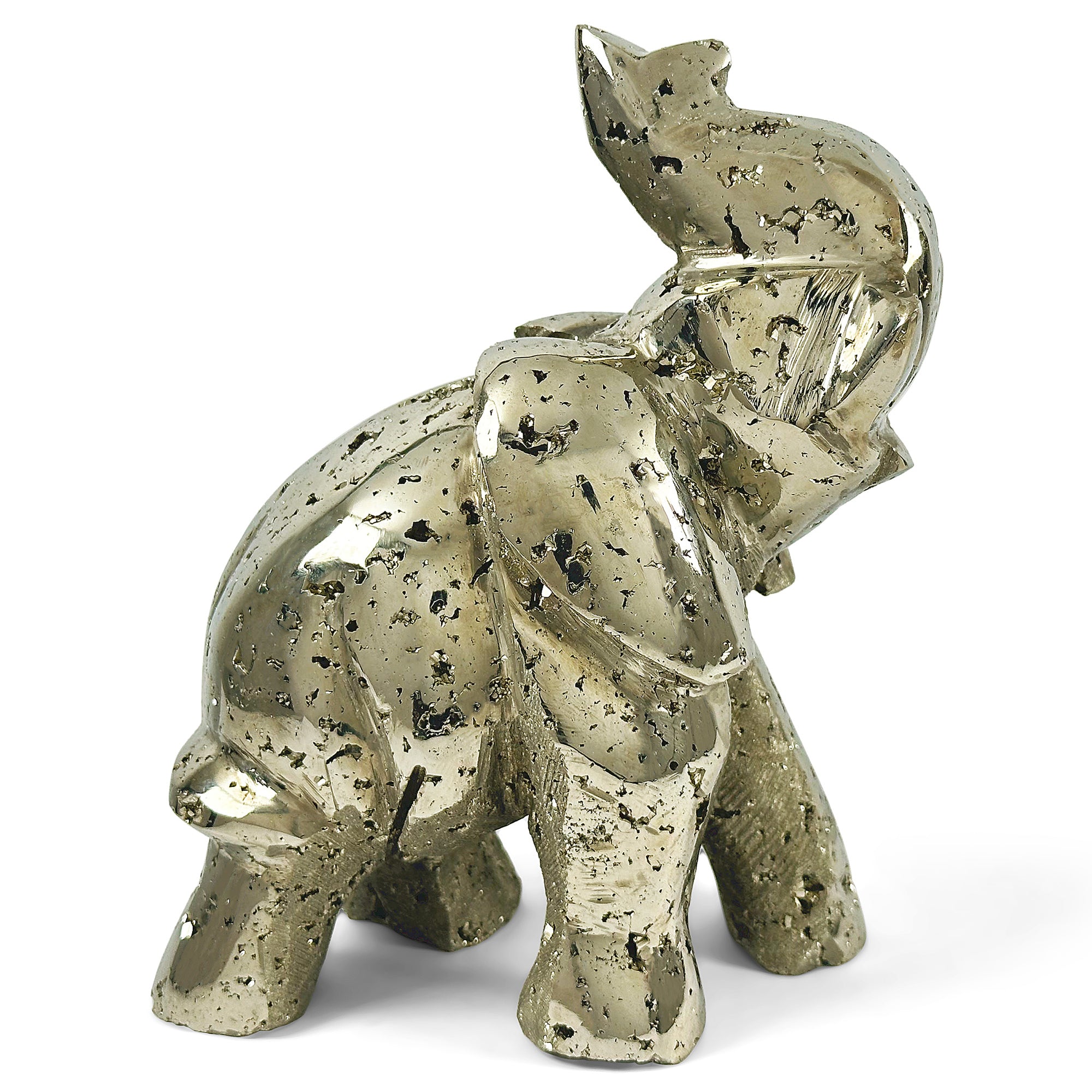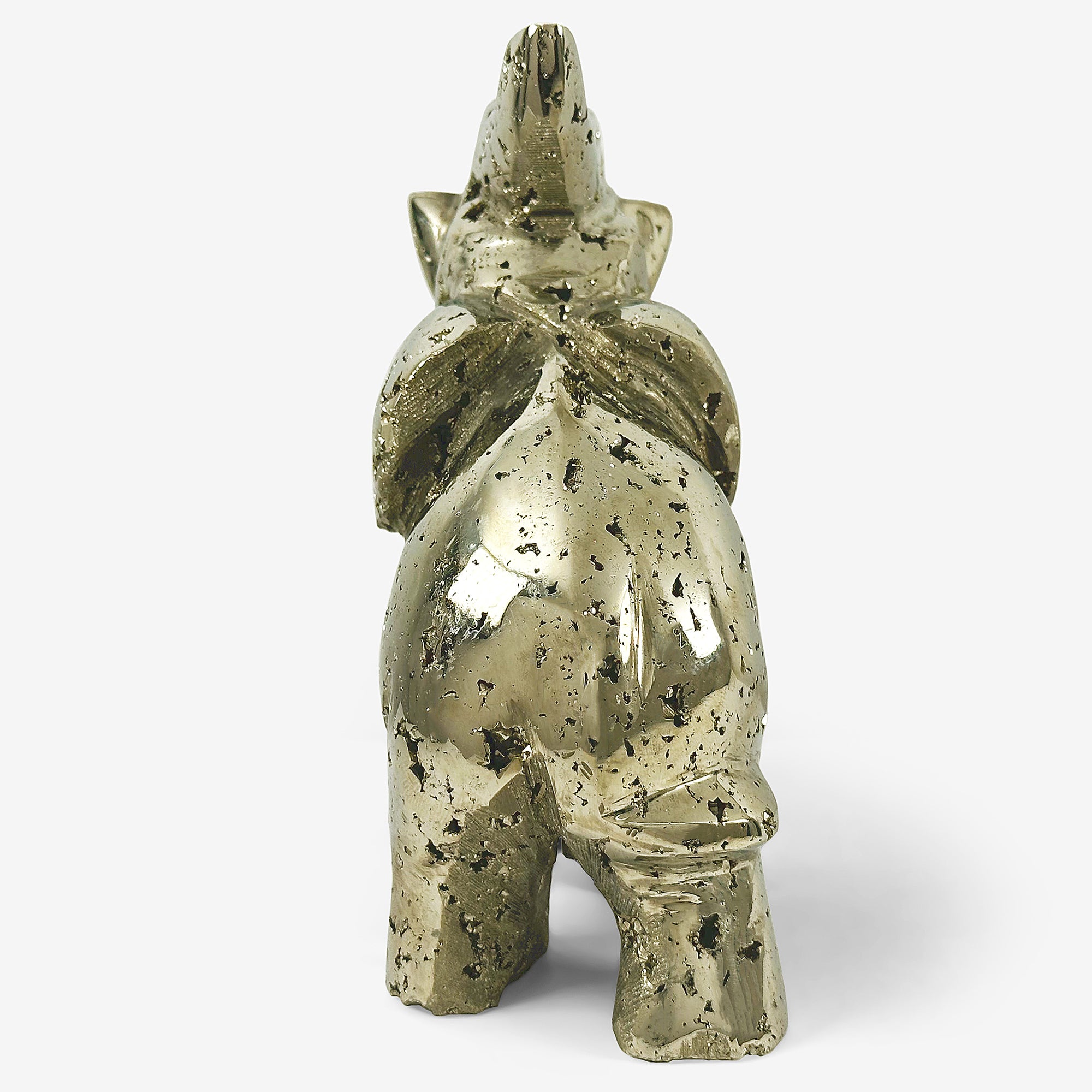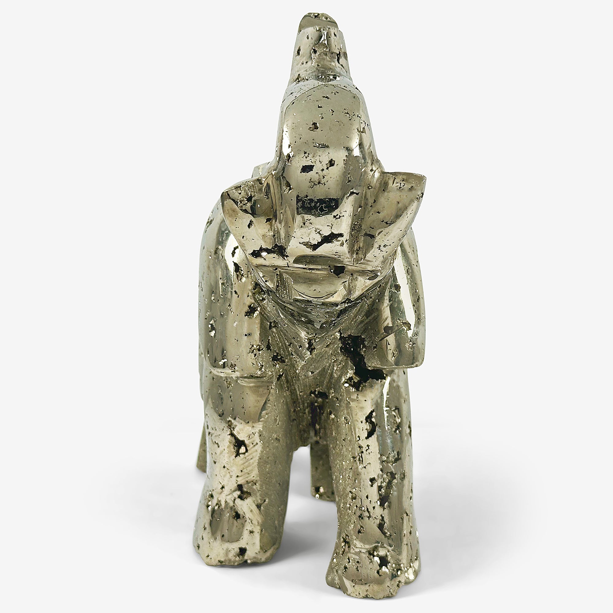 This stunning carving comes to us all the way from Peru and features a metallic, brassy luster accompanied by a stunning attention to detail from trunk to tail. With amazing quality paired with eye-catching beauty, this pyrite elephant carving from Peru will make a perfect addition to any home or collection!