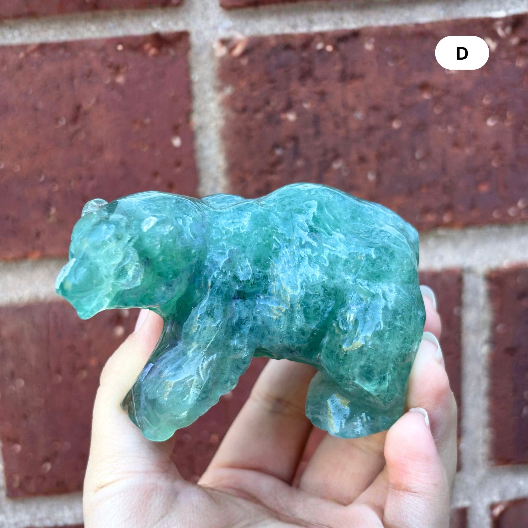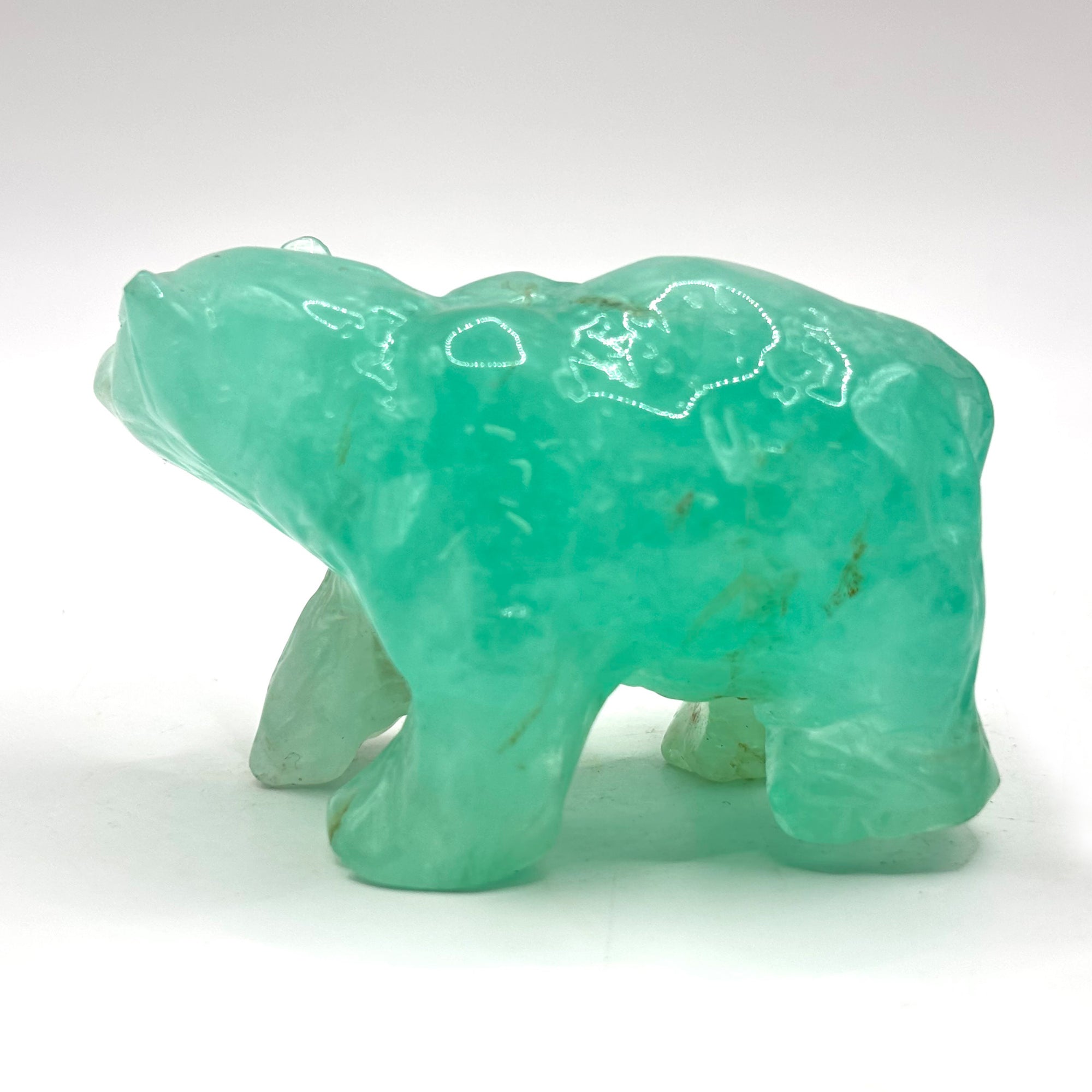 - description_tag : Hand carved green fluorite bear figurine for healing, meditation, and home decor. Available at Gem Avenue in Charlotte.