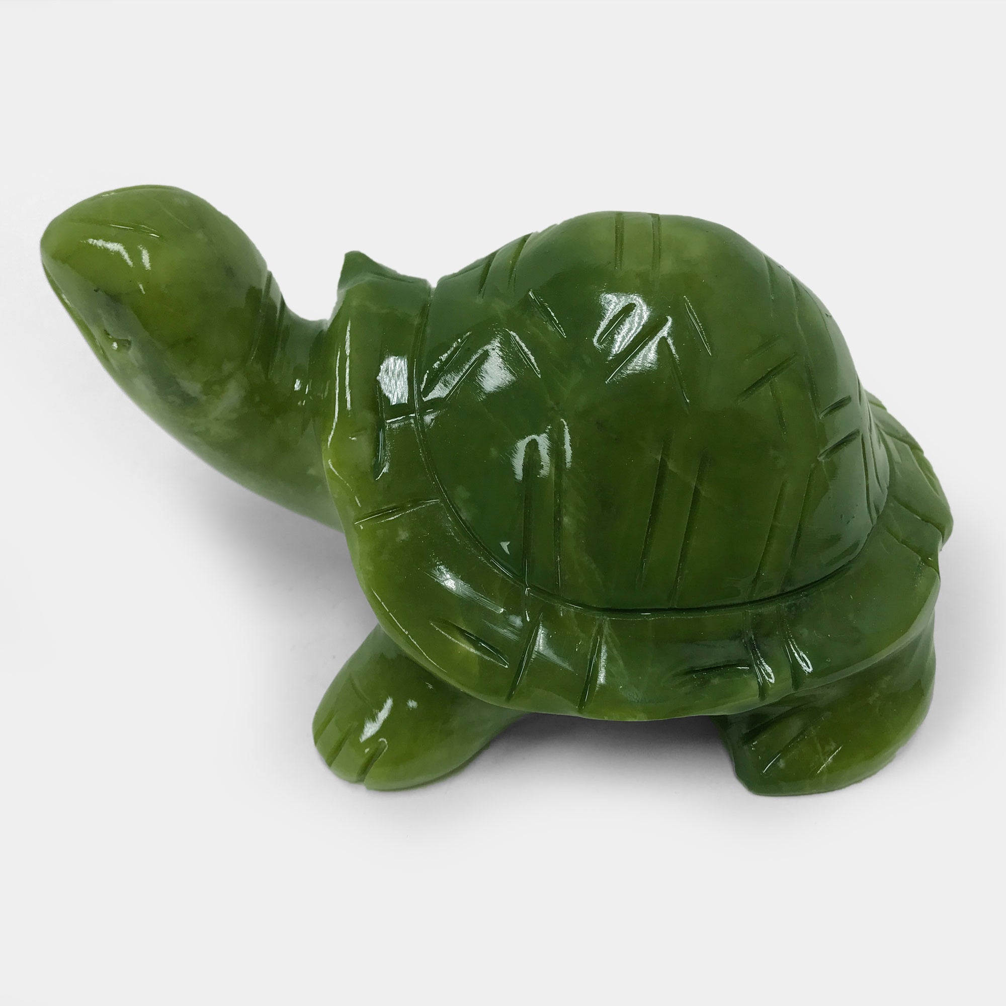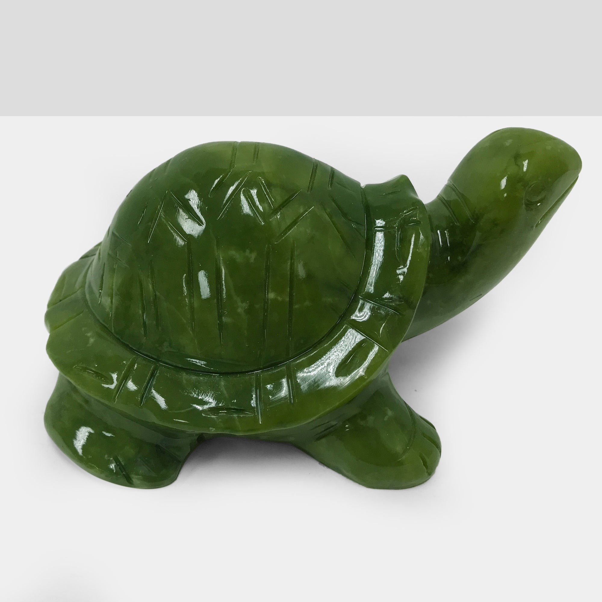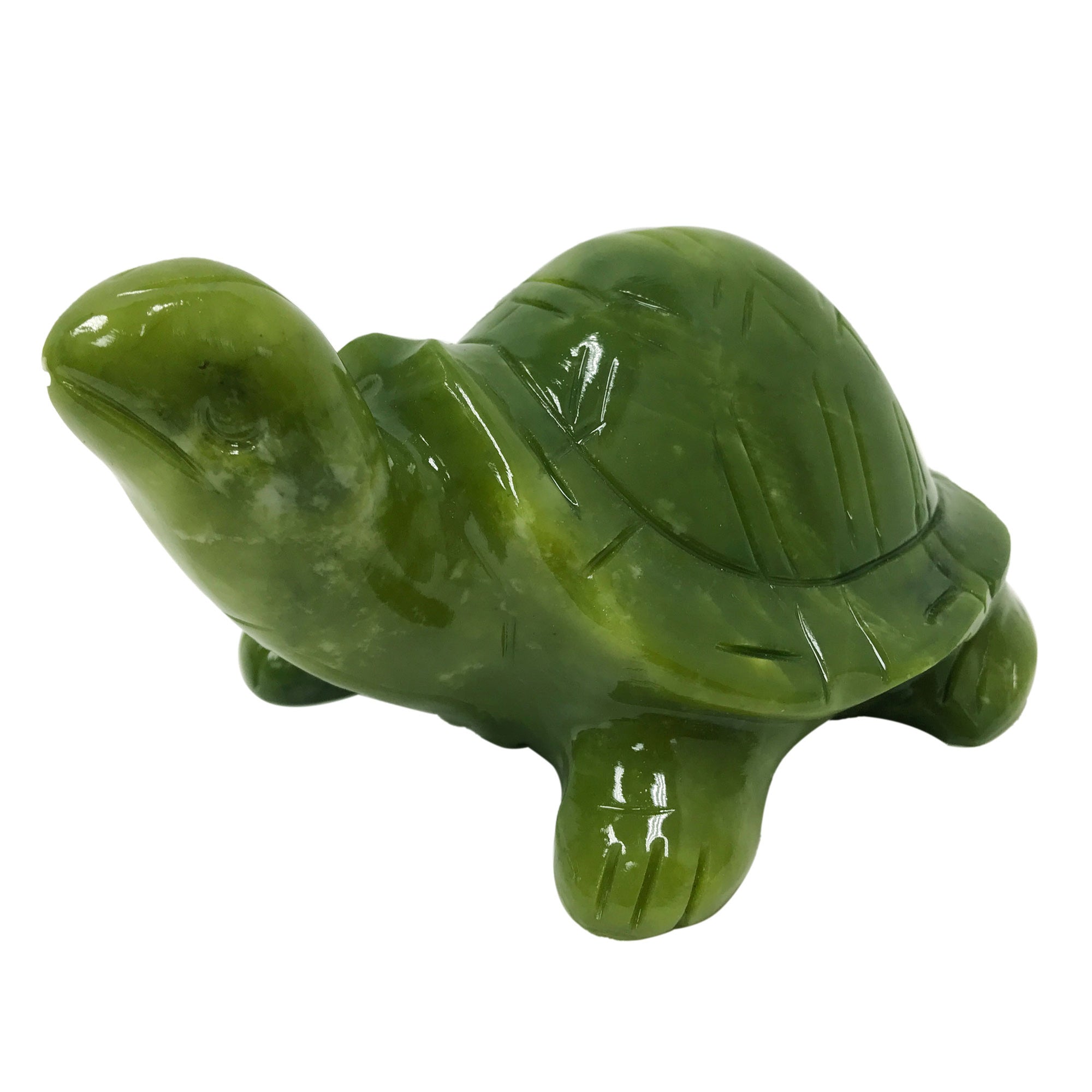 Hand-Carved Nephrite Jade Turtle Figurine Natural Crystal Sculpture for Healing, Good Luck, Home Decor, Office Display & Gift for Collectors 14-0003