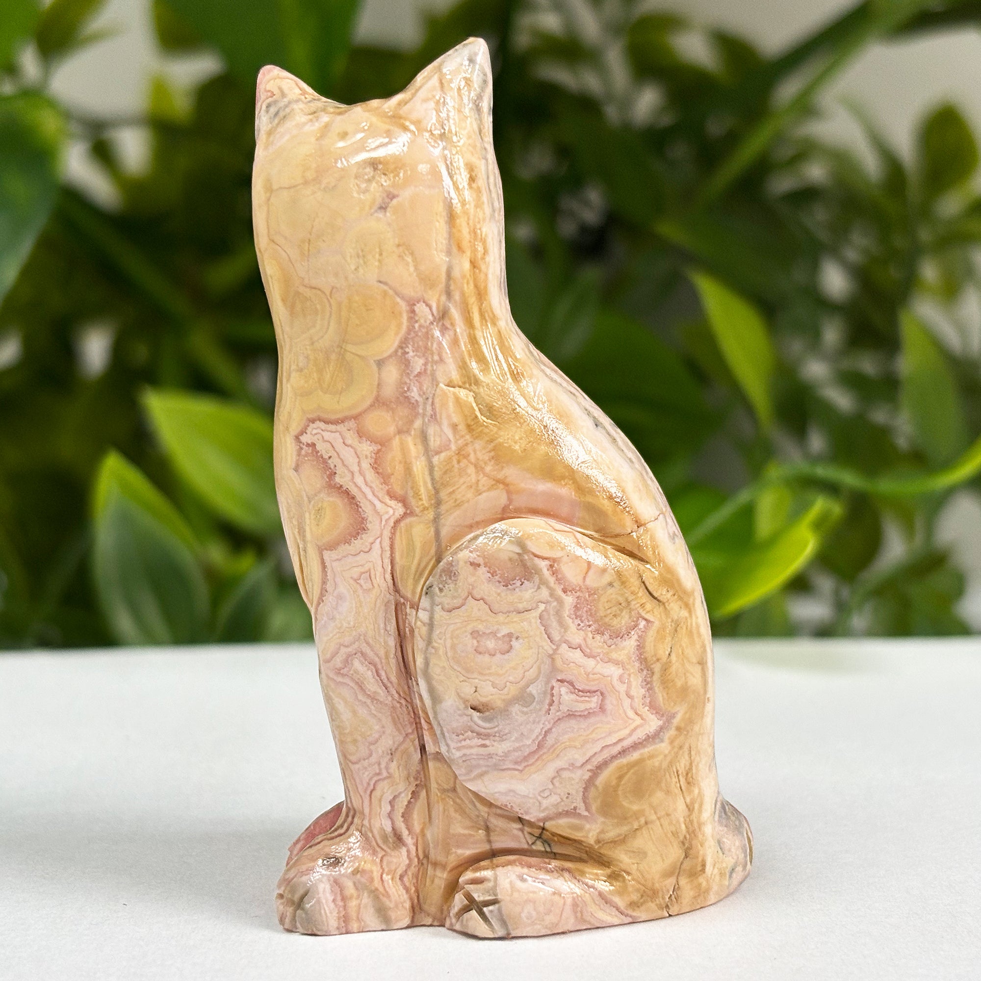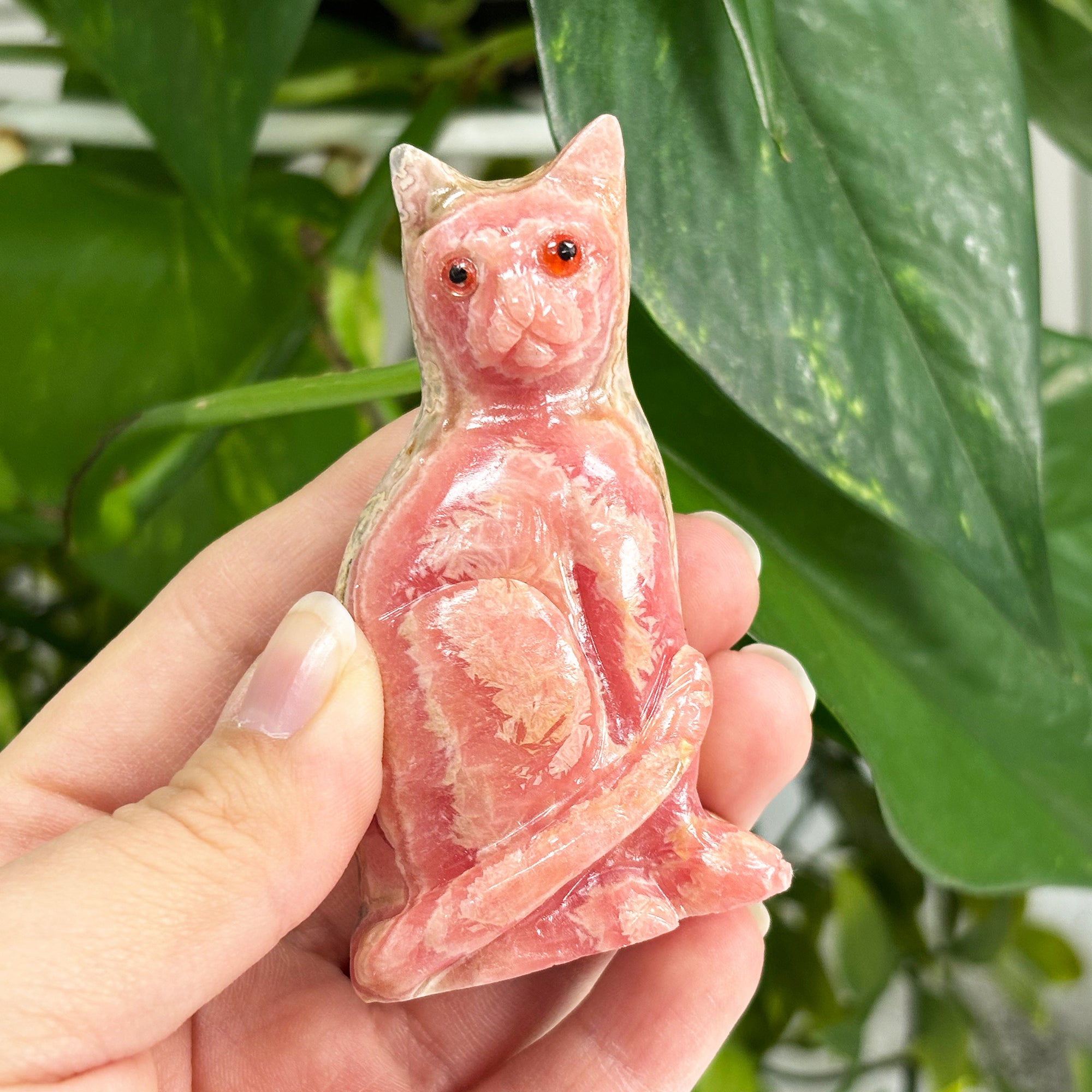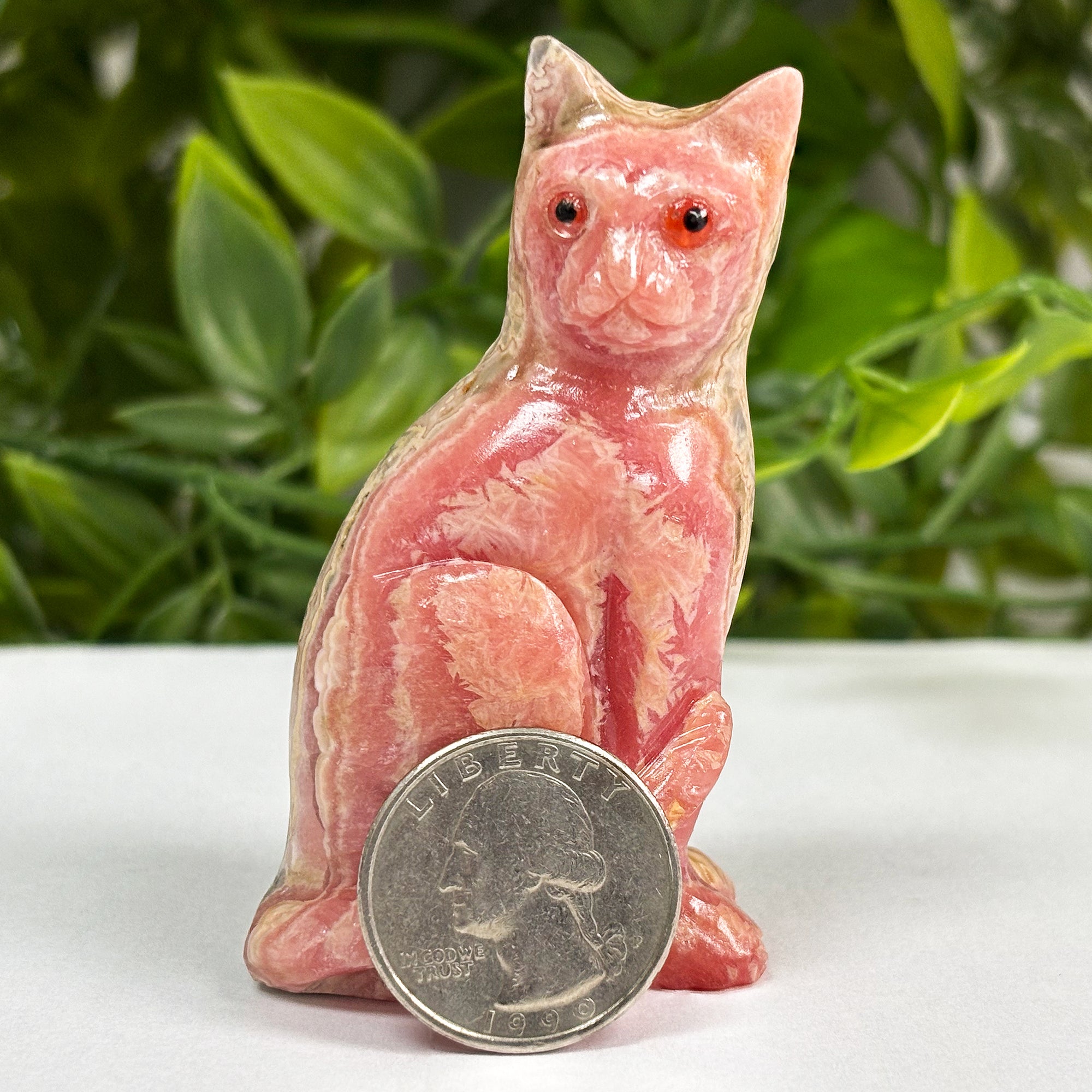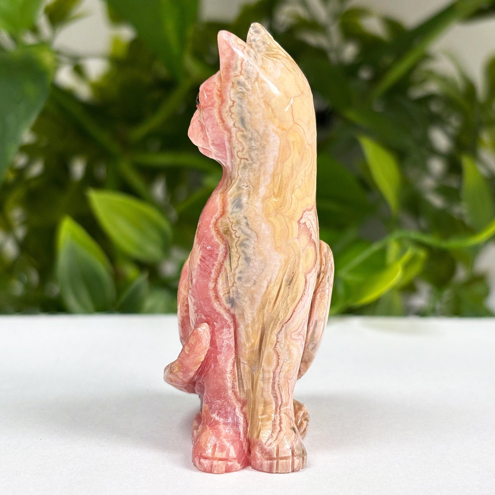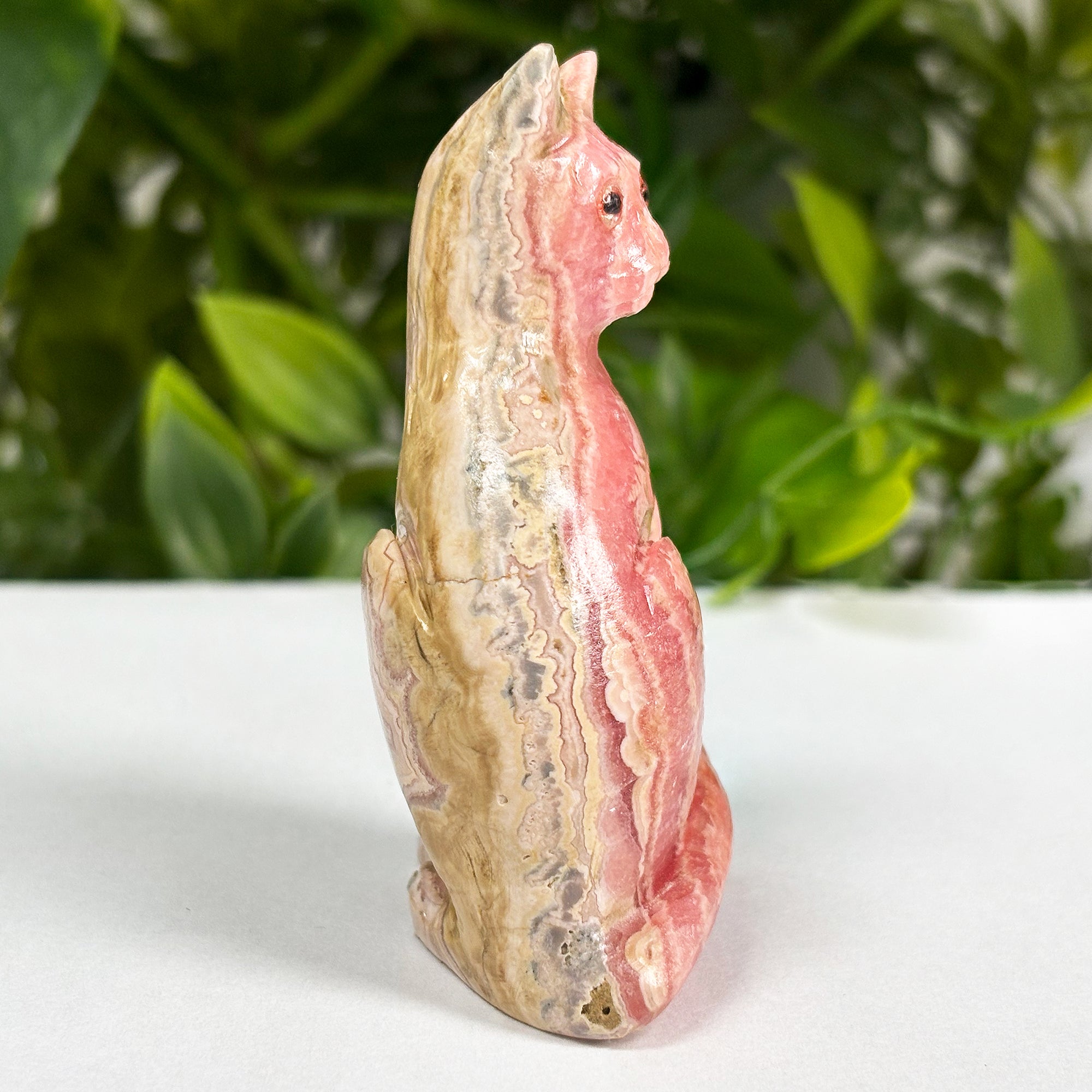 Fall in love with this absolutely perfect Rhodochrosite cat! Featured on this stunning piece are various vibrant shades of pink from dark to light and touches of beige and gray. With incredible quality paired with eye-catching beauty this Rhodochrosite cat will make a perfect addition to any home or collection!