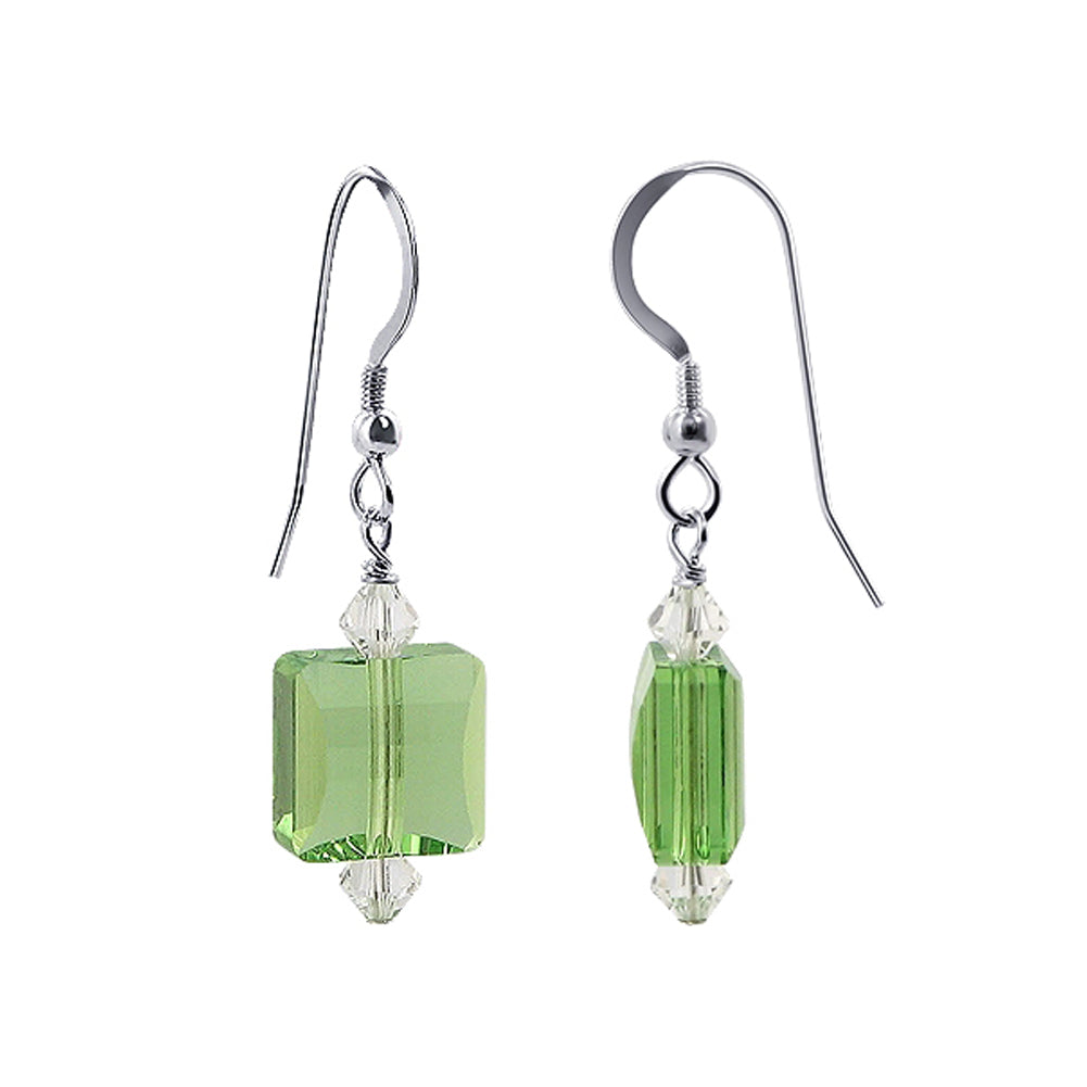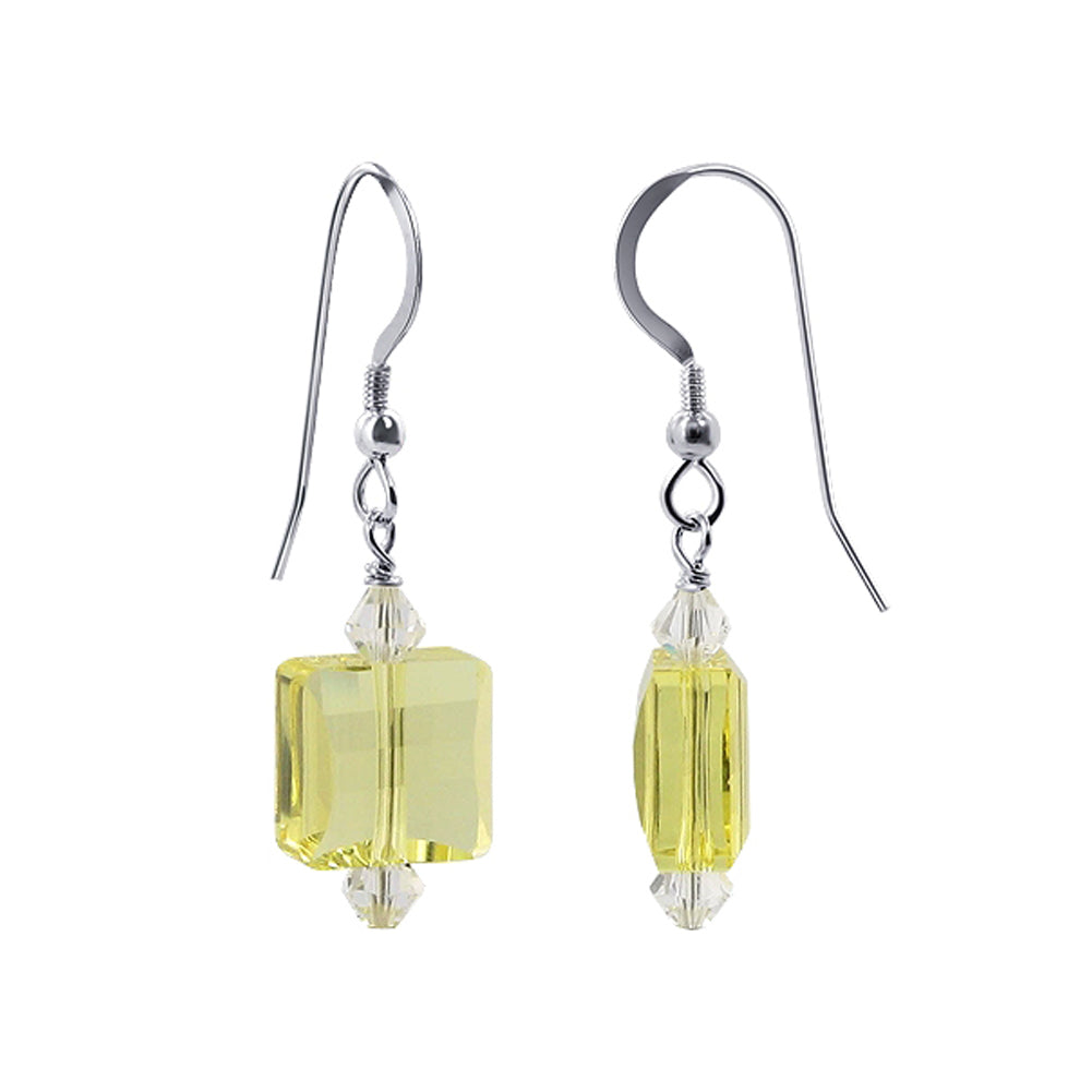 • title_tag : 925 Silver Drop Earrings with Austrian Square & Bicone Crystals - GEG75