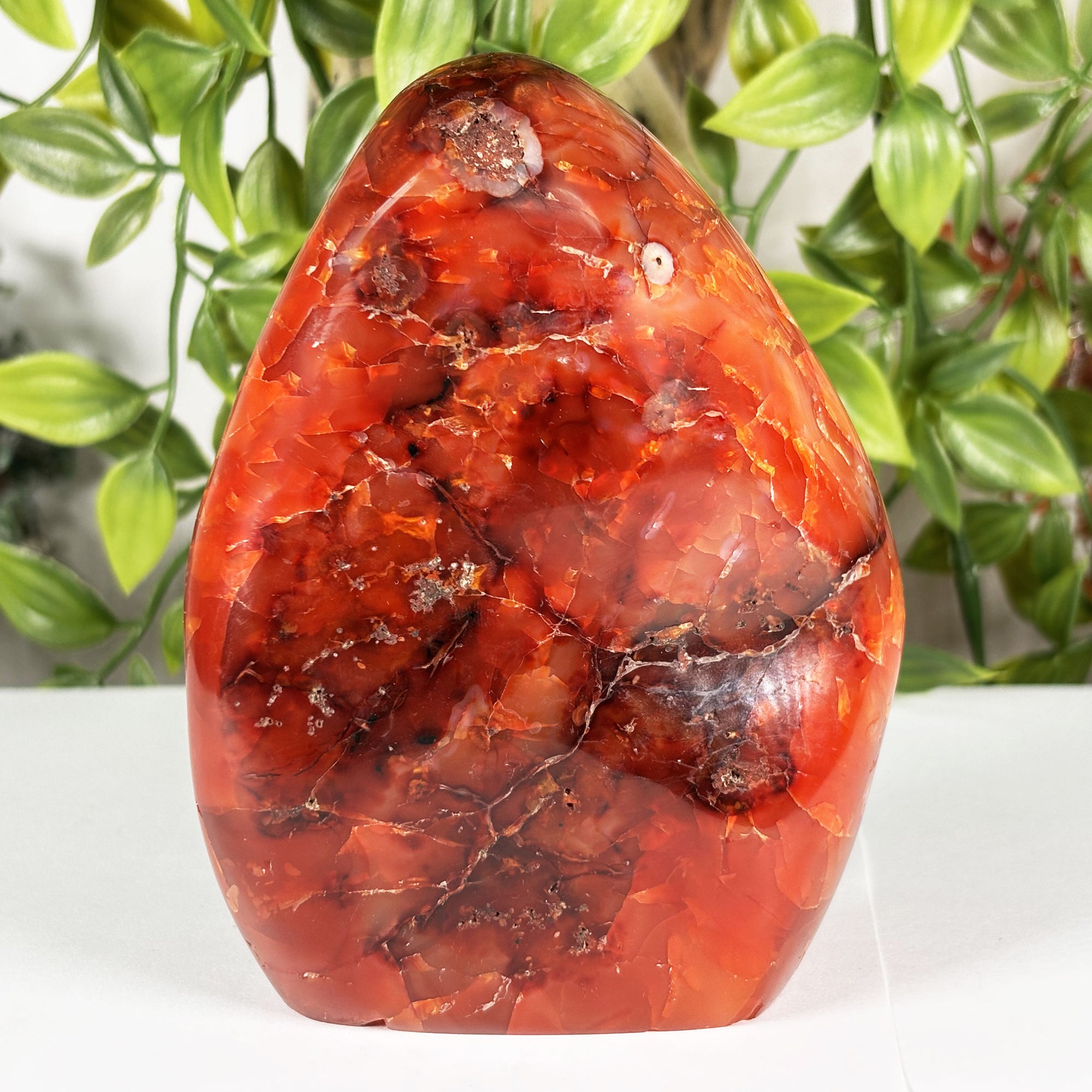 With its larger size and impressive weight, this carnelian flame makes an especially commanding display piece that brings warmth, color, and natural energy into any environment. Carnelian has been prized across cultures for centuries as a stone of action, confidence, and creative fire, and this flame form amplifies that symbolism in a visually powerful way. It is an ideal choice for crystal enthusiasts seeking a premium Madagascar specimen, for interior decorators looking for a bold natural accent, or for anyone who wants to bring the grounding and energizing qualities of carnelian into their daily space. This is a collector grade piece that stands out for its size, color richness, and the exceptional quality of its carving and polish.