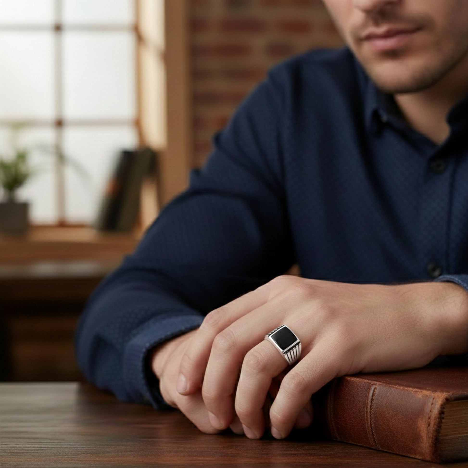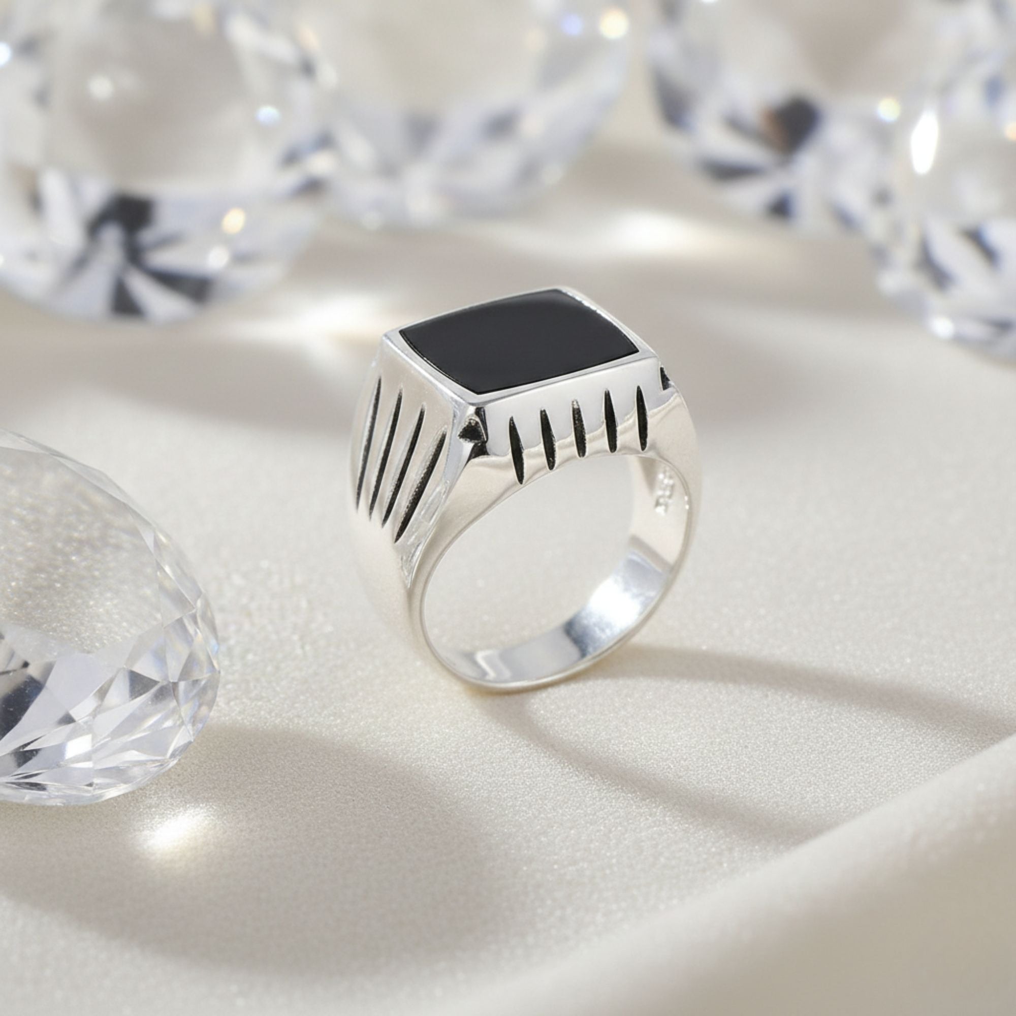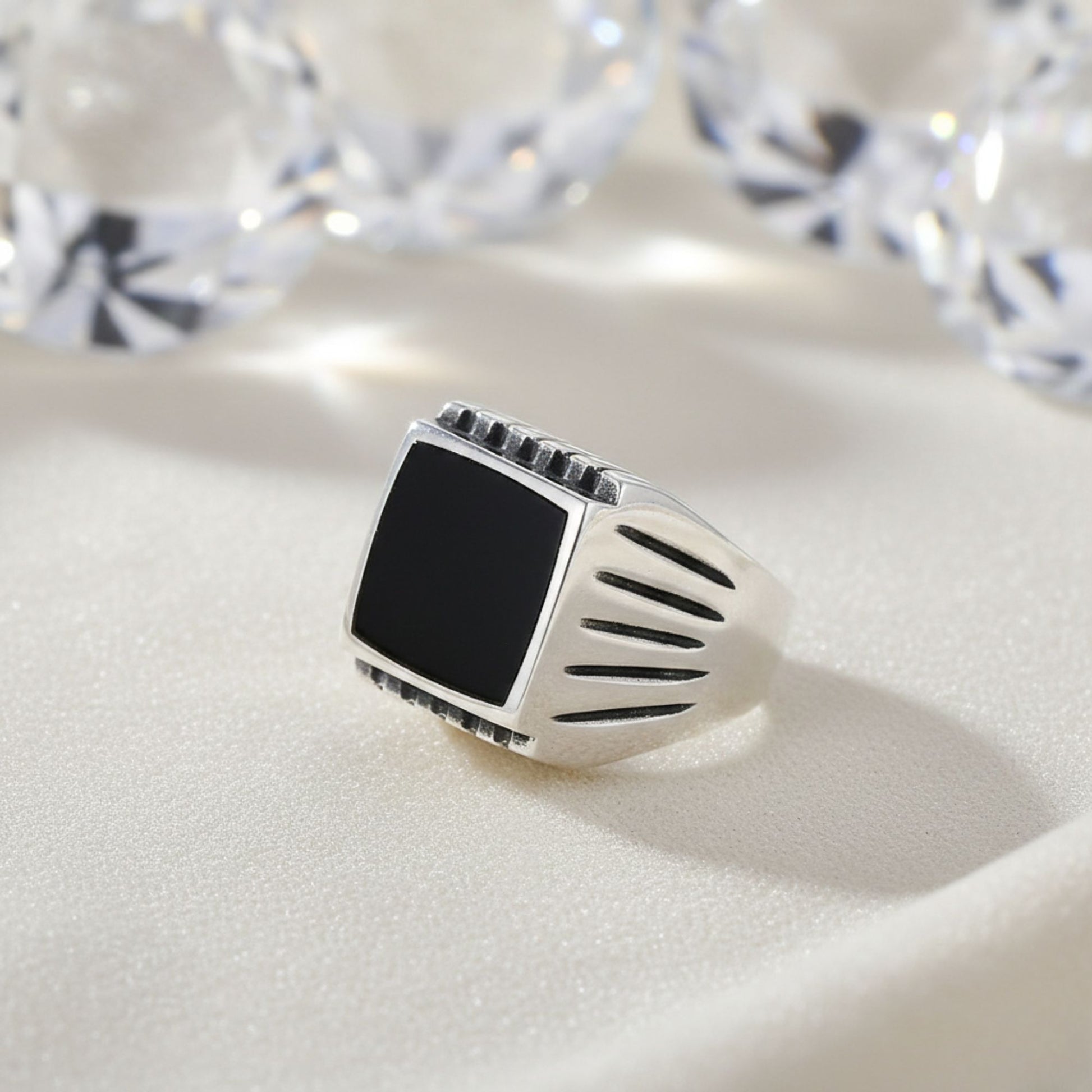 This bold statement piece features a striking square Black Onyx stone, adding a touch of mystery and sophistication to your ensemble. It's not just a piece of jewelry; it's a symbol of your unique style and confidence.