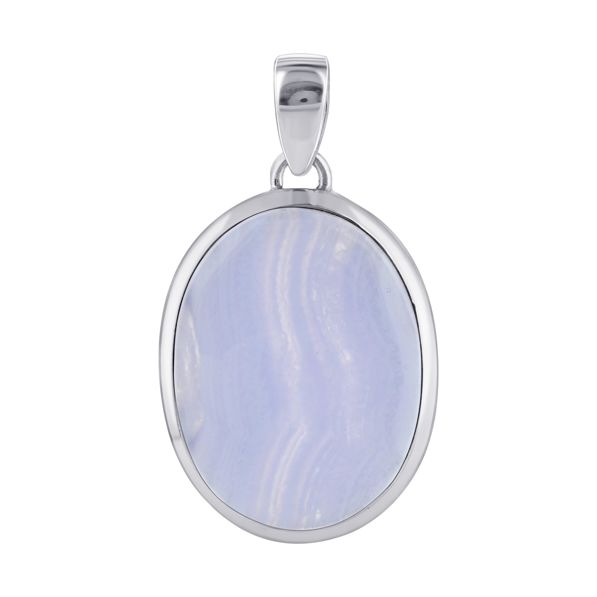 Natural Blue Lace Agate Oval Pendant in Sterling Silver Healing Crystal Jewelry for Meditation & Energy - GP325