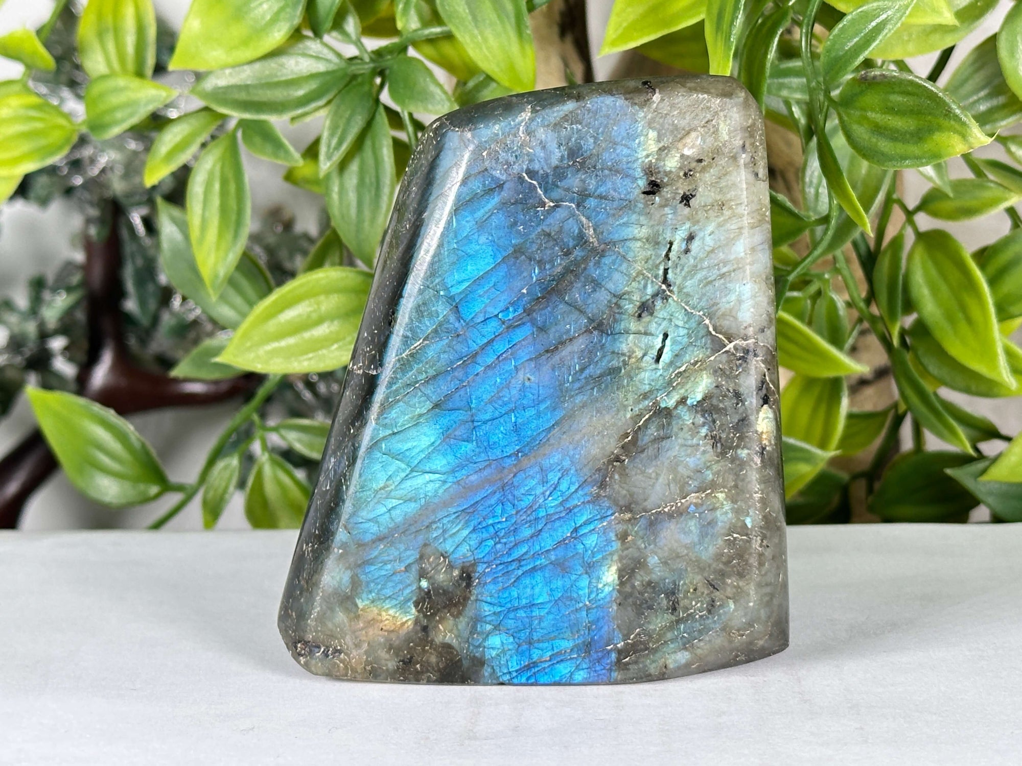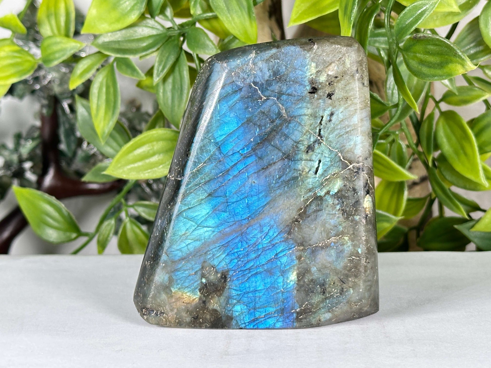• description_tag : Discover this Madagascan Labradorite freeform stone, polished for display. Features stunning iridescent colors. Perfect for collectors and decor. Gem Avenue in Charlotte.