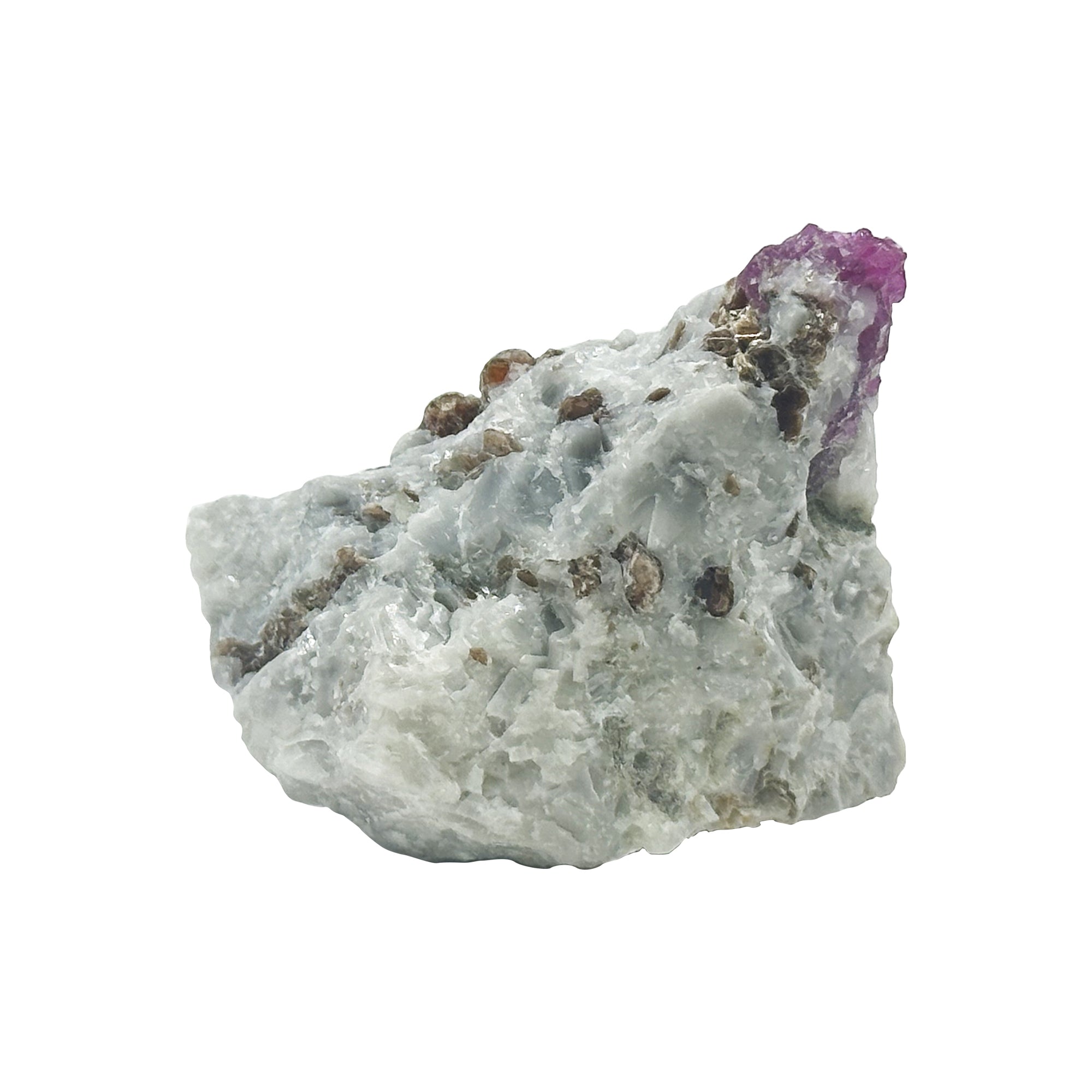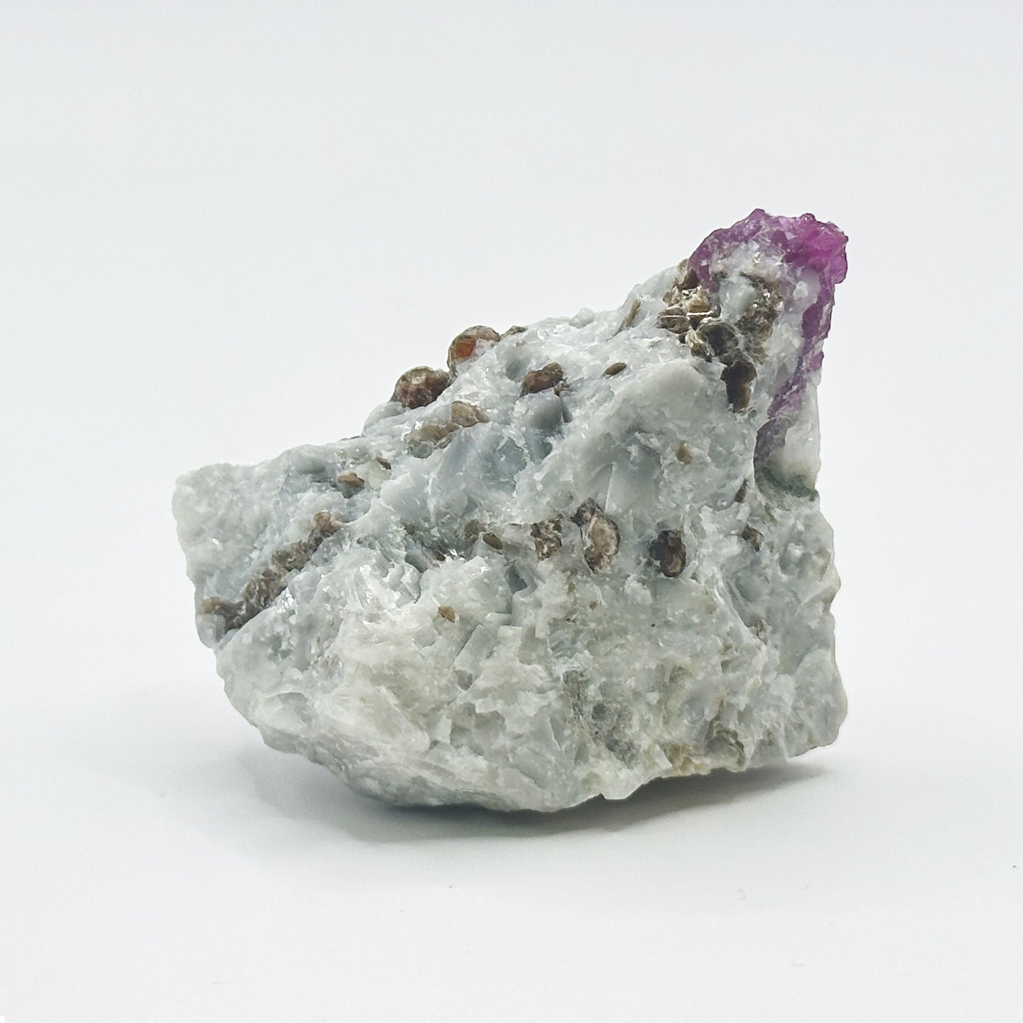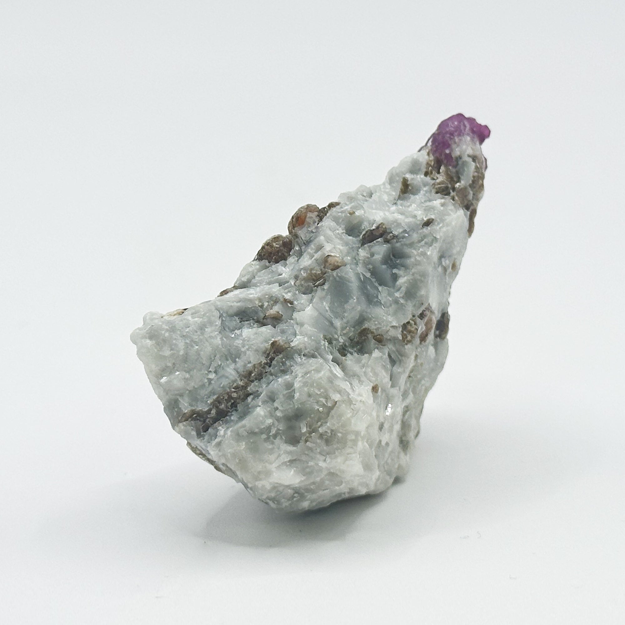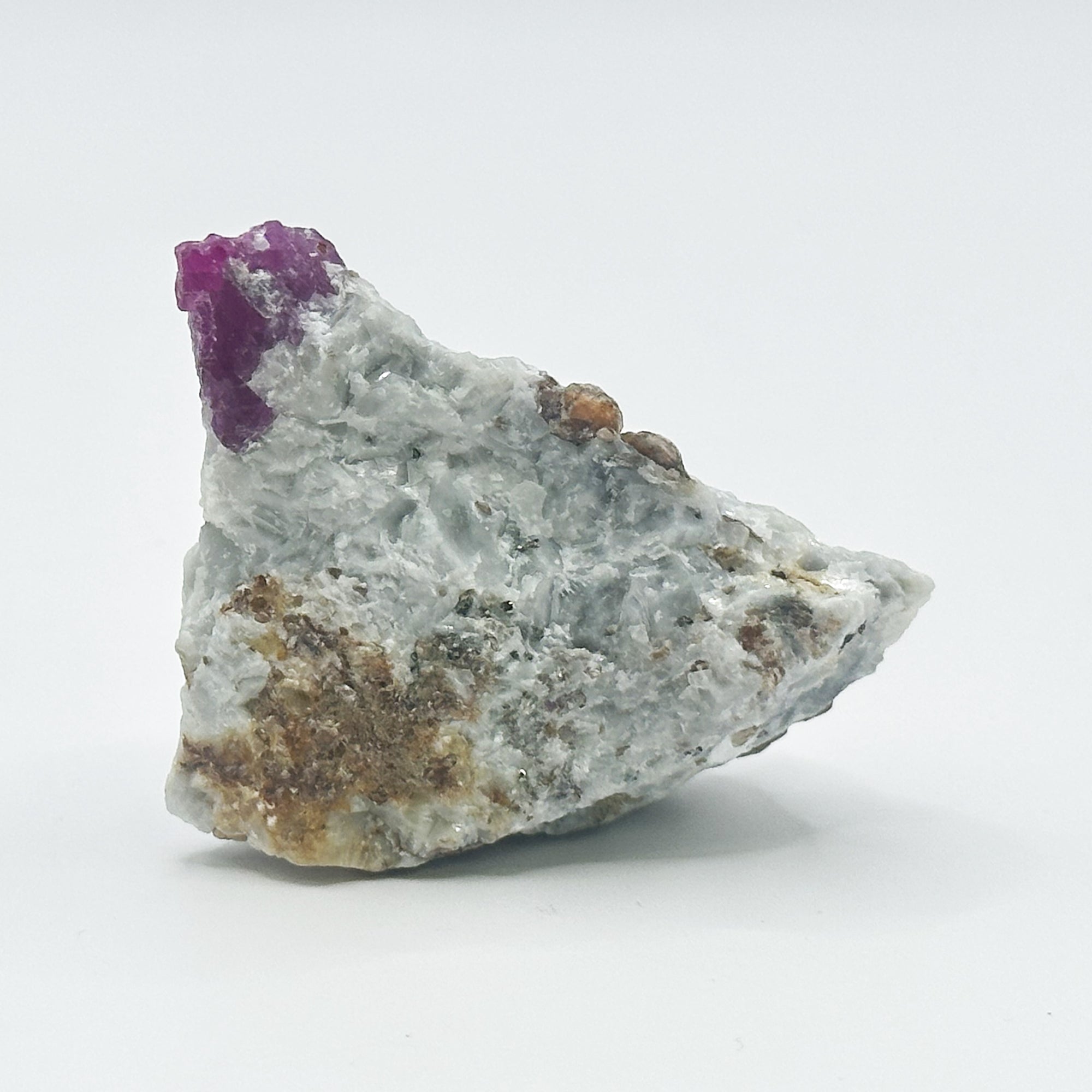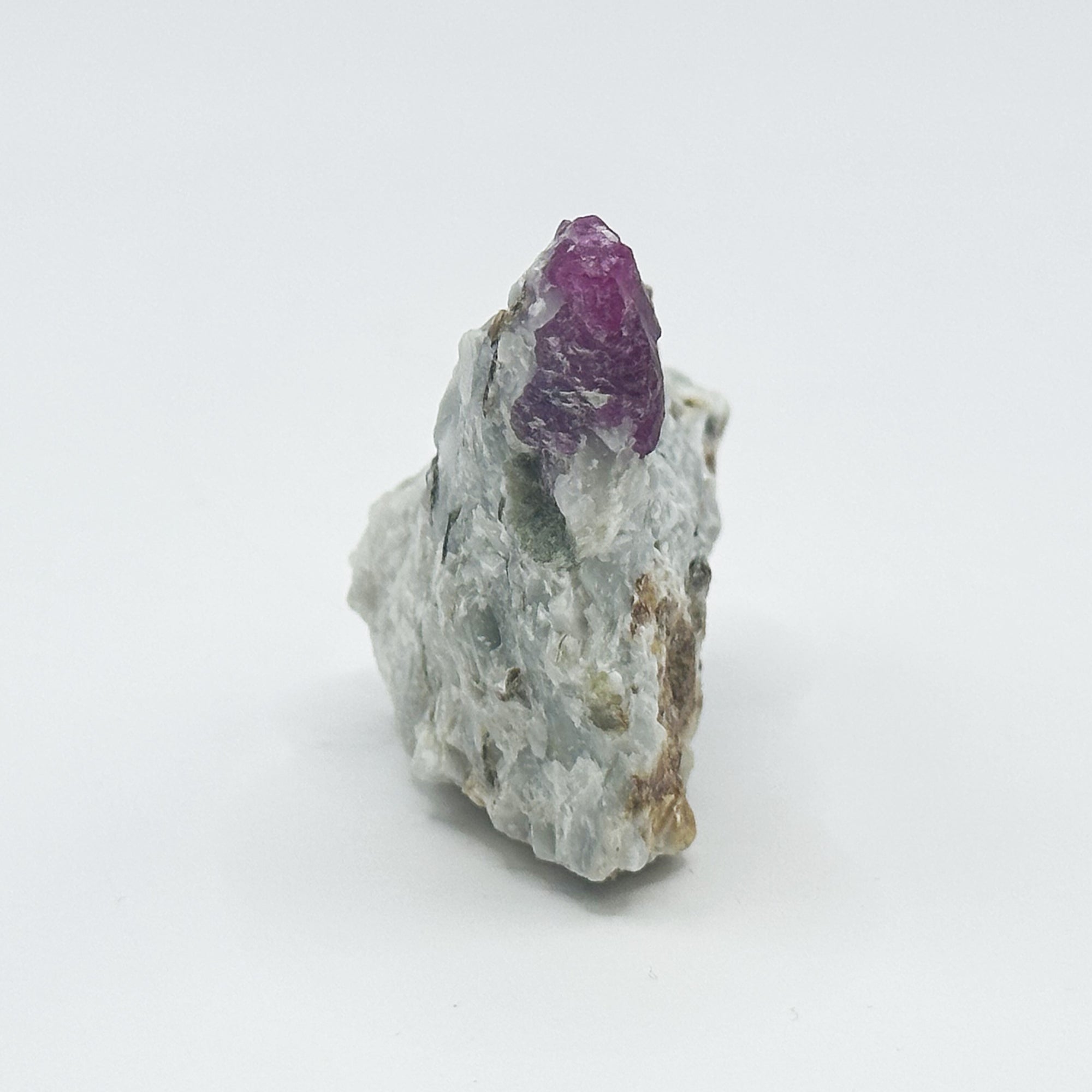 This natural Ruby specimen from Pakistan showcases deep red to pinkish red hues with a raw, unpolished charm that highlights its natural formation. Part of the corundum family and rubies are known for their durability and vibrant color. This piece contains an approximate height of 1.5” with an approximate weight of 1.5oz, making it a perfect addition to any home or collection!