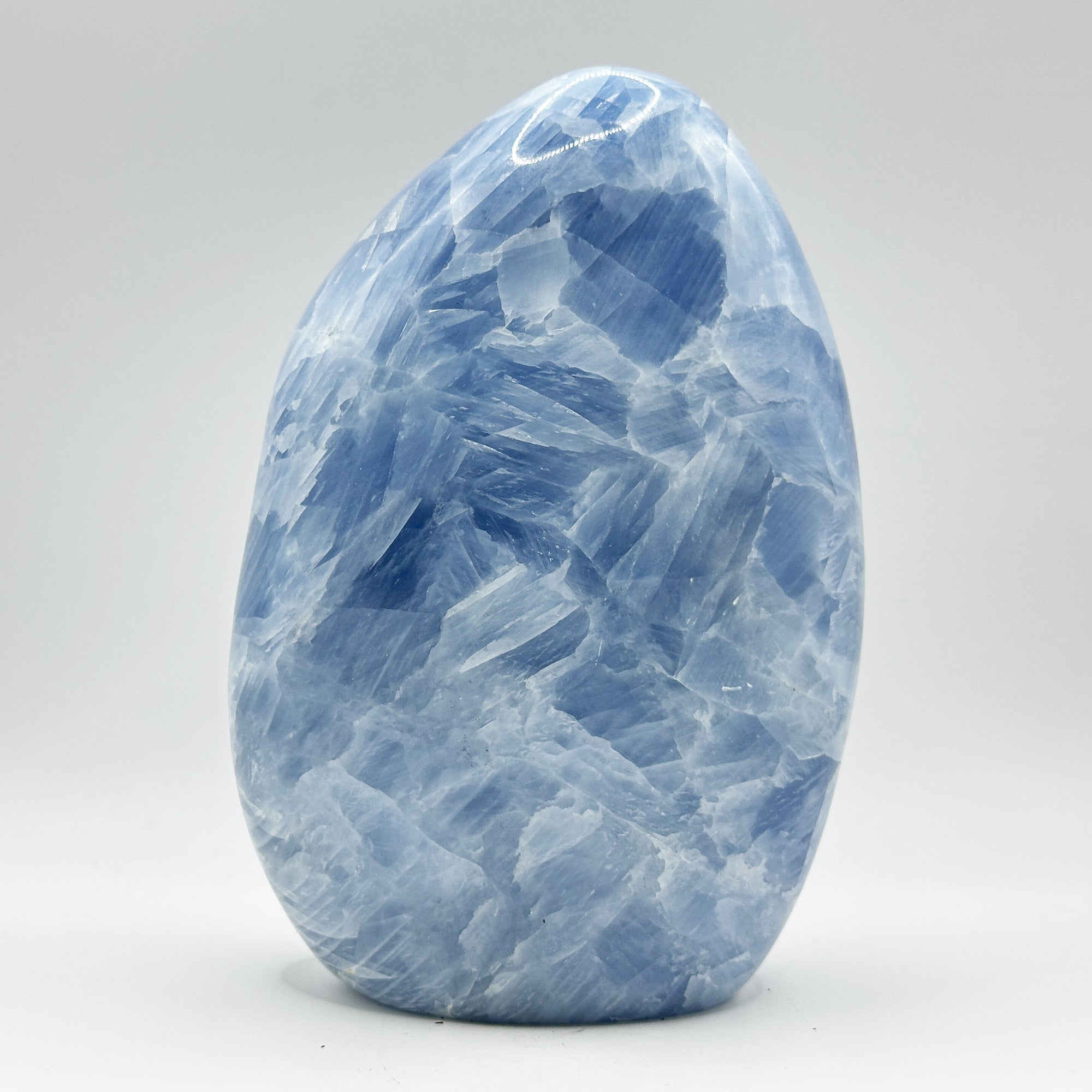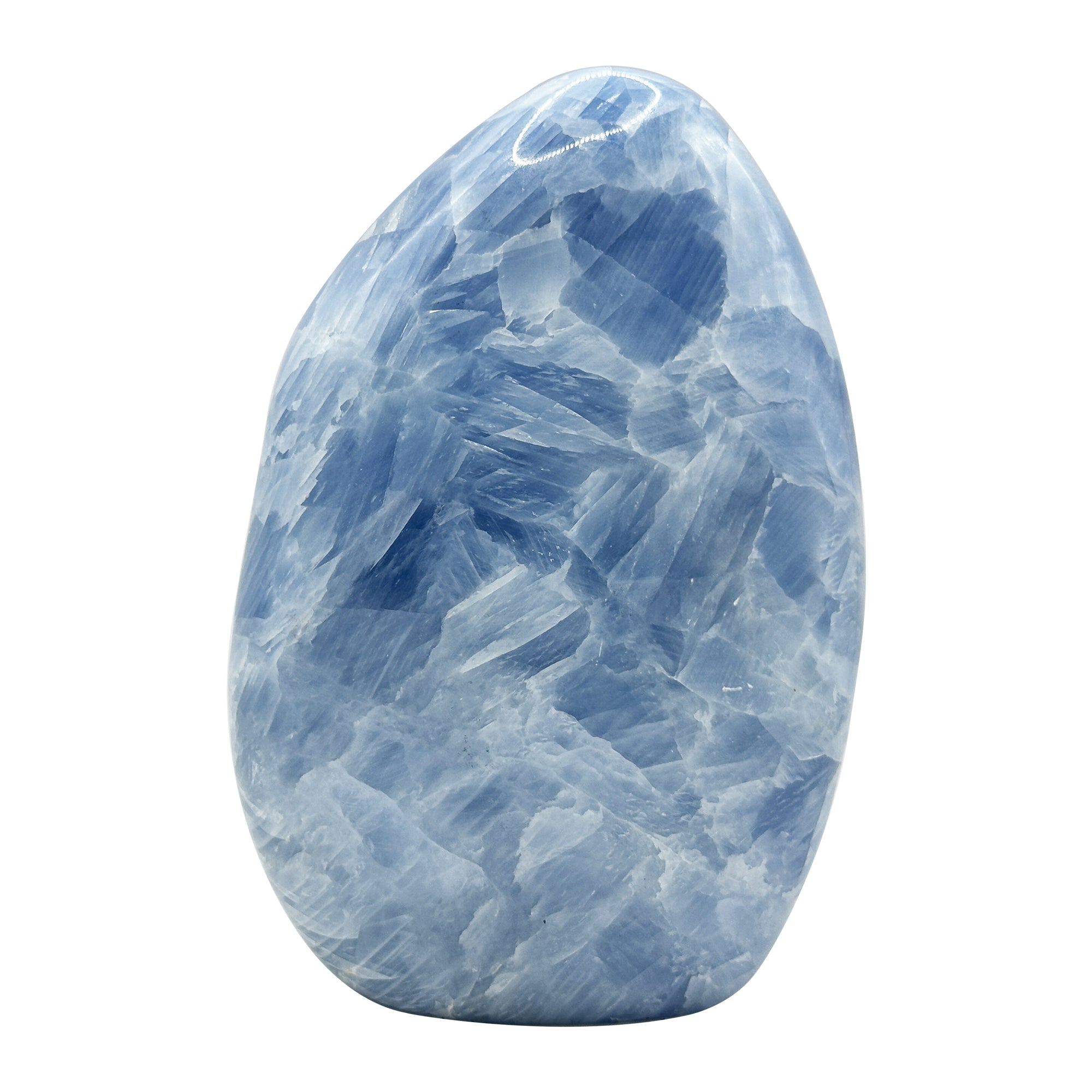 This Celestite Crystal is renowned for its peaceful and calming energy. It is believed to help in spiritual growth, improving communication skills, and fostering a sense of tranquility. Whether you're seeking to amplify your positive intentions, or simply wish to introduce a unique and aesthetic addition to your space, this Natural Self-Standing Polished Blue Celestite Freeform Crystal from Madagascar is an ideal choice.