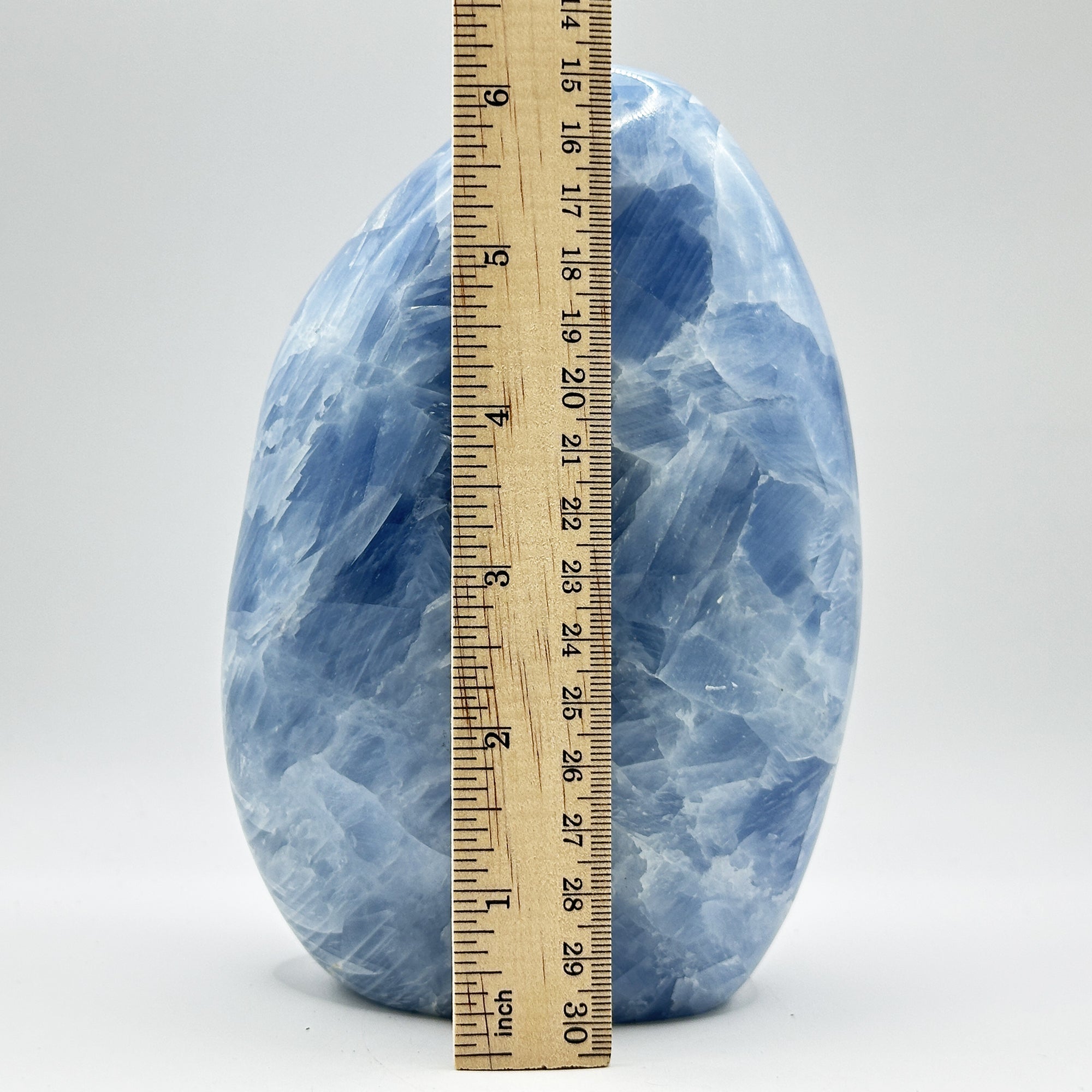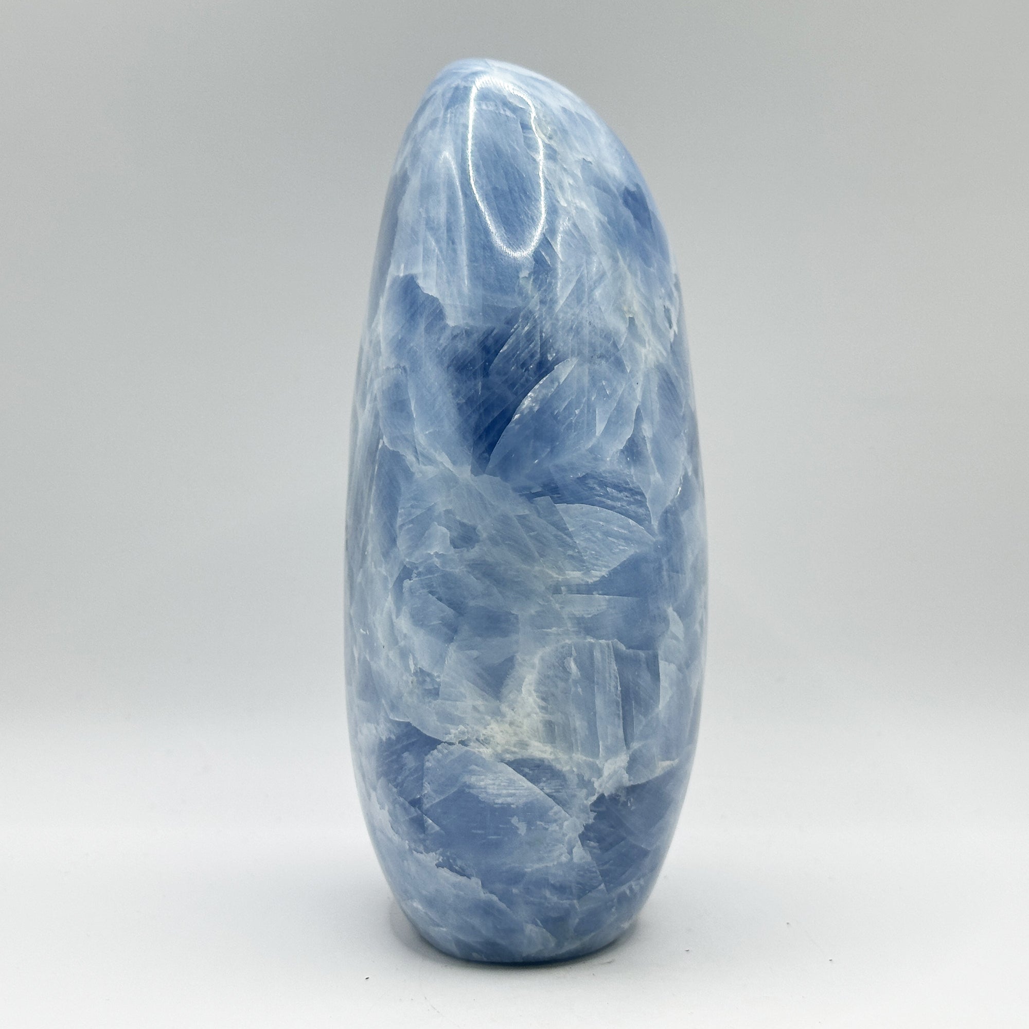 Experience the calming energy of this stunning 7-inch Celestite Crystal from Madagascar. This freeform crystal is polished to a mirror finish, showcasing its beautiful blue shades. Measuring approximately 3.25 inches wide, 2 inches and standing 7 inches tall, this crystal weighs approximately 4.16 lbs. The natural shape and size make it a perfect addition to your home decor or meditation space.