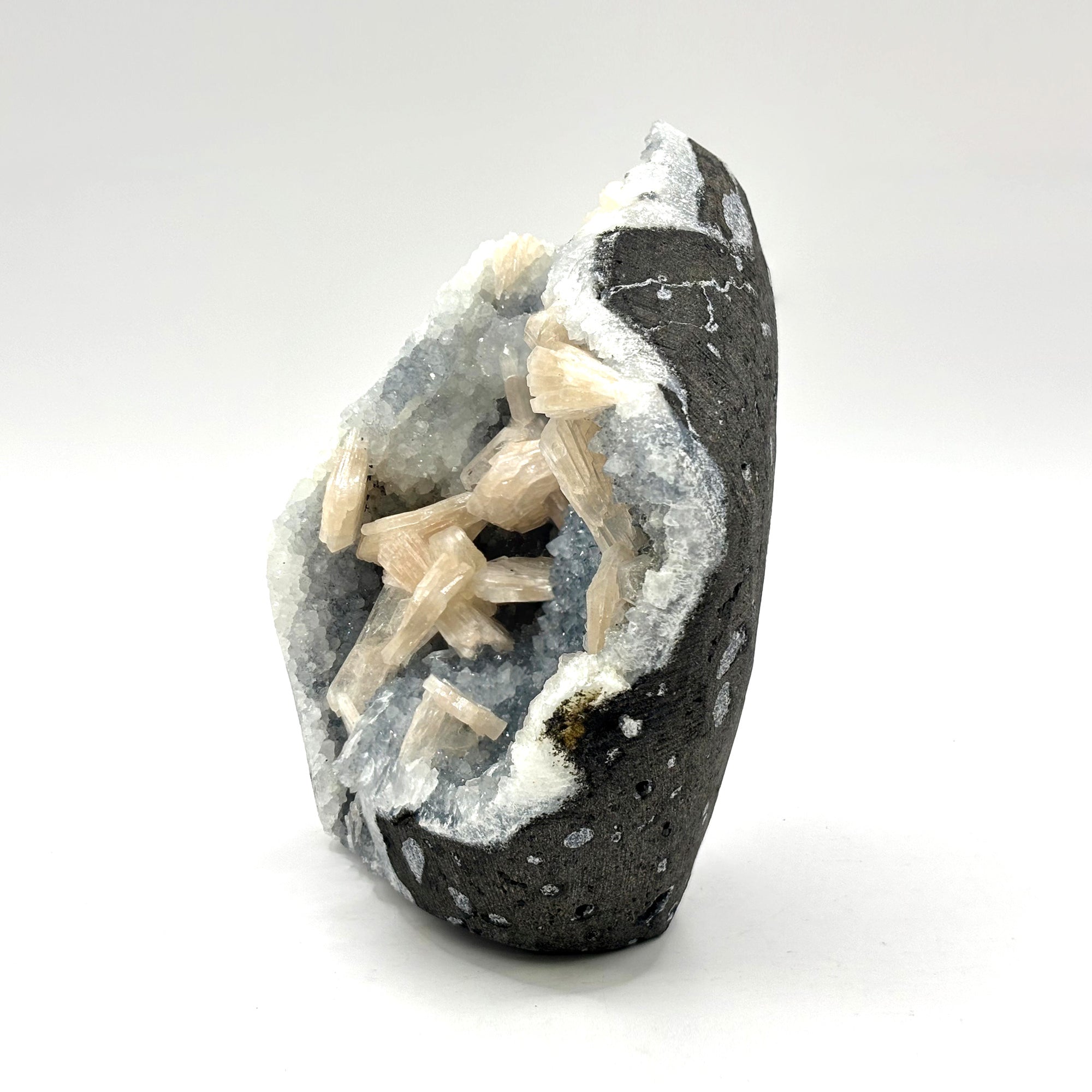 Perfect for meditation, energy work, or as a captivating addition to your home decor, this Chalcedony specimen will serve as a beautiful conversation starter and a serene focus point for your space. Ideal for collectors, mineral enthusiasts, or those interested in spiritual practices, this Chalcedony crystal promises to be a cherished addition to your collection and a valuable ally in your journey.
