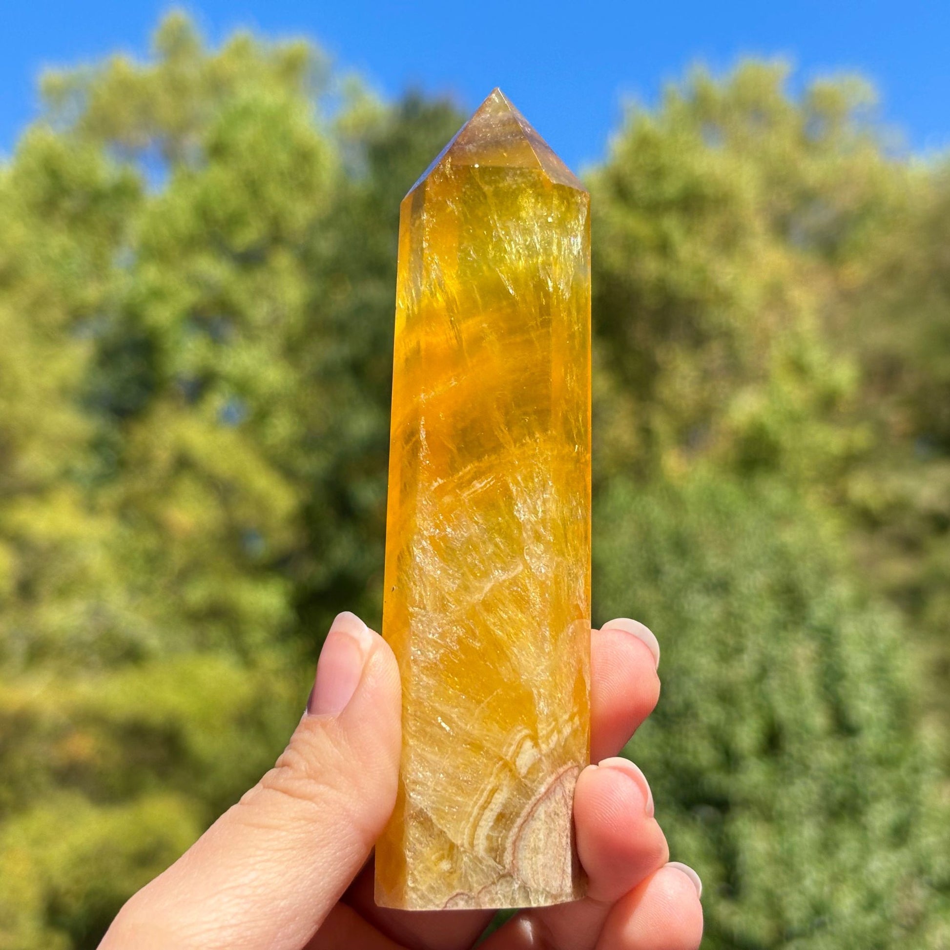Natural Yellow Fluorite Crystal Obelisk Tower Point for Energy Healing, Focus, Meditation & Elegant Home or Office Decor - RPO518