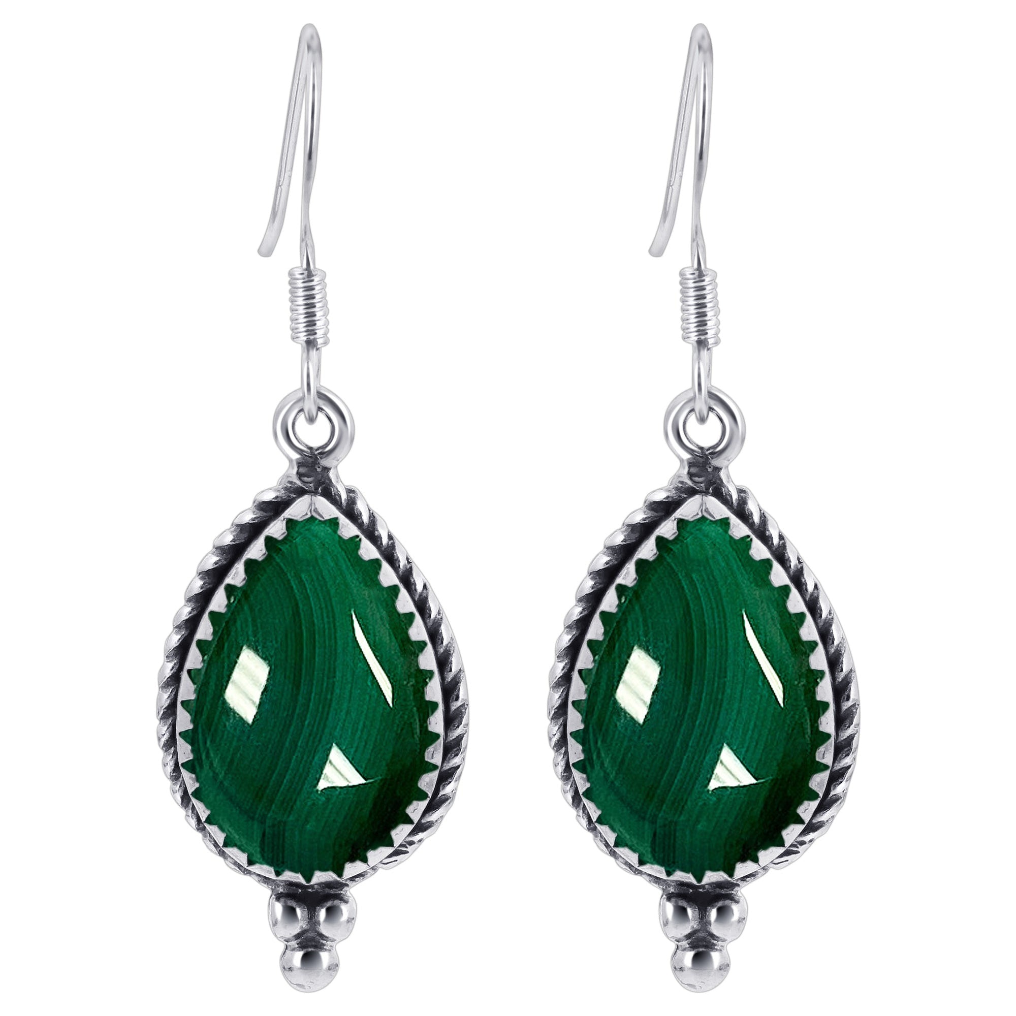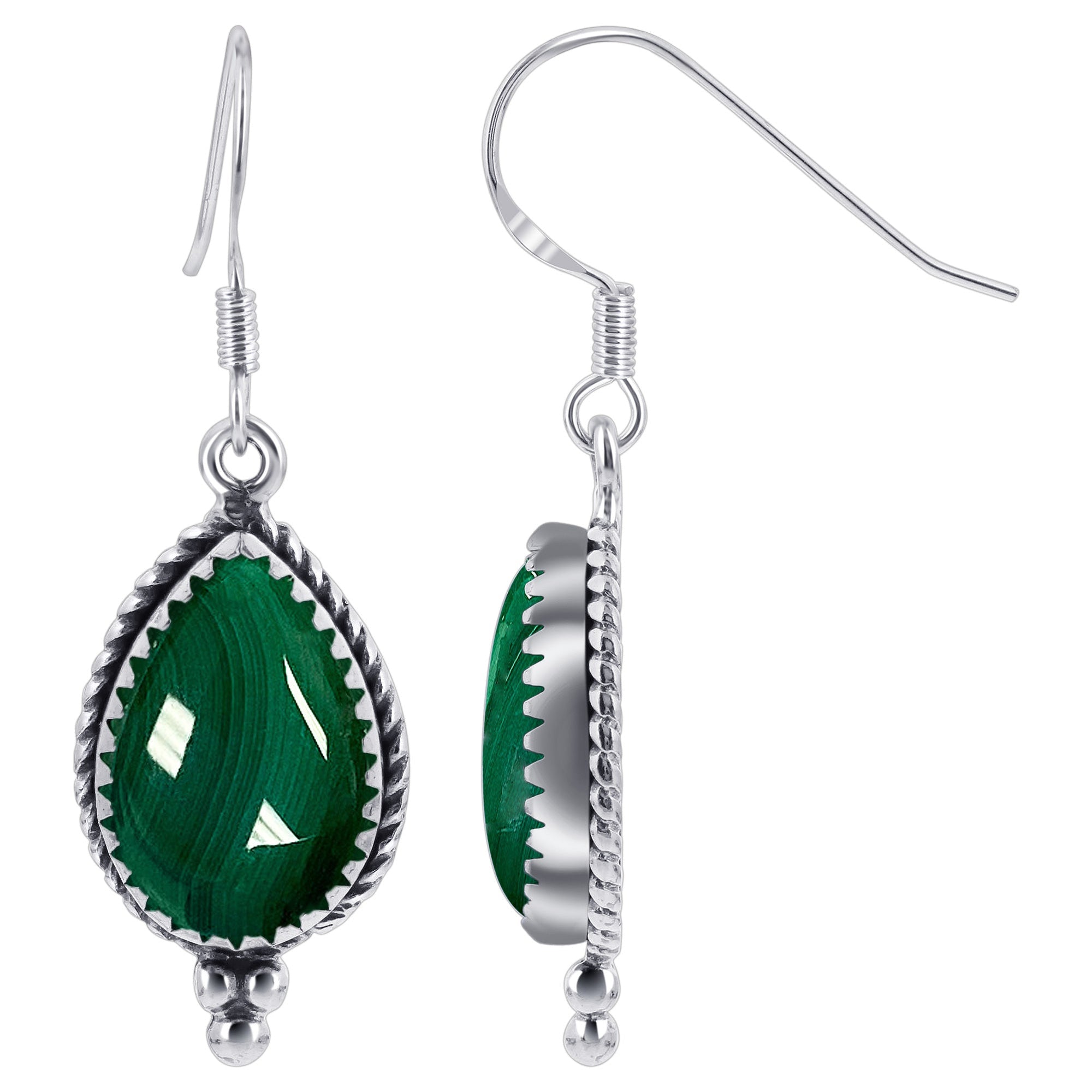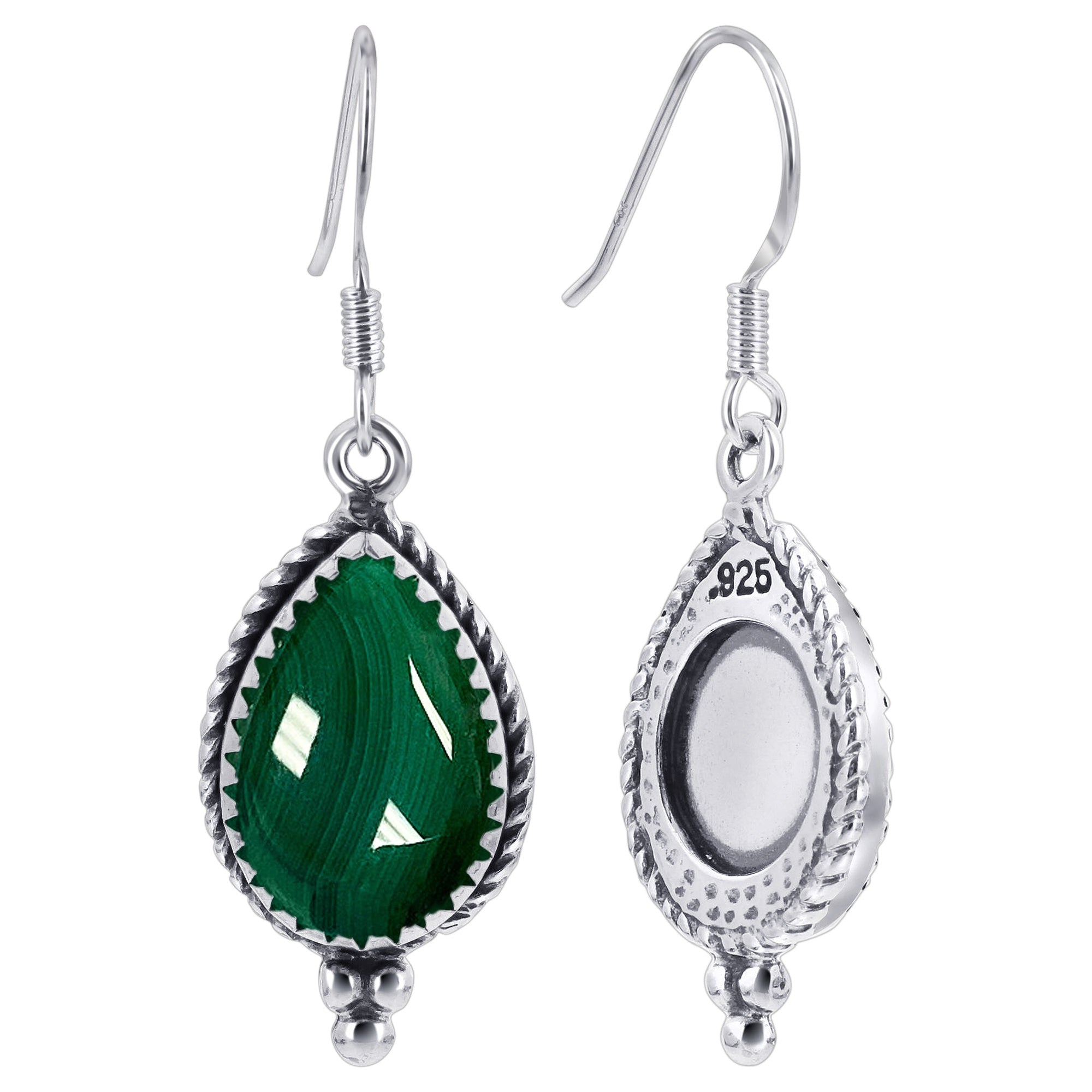 Boost your formal attire with the pear shape simulated green malachite drop earrings. Made with 925 sterling silver, it adds a touch of elegance to your outfit. French ear wire findings give the earrings a length of 1.5 inches for that desired luminous shine.