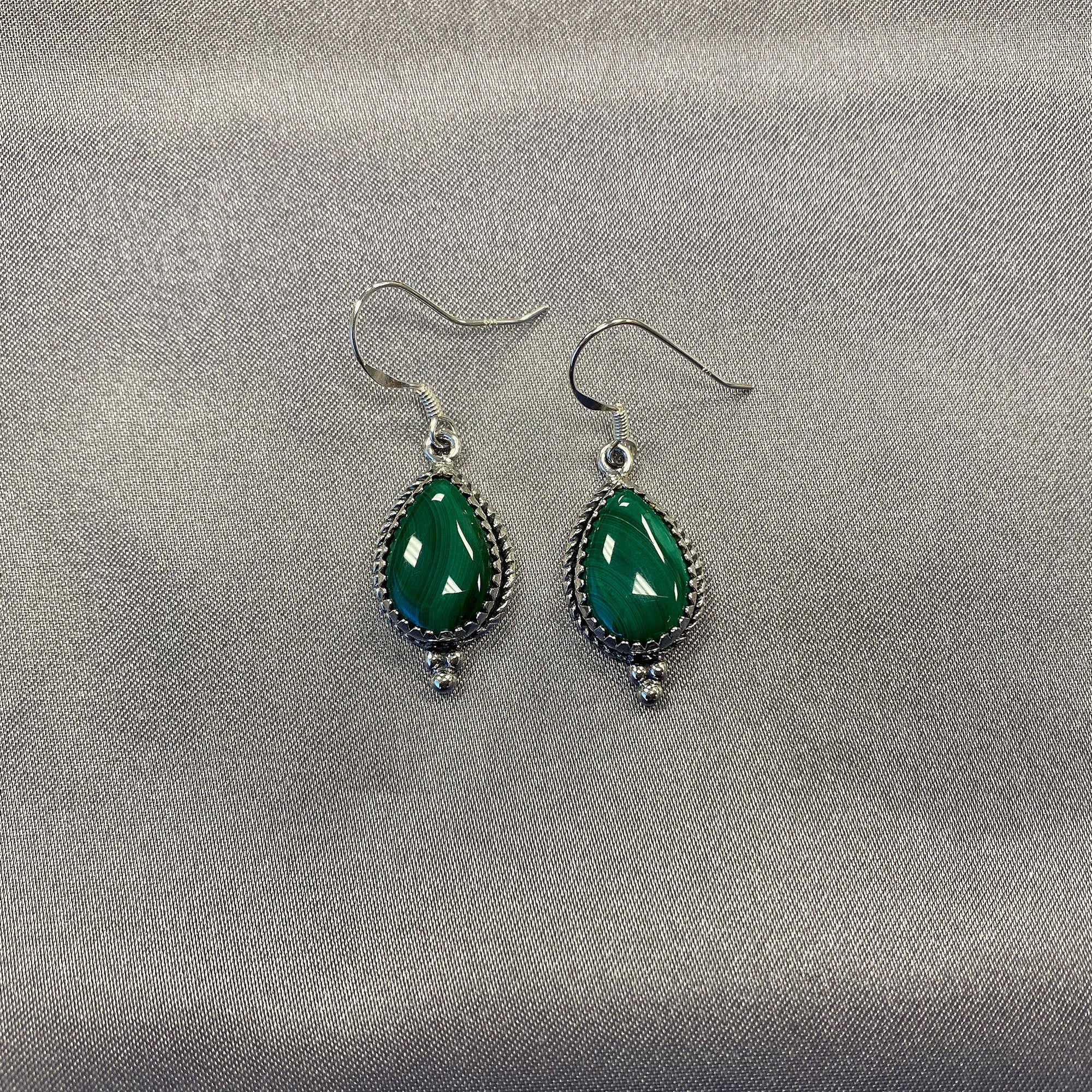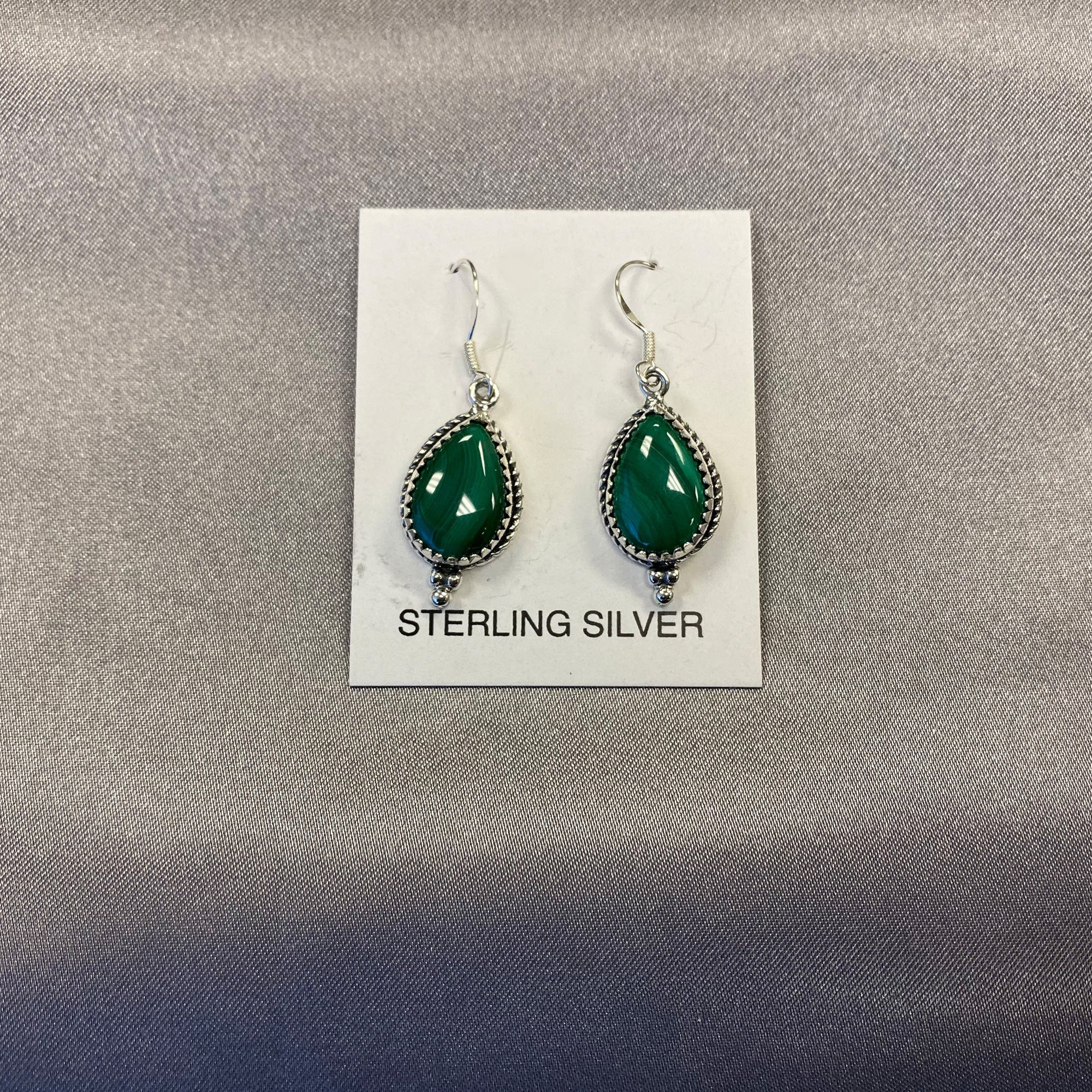 - title_tag : Simulated Green Malachite Drop Earrings with .925 Sterling Silver - GE231