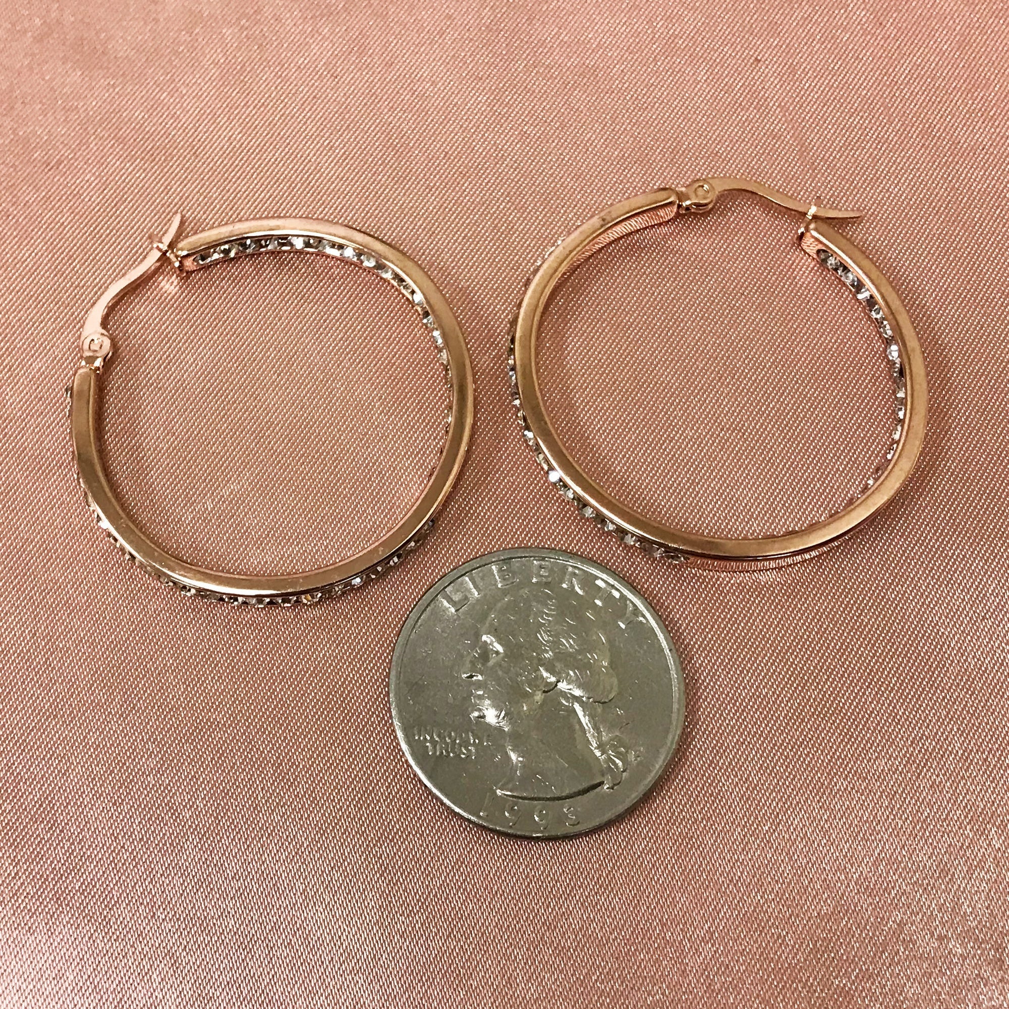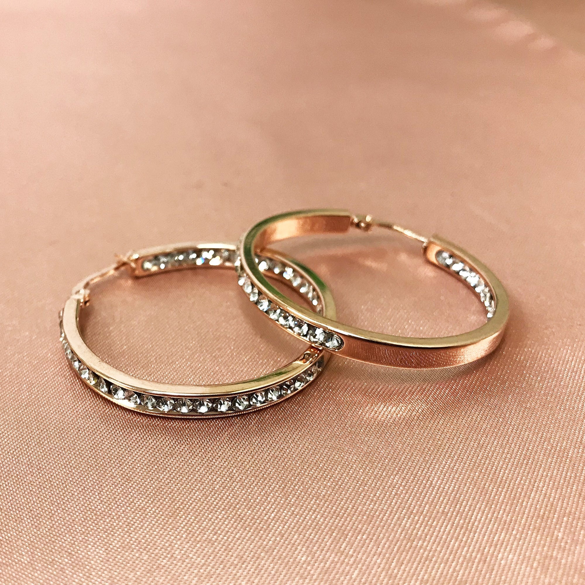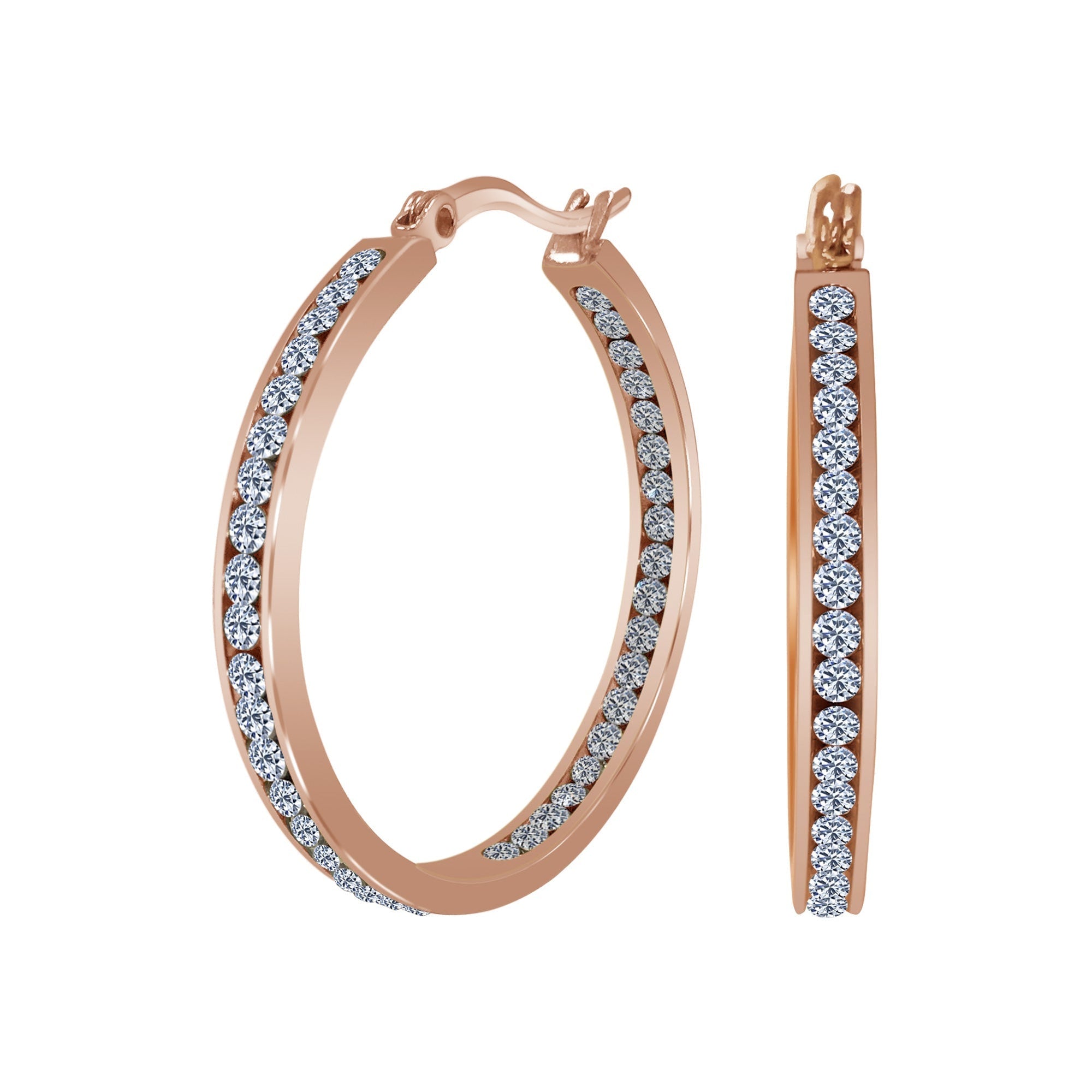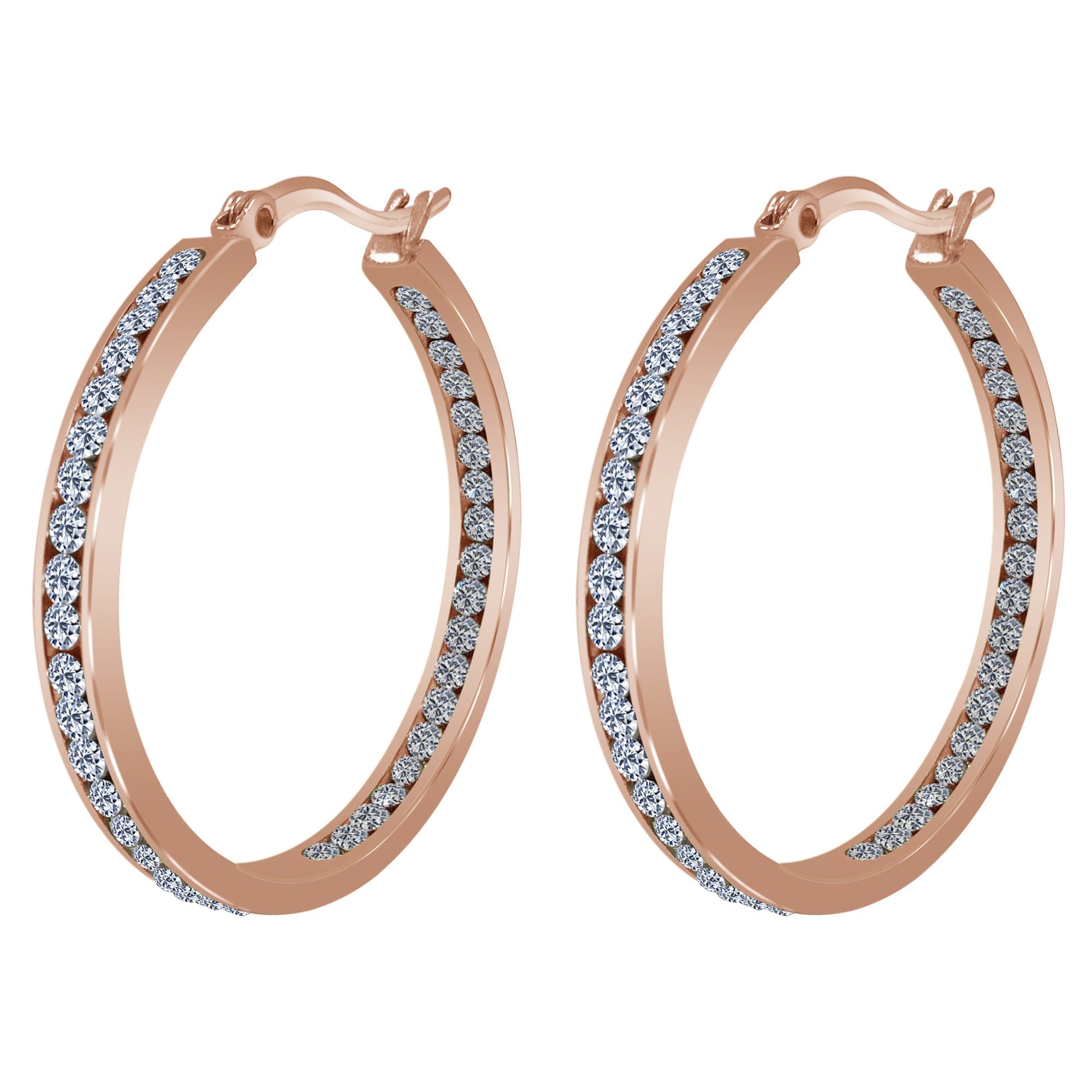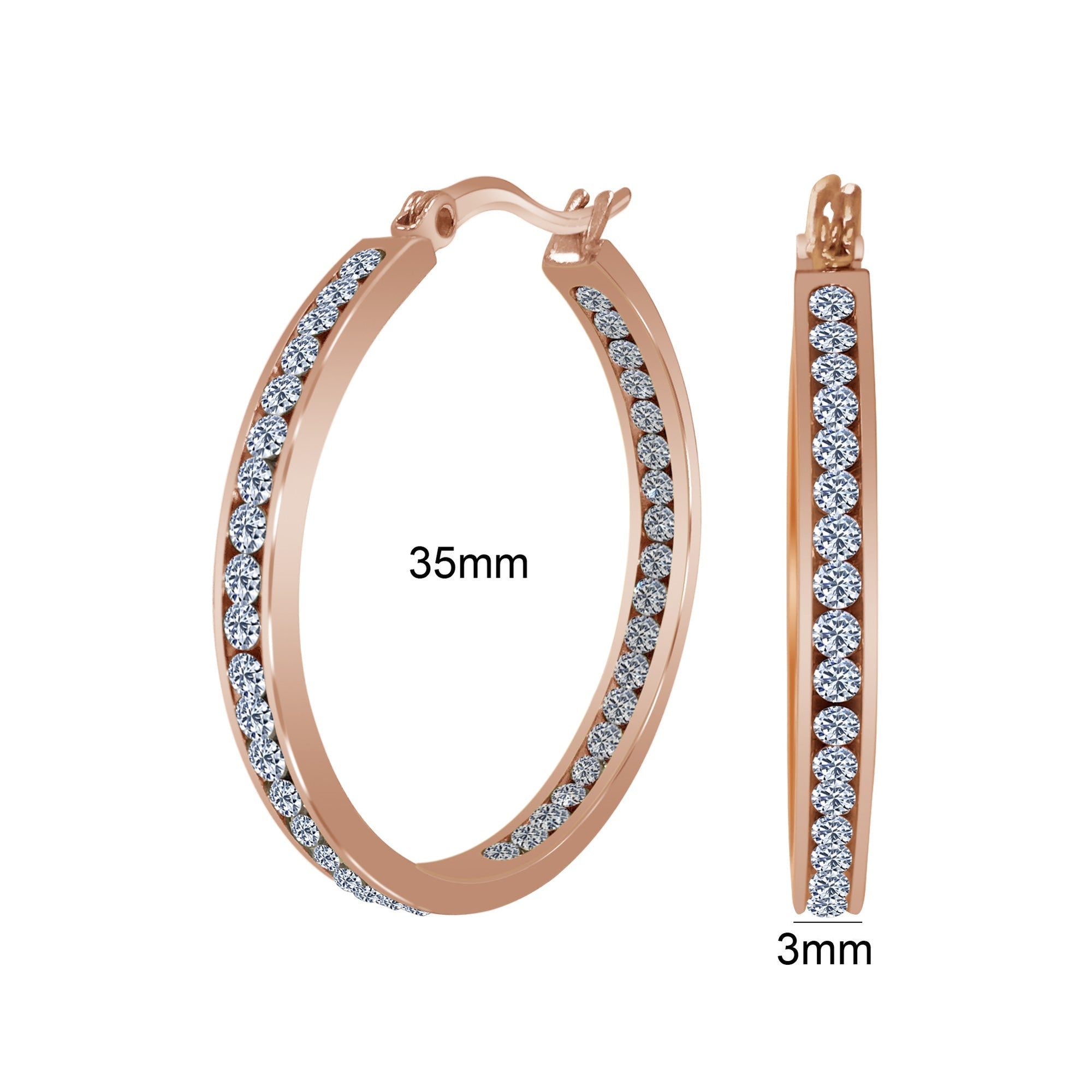 - title_tag : Rose Gold Plated Stainless Steel CZ 35mm Hoop Earrings - GE829