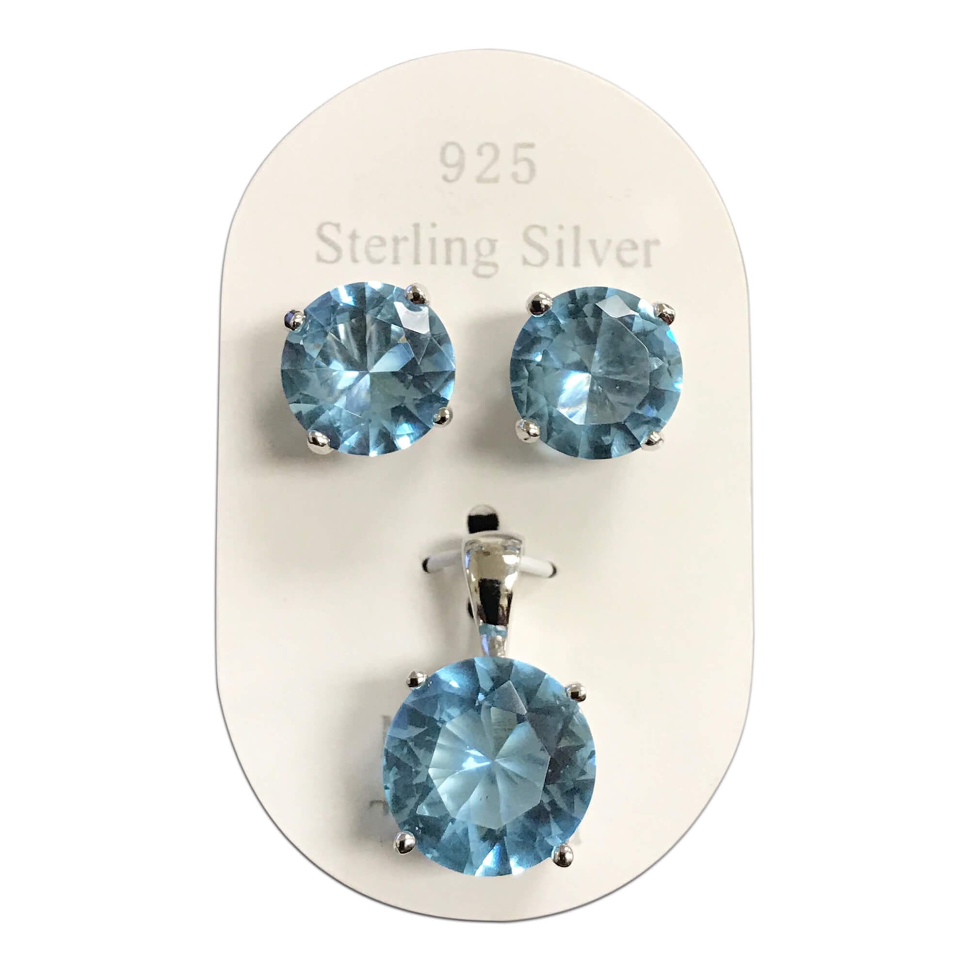 - title_tag : Simulated Aquamarine Sterling Silver Pendant Earrings Set - bder030