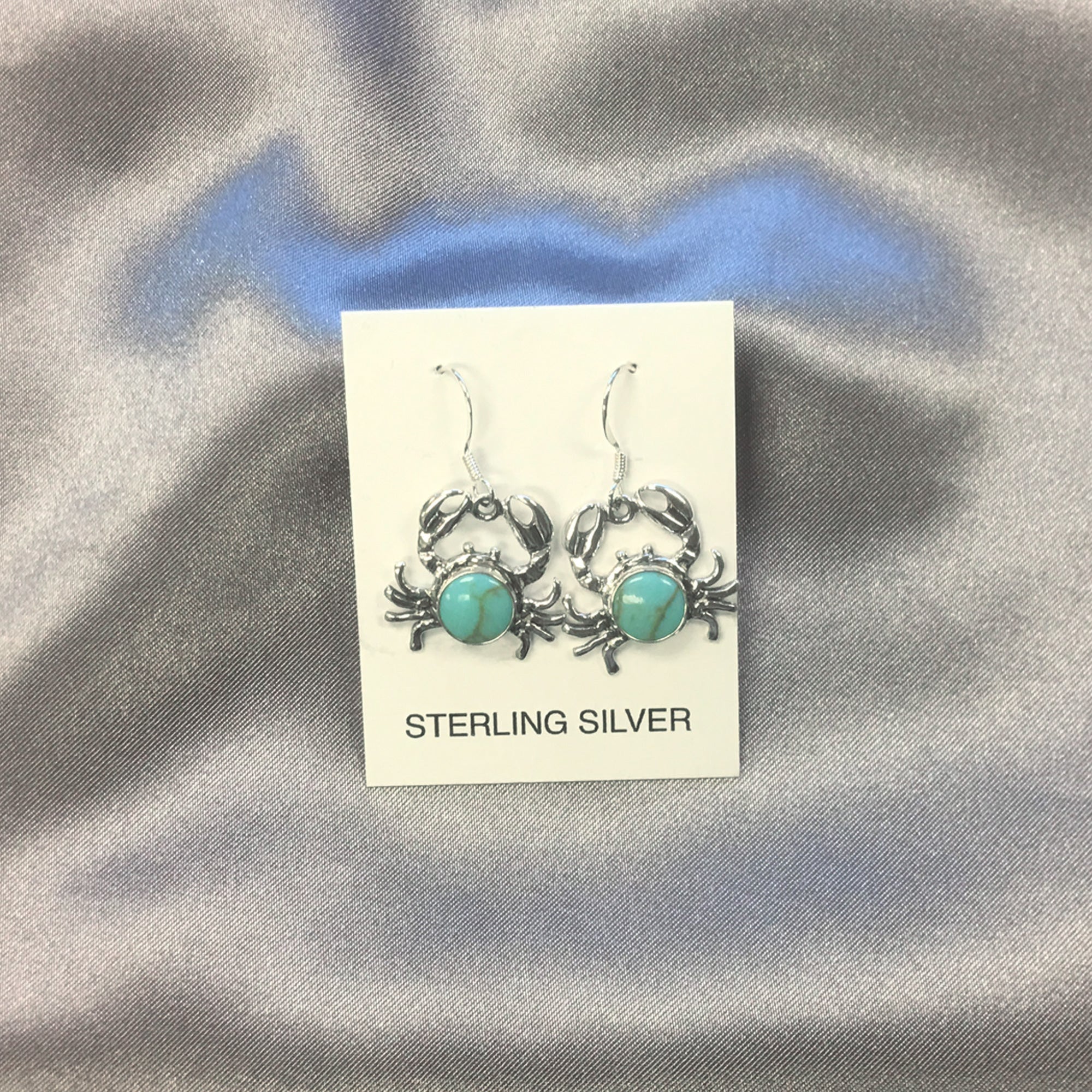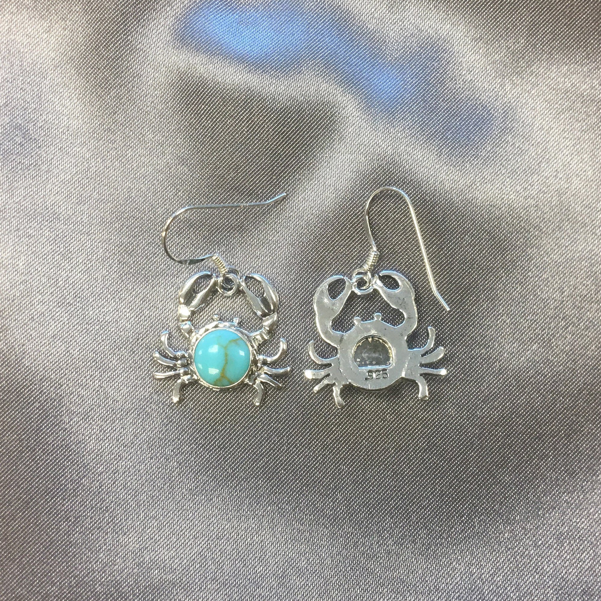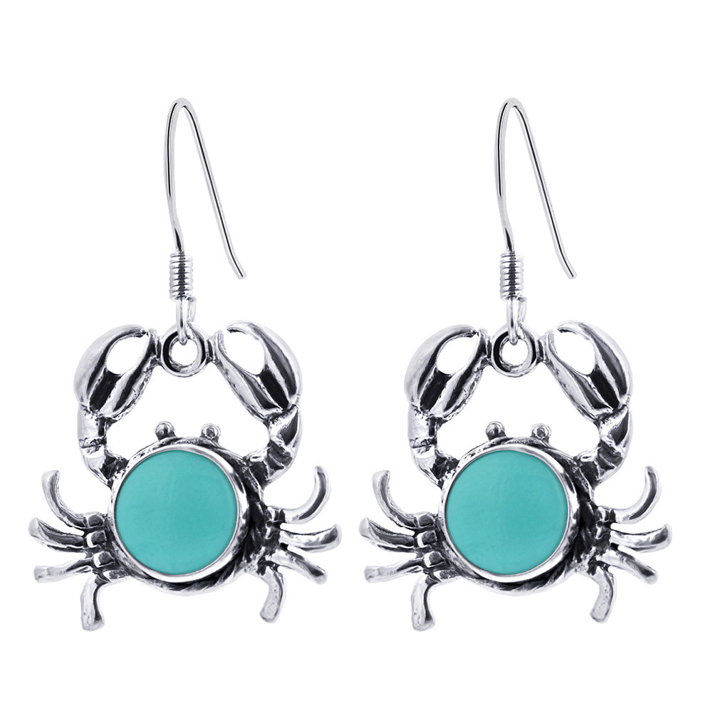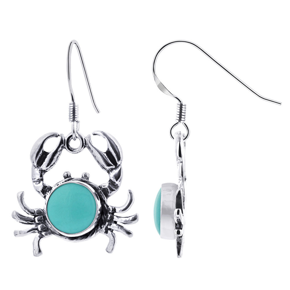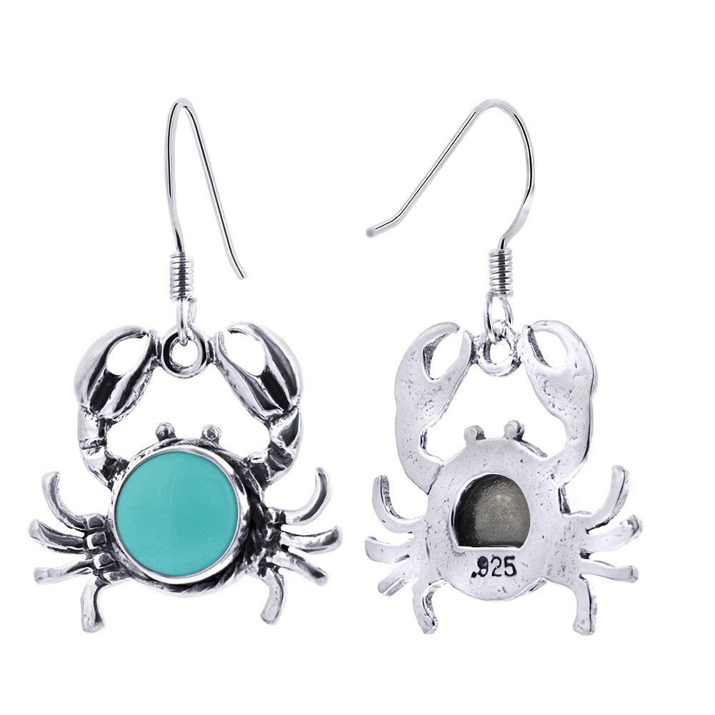 A beautiful addition to any jewelry collection, these round simulated turquoise Sea Life Crab Drop Earrings feature. 925 sterling silver and a lovely antiqued detail. With a total length of 1.33 inches, these earrings are perfect for both everyday wear and special occasions. Please note that the actual product may vary slightly from the picture due to lighting and monitor settings. Update your look with these stunning earrings today!