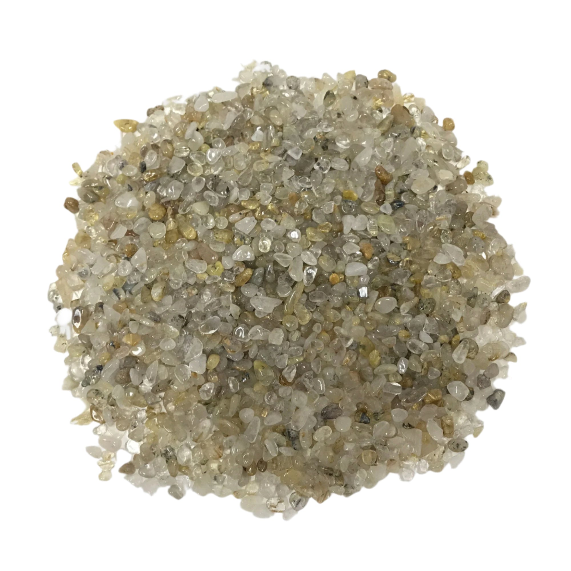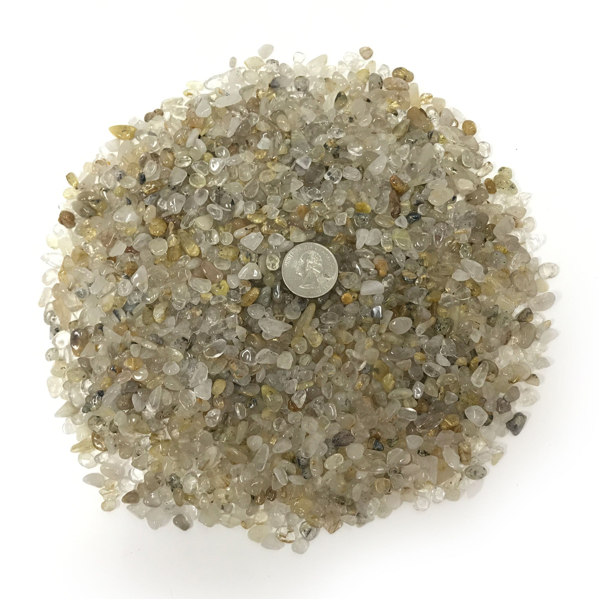 These rutilated quartz polished chips are approximately 0.16" x 0.4" (4mm to 10mm) in size and weigh 1 lb (460 grams). These chips are useful for jewelry making, home decoration, art design, stone collecting, etc.