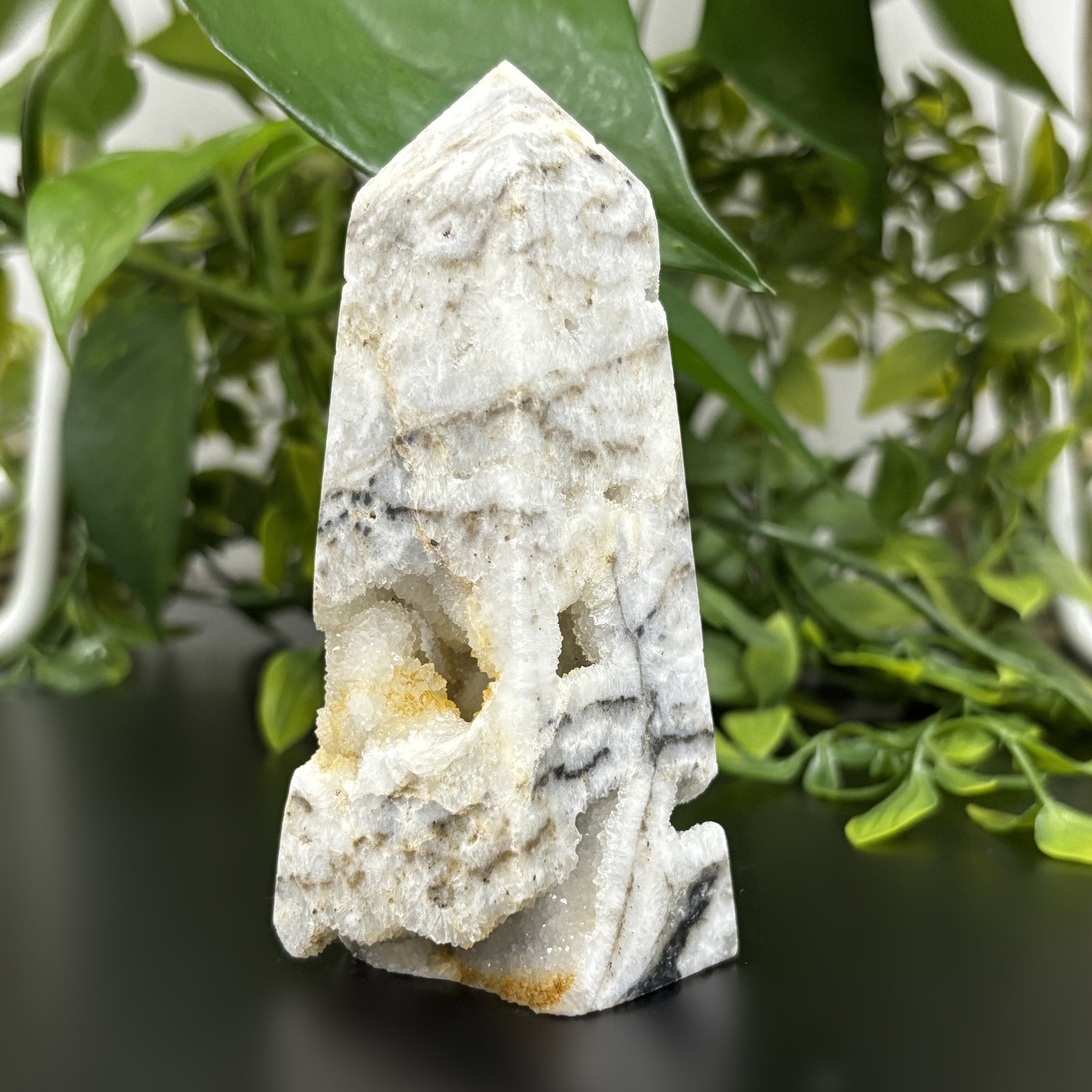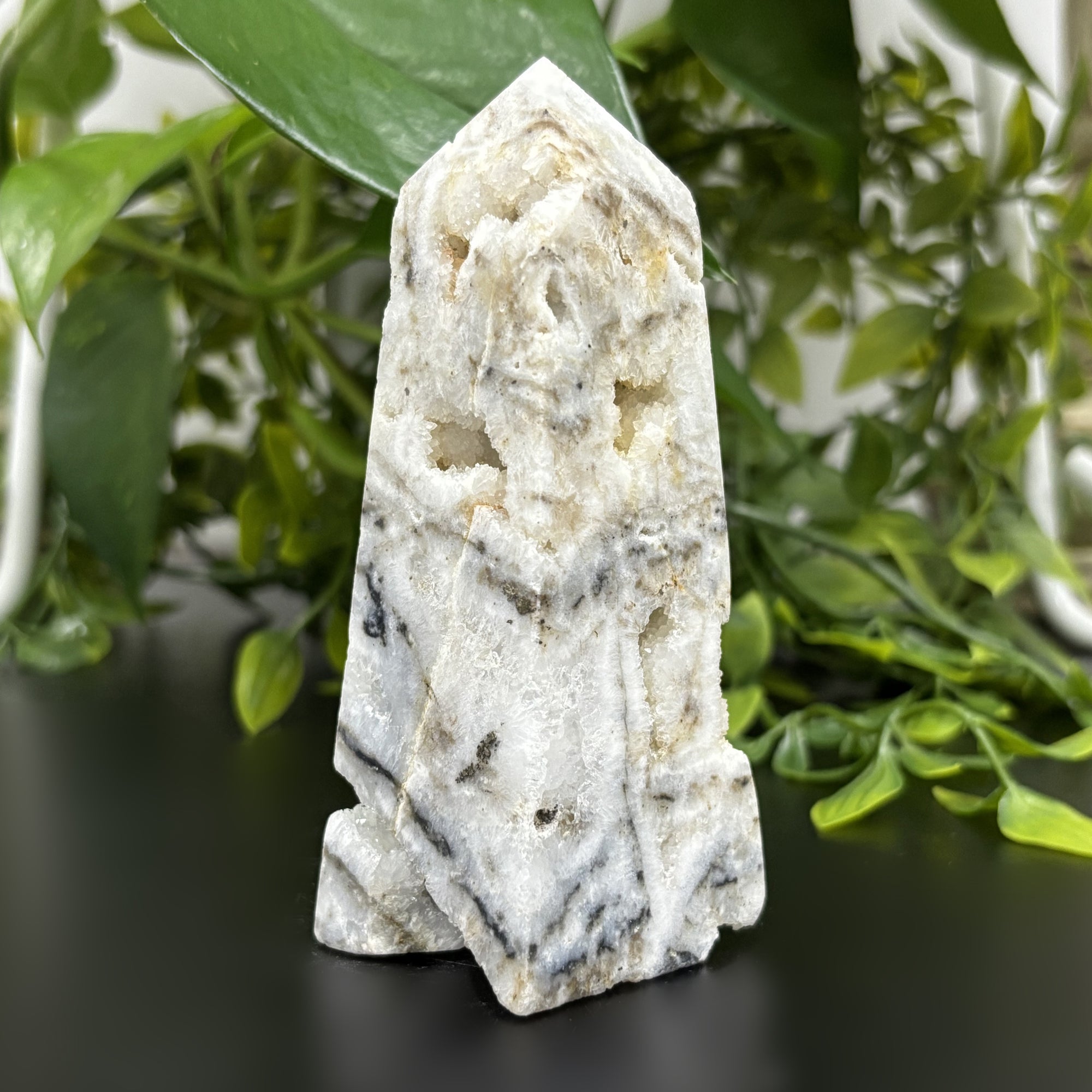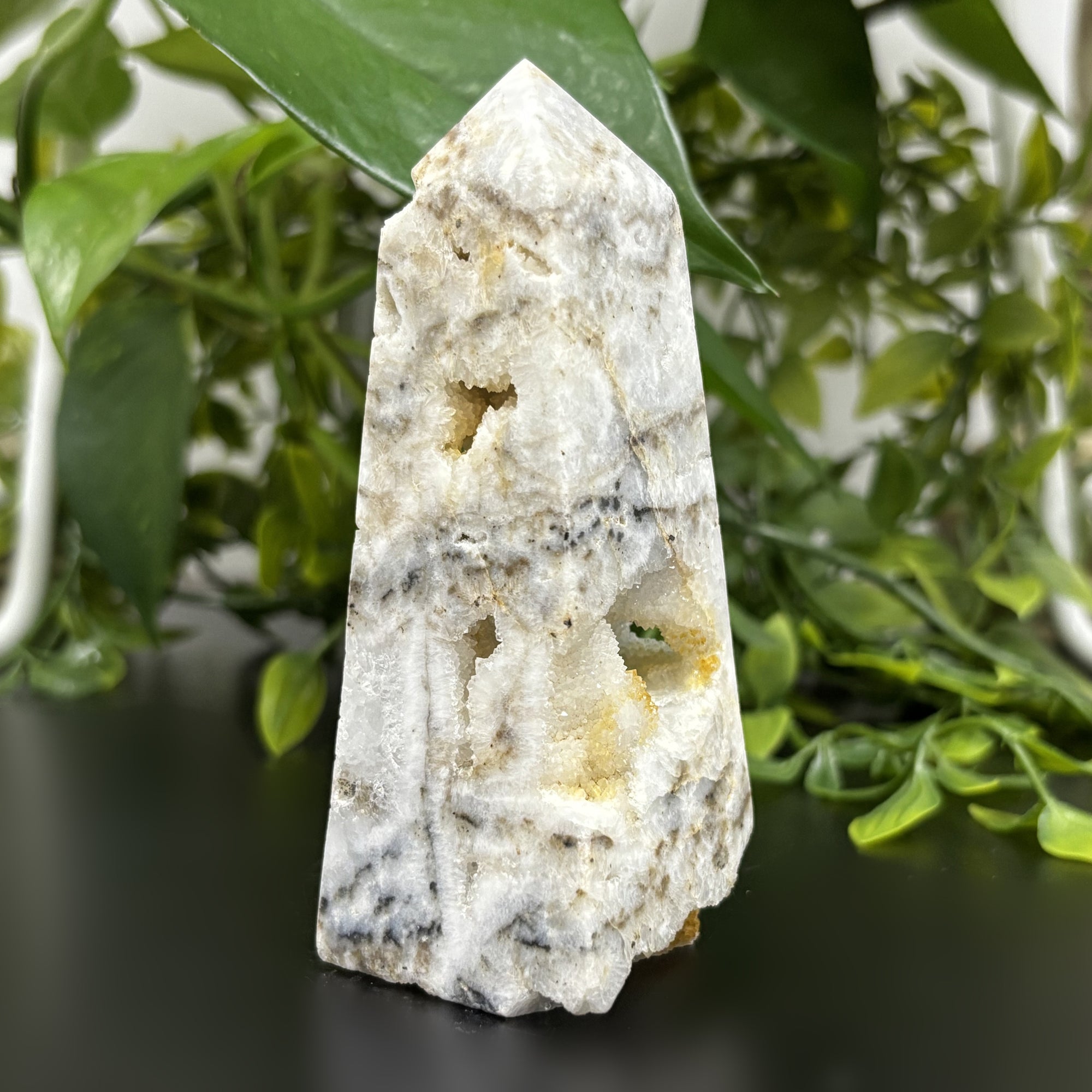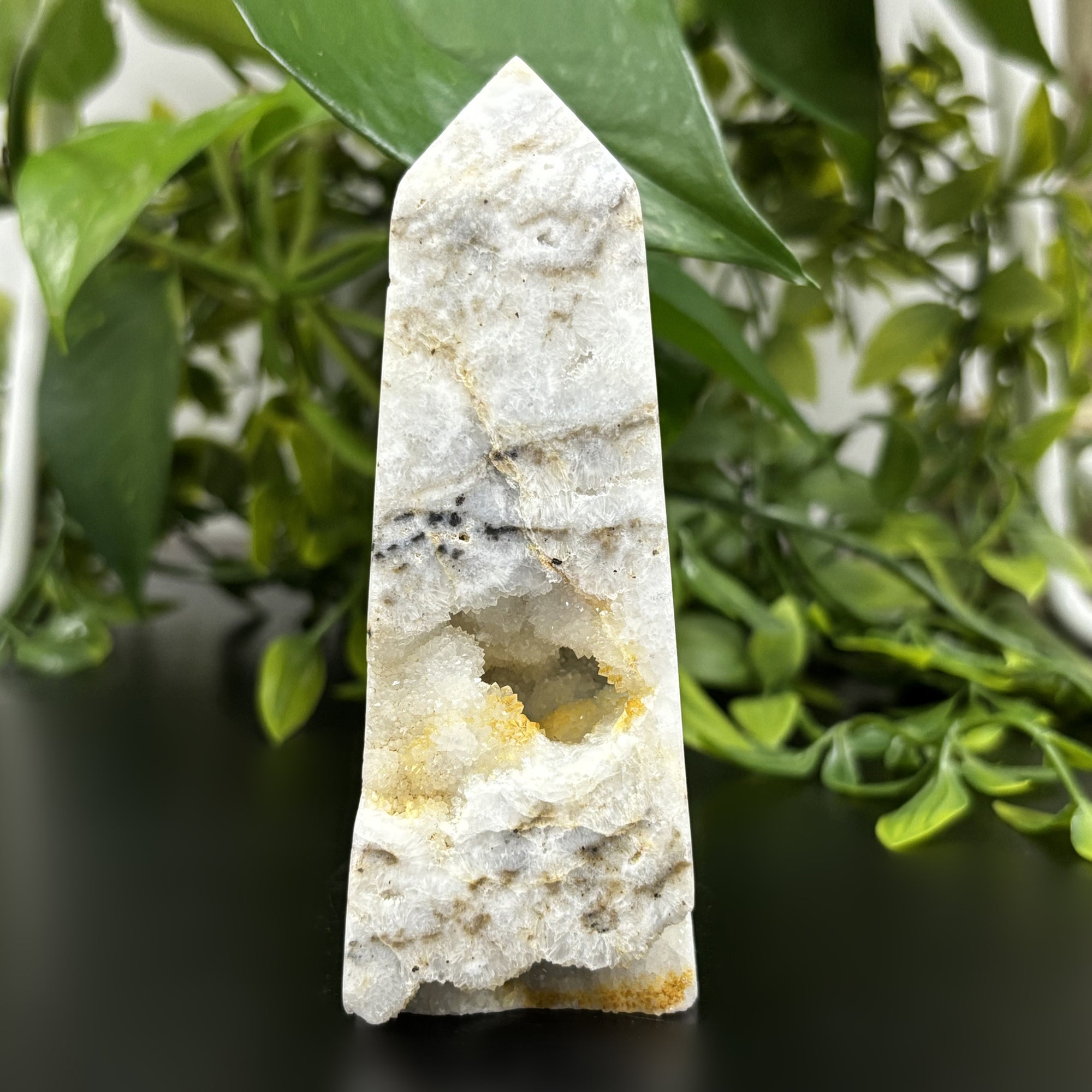 This Natural Sphalerite Crystal Gemstone Obelisk Tower Point brings a unique blend of energy, grounding, and focus to aid in spiritual growth. With its polished stone, this product offers a natural source of strength and balance to enhance your personal well-being.