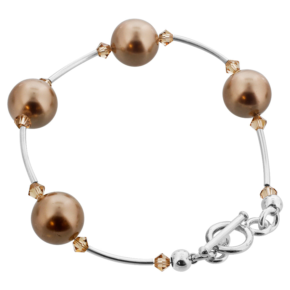 - title_tag : .925 Silver Bracelet with Simulated Pearl & Austrian Crystals - GBG063