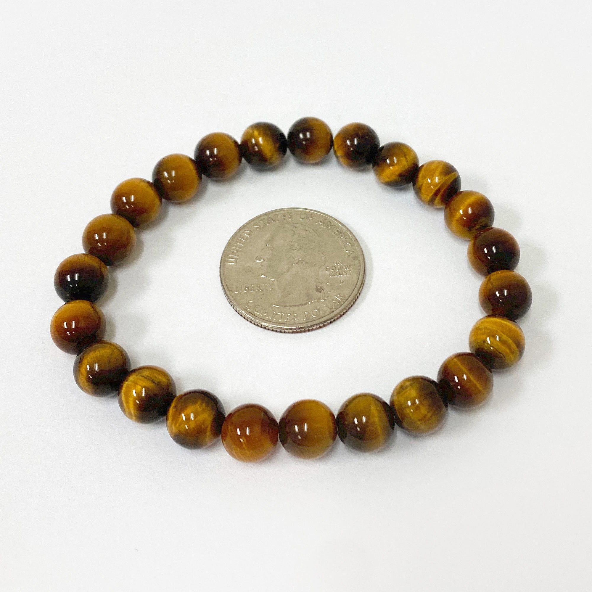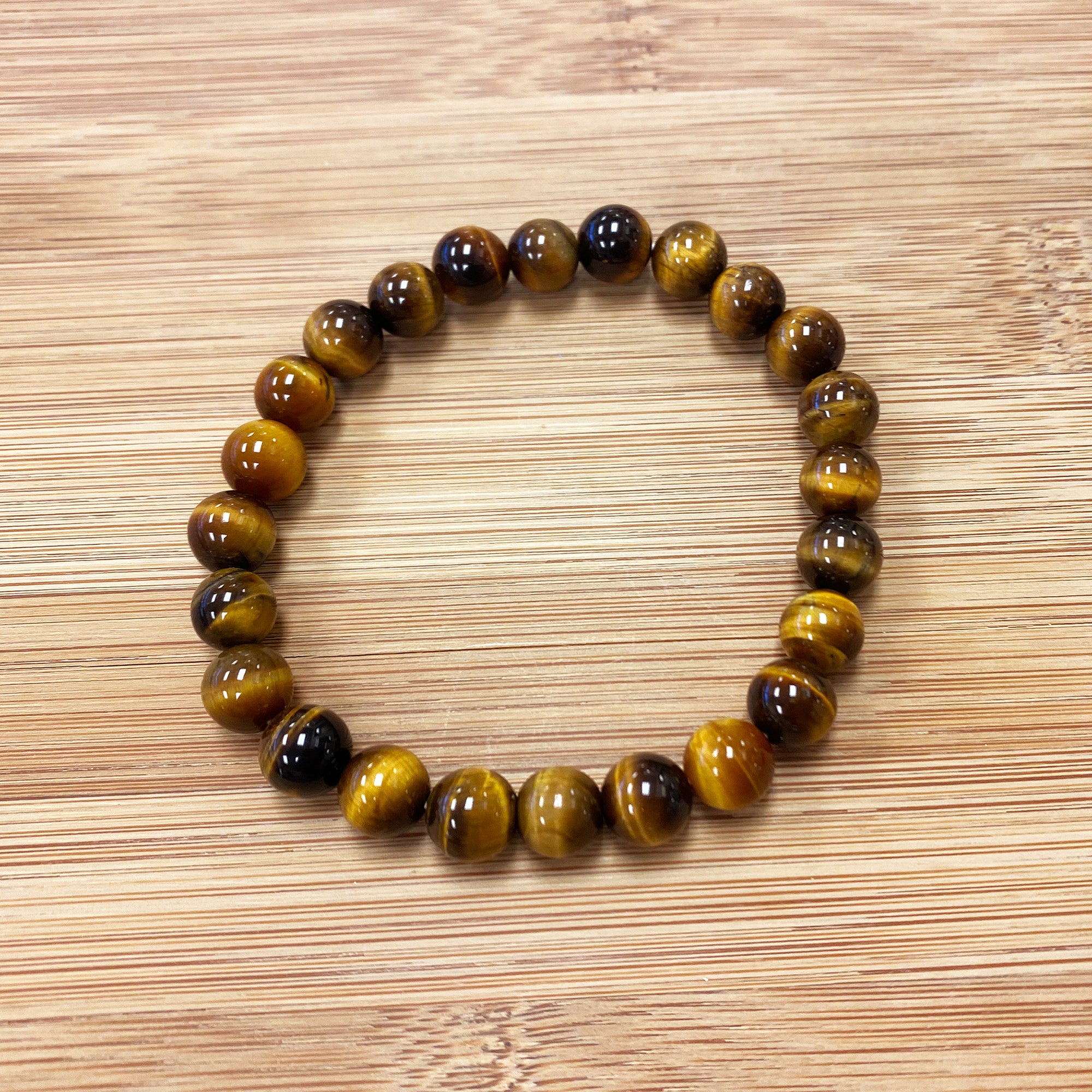 Handmade 8mm Round Stretch Tiger Eye Gemstone Bead Unisex Bracelets