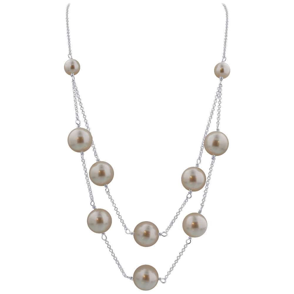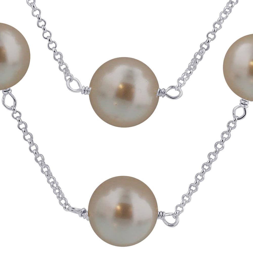 925 Sterling Silver Necklace featuring White Austrian Pearl Strands. The pearls measure 8 mm, 10 mm, and 12 mm. Drape this necklace around your neck for an instant touch of sophistication. It is offered in various lengths, adjustable for comfort, and includes a lobster claw clasp for secure fastening. This exquisite pearl necklace embodies class and elegance, making it the perfect finishing touch for any special event. It also serves as a stunning bridal necklace.